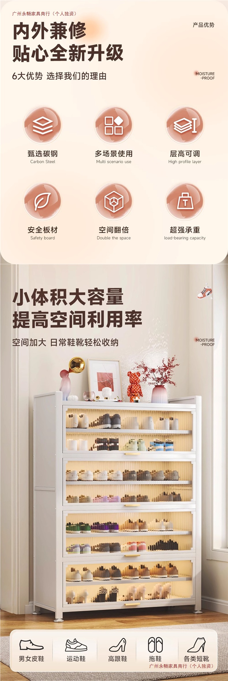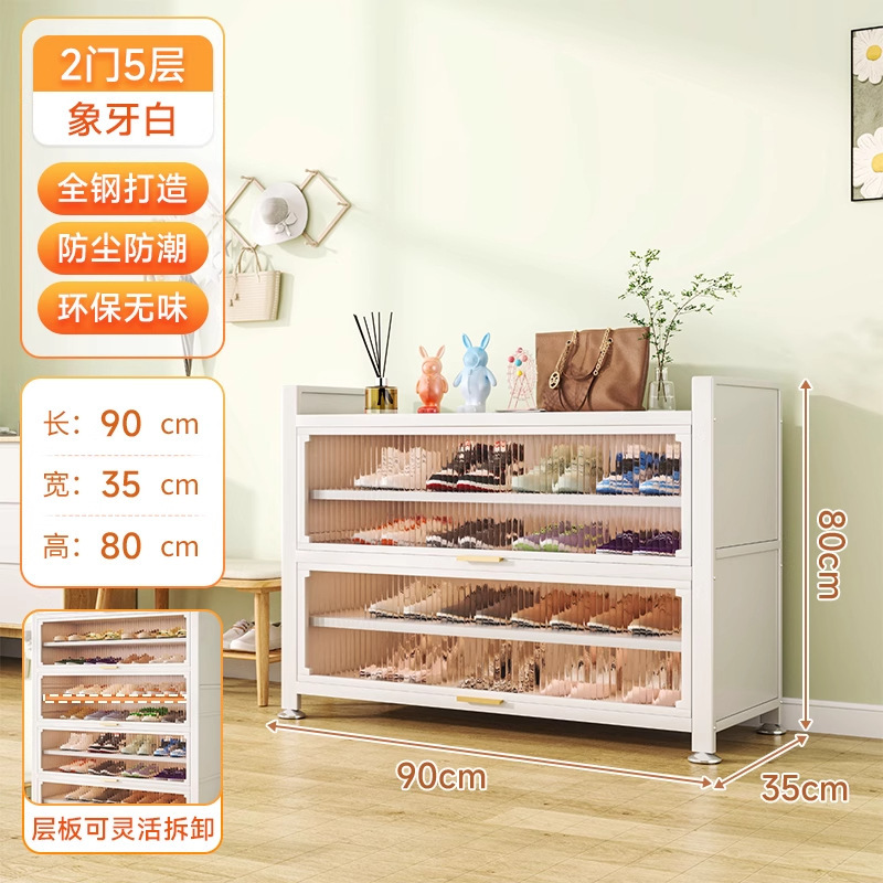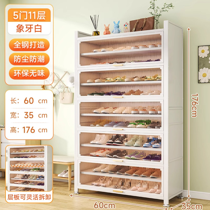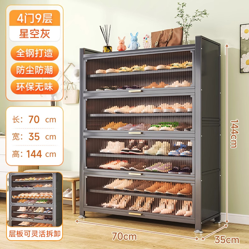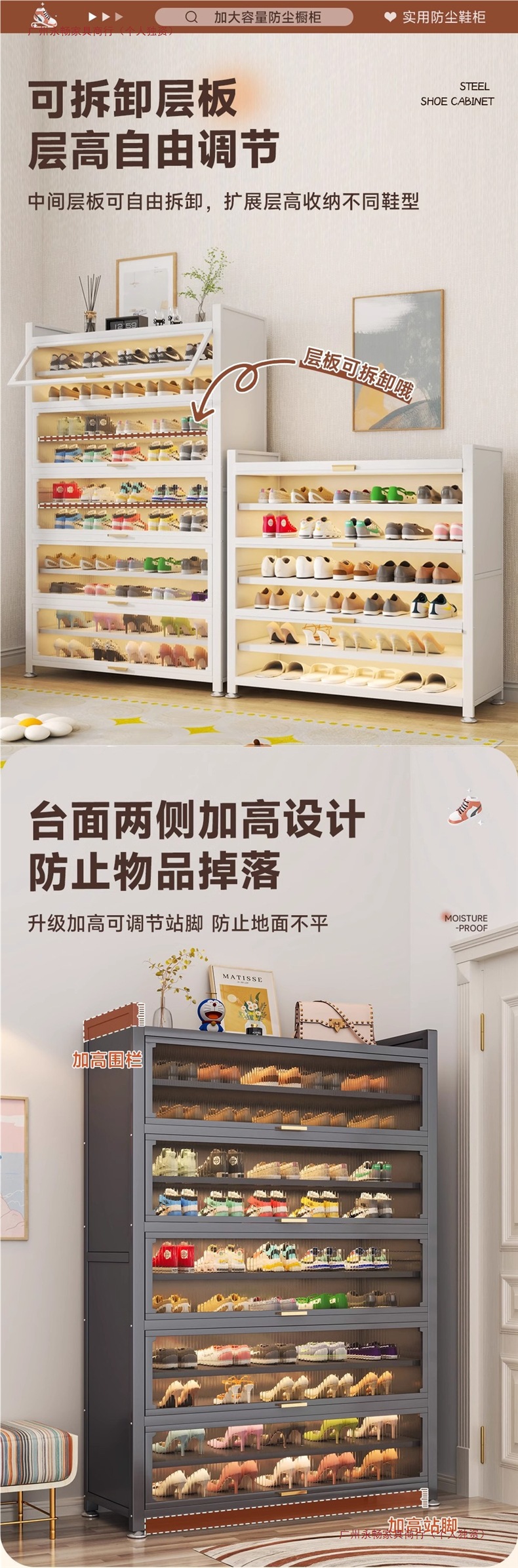 고급 강철 신발장, 가정용 다층 현관 캐비닛, 플립업 도어 신발장, 도어 일체형 캐비닛, 금속