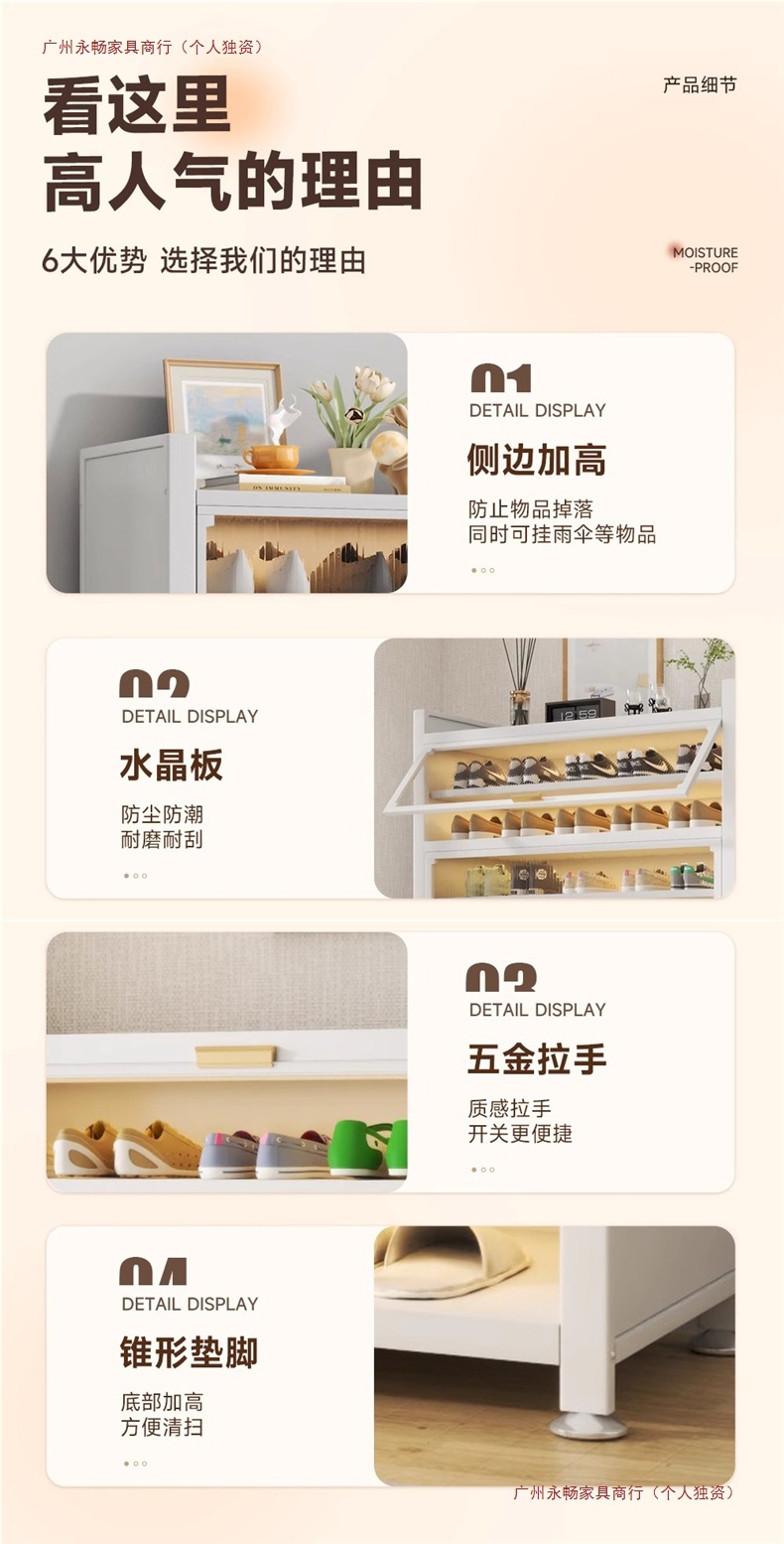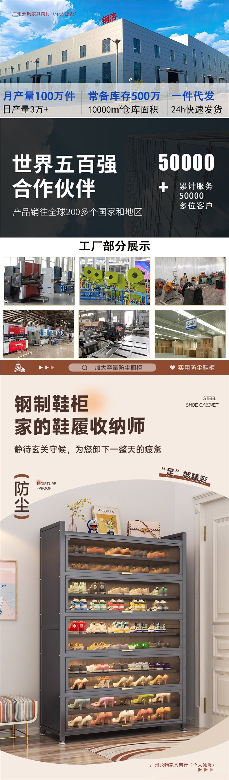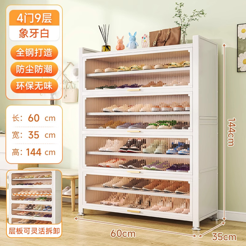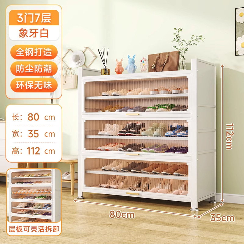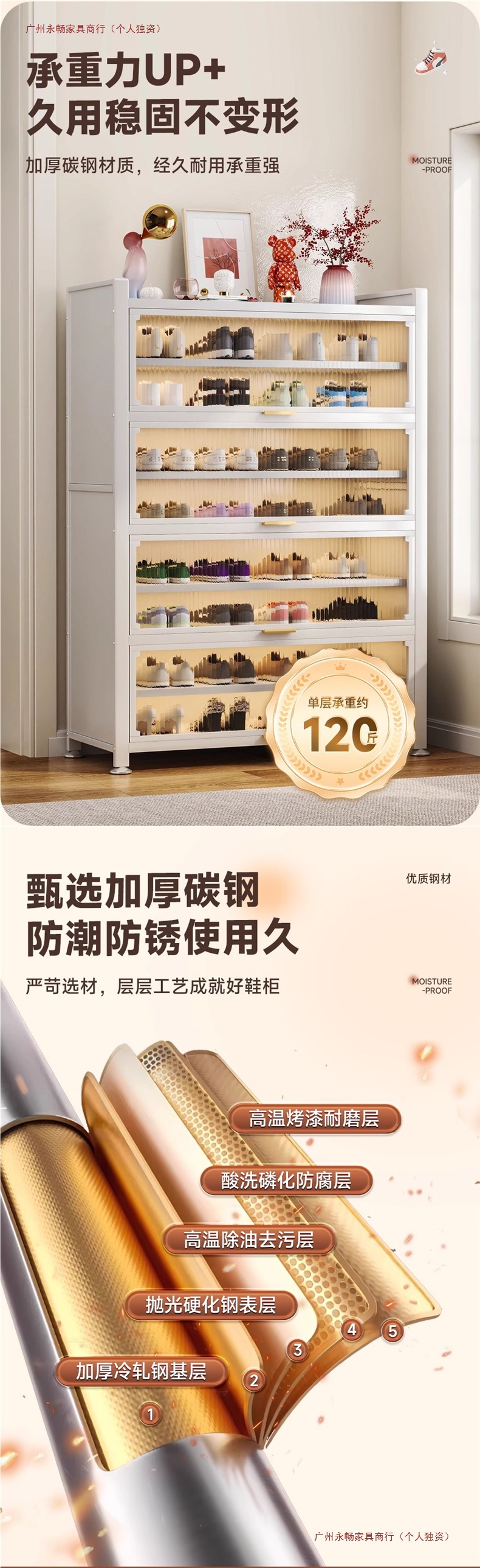 고급 강철 신발장, 가정용 다층 현관 캐비닛, 플립업 도어 신발장, 도어 일체형 캐비닛, 금속