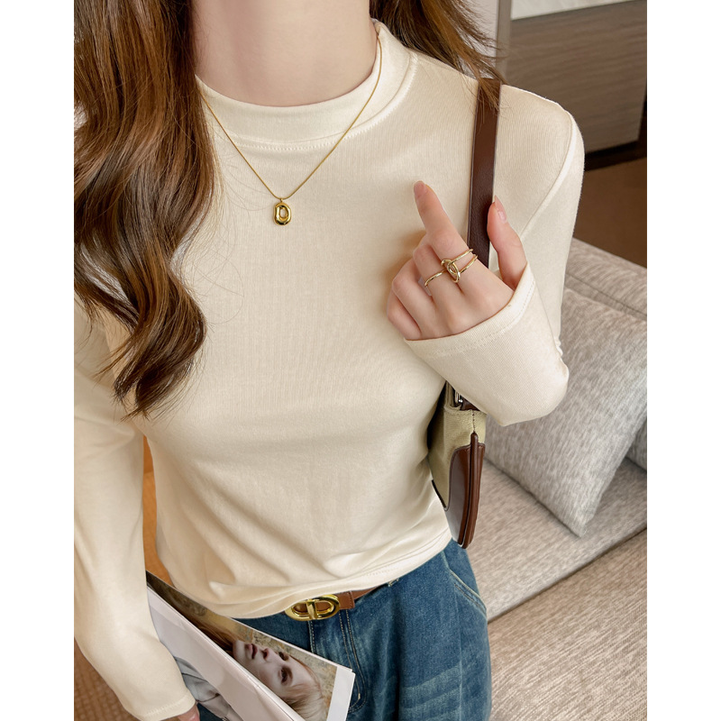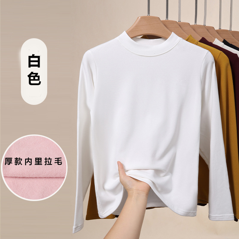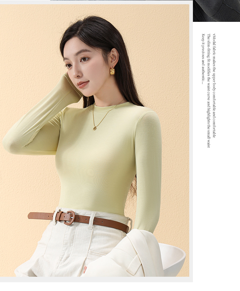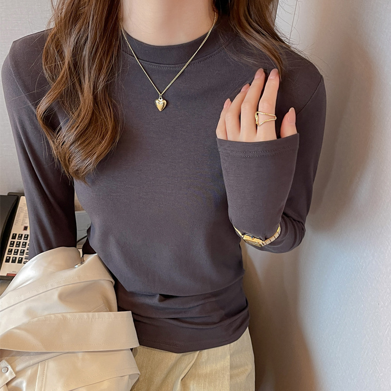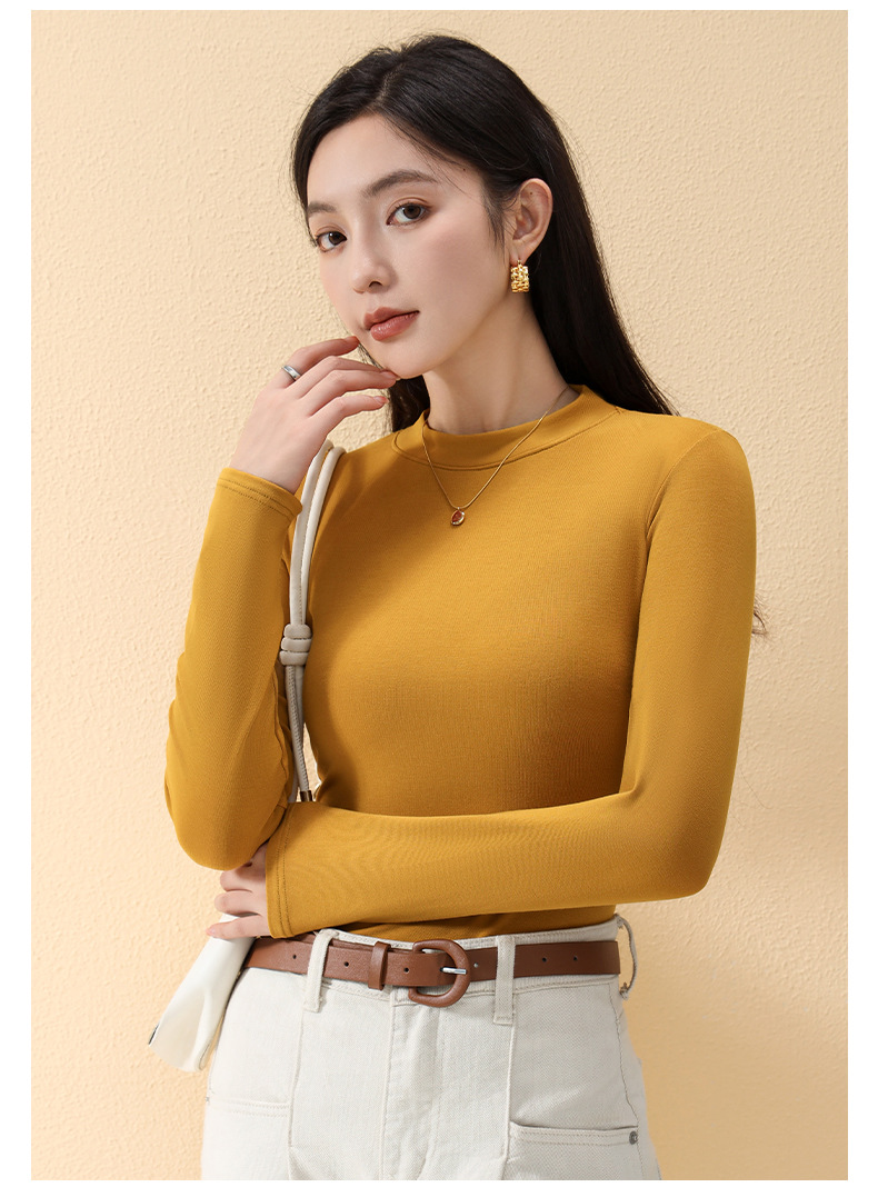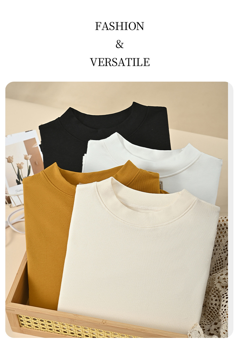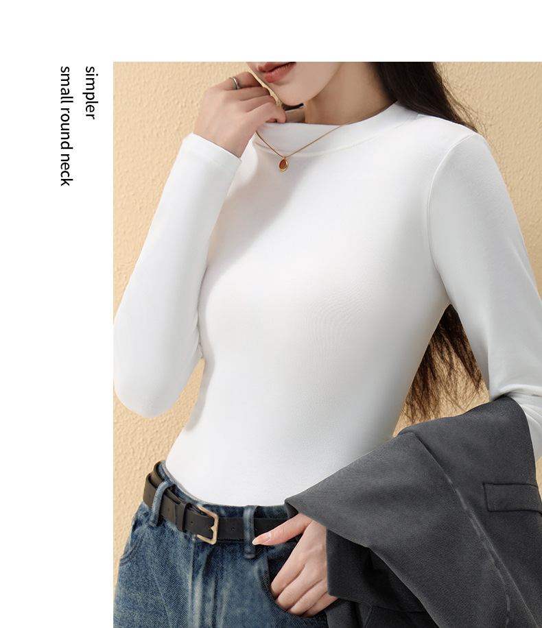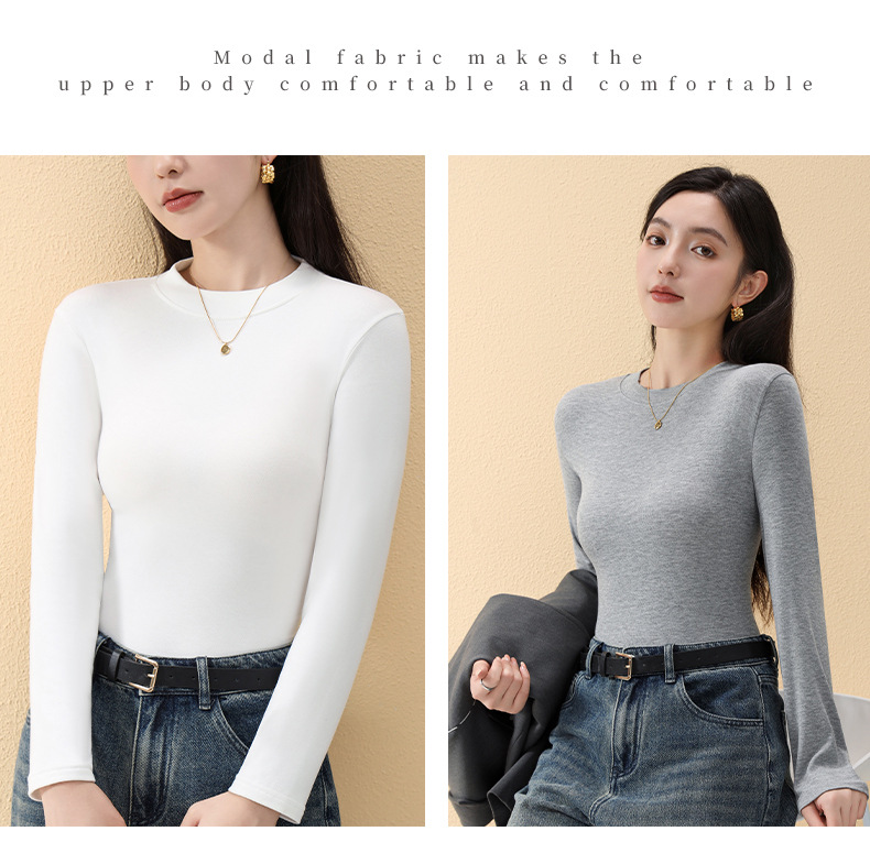 새로운 겨울 모달 스몰 스탠드 칼라 여성용 따뜻한 옷, 라운드 넥 긴팔 탑 티셔츠로 밖에서 착용 가능