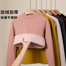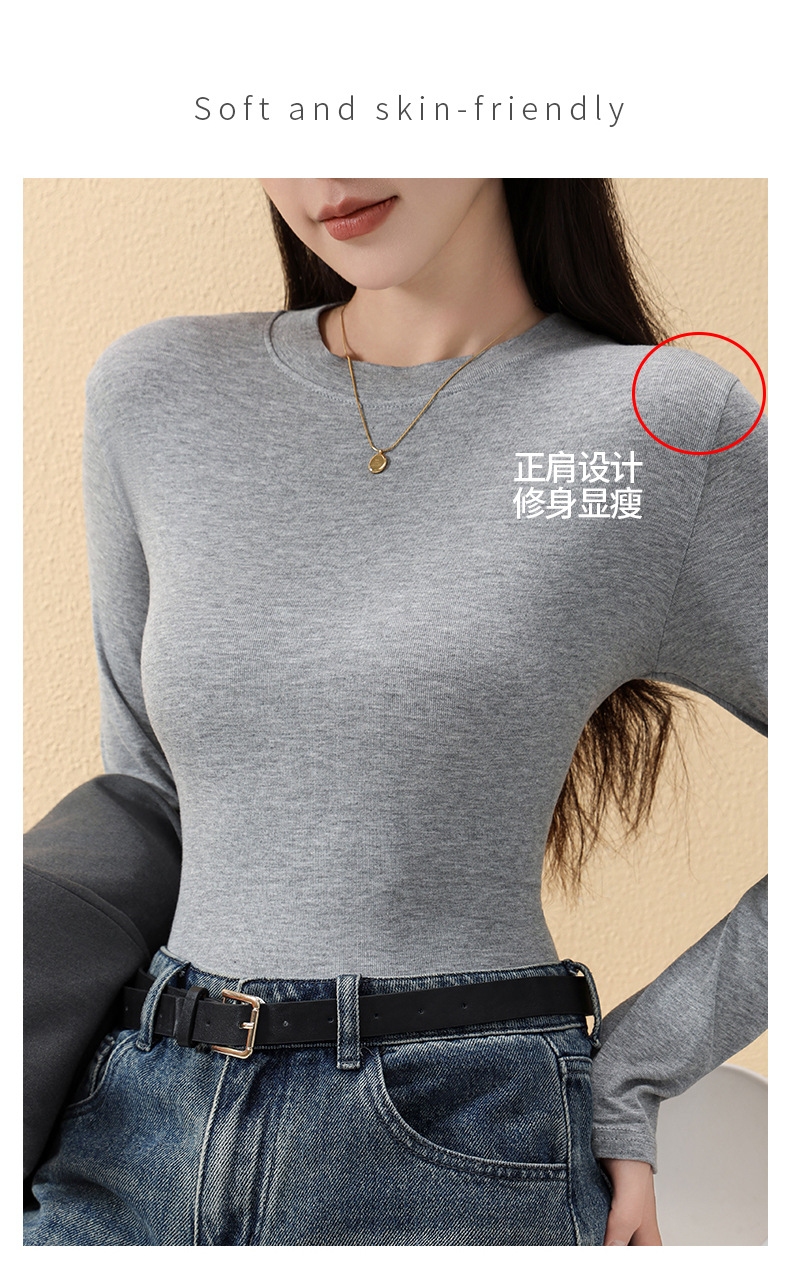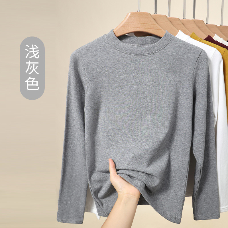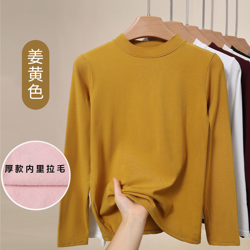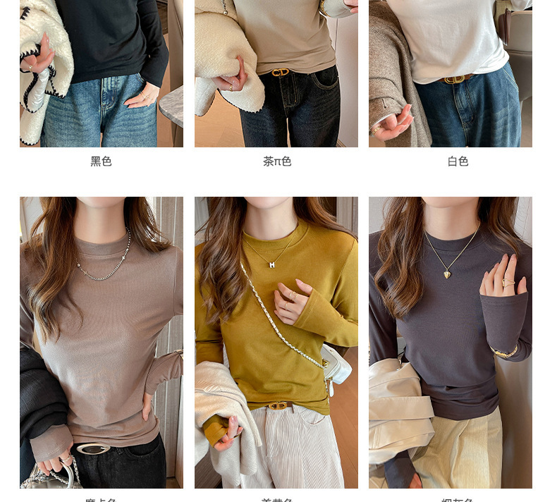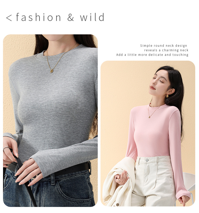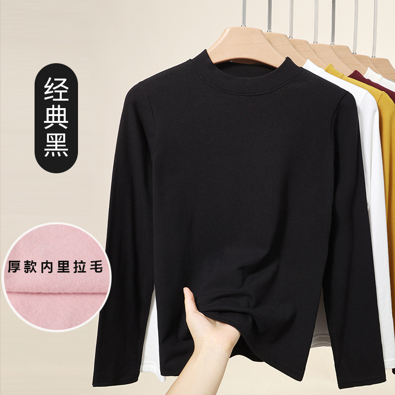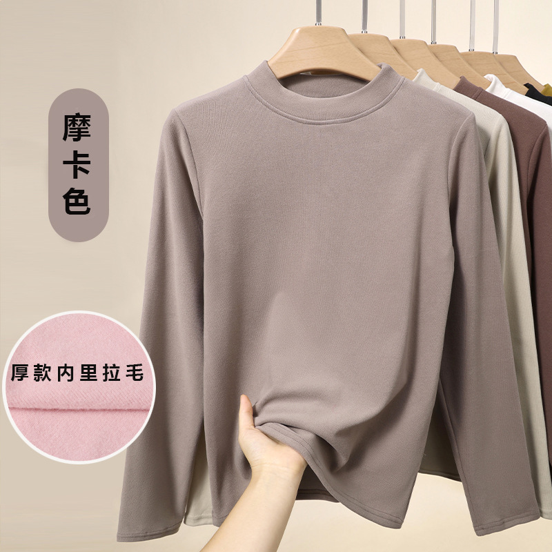 새로운 겨울 모달 스몰 스탠드 칼라 여성용 따뜻한 옷, 라운드 넥 긴팔 탑 티셔츠로 밖에서 착용 가능스토어 가기