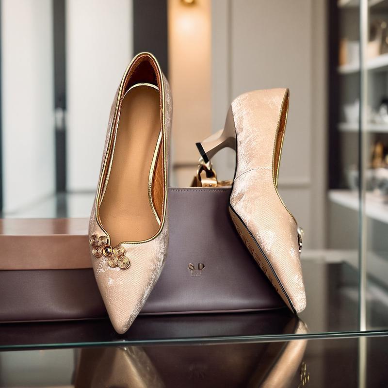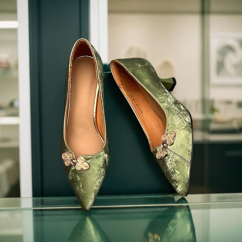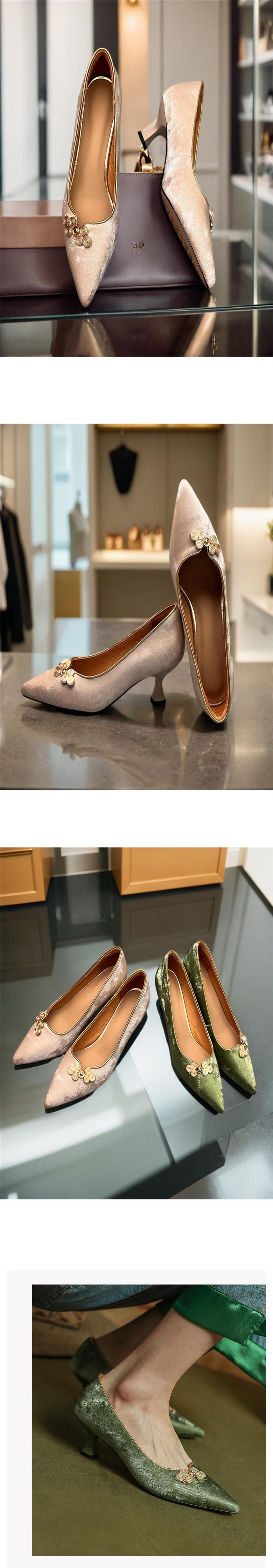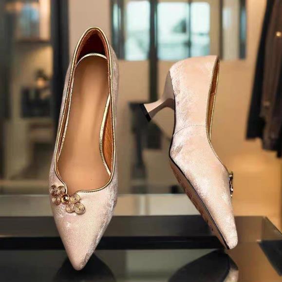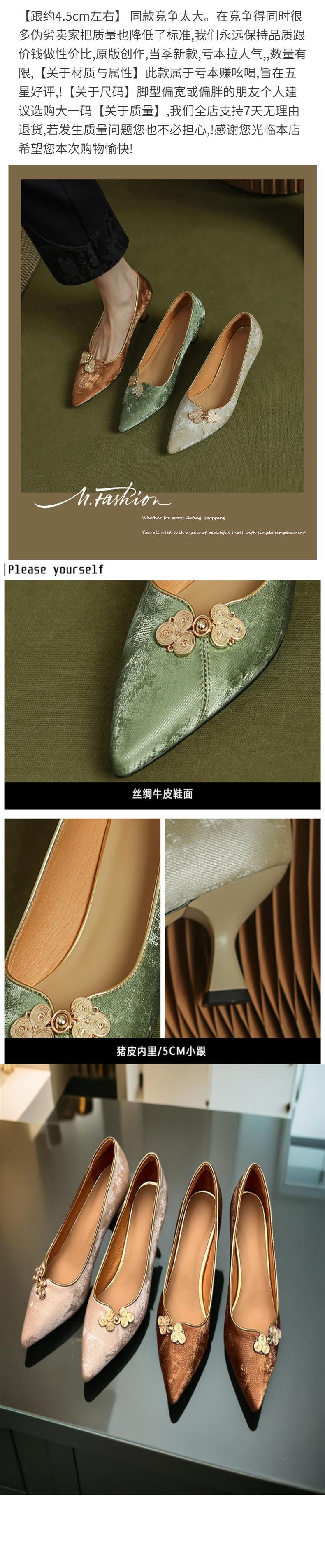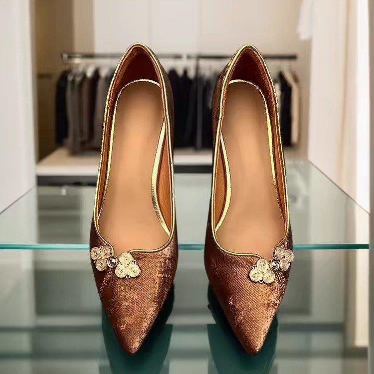 부드러운 가죽 새로운 중국 스타일 복고풍 치파오 여성용 싱글 슈즈, 새로운 봄, 가을 프렌치 스타일 작은 힐, 뾰족한 하이힐스토어 가기