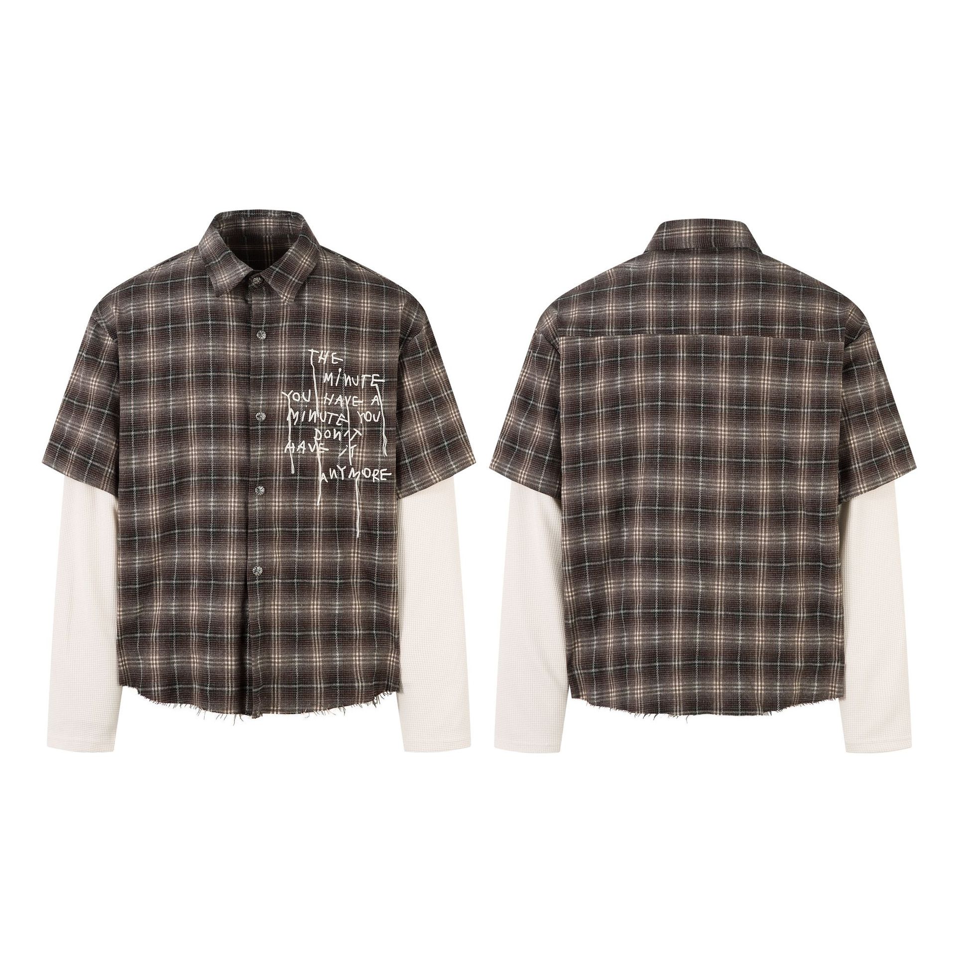 Jiayiku 남성복 2026 봄/여름 신상 미국 스트리트 패션 브랜드 페이크 투피스 데미지드 캐주얼 체크무늬 셔츠 긴팔스토어 가기