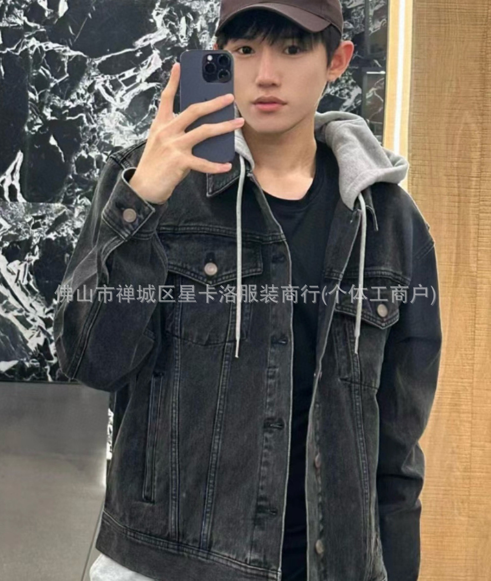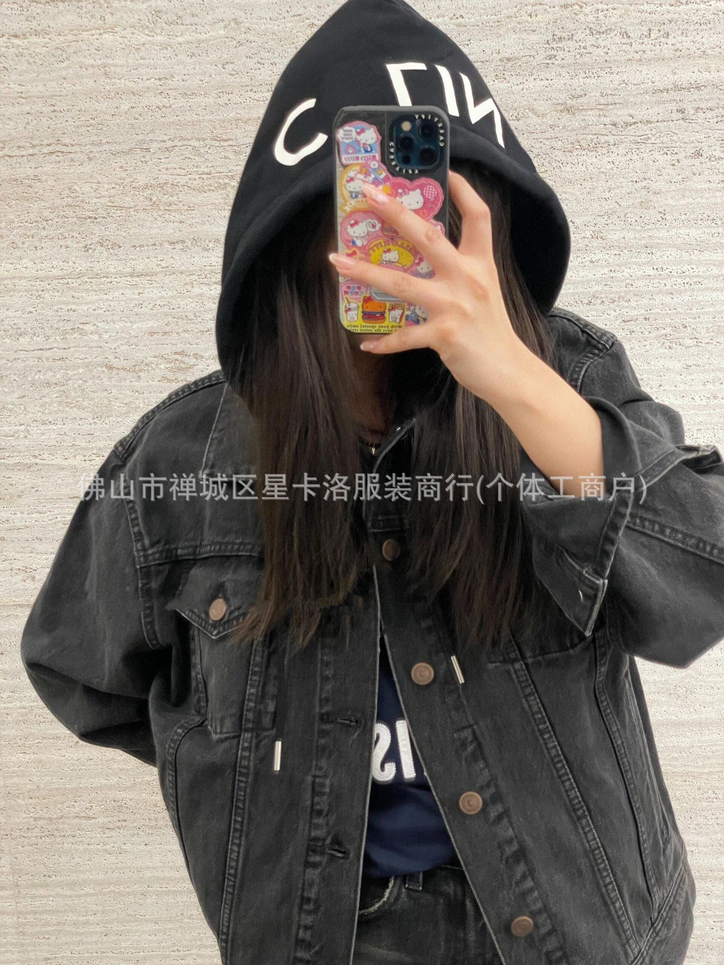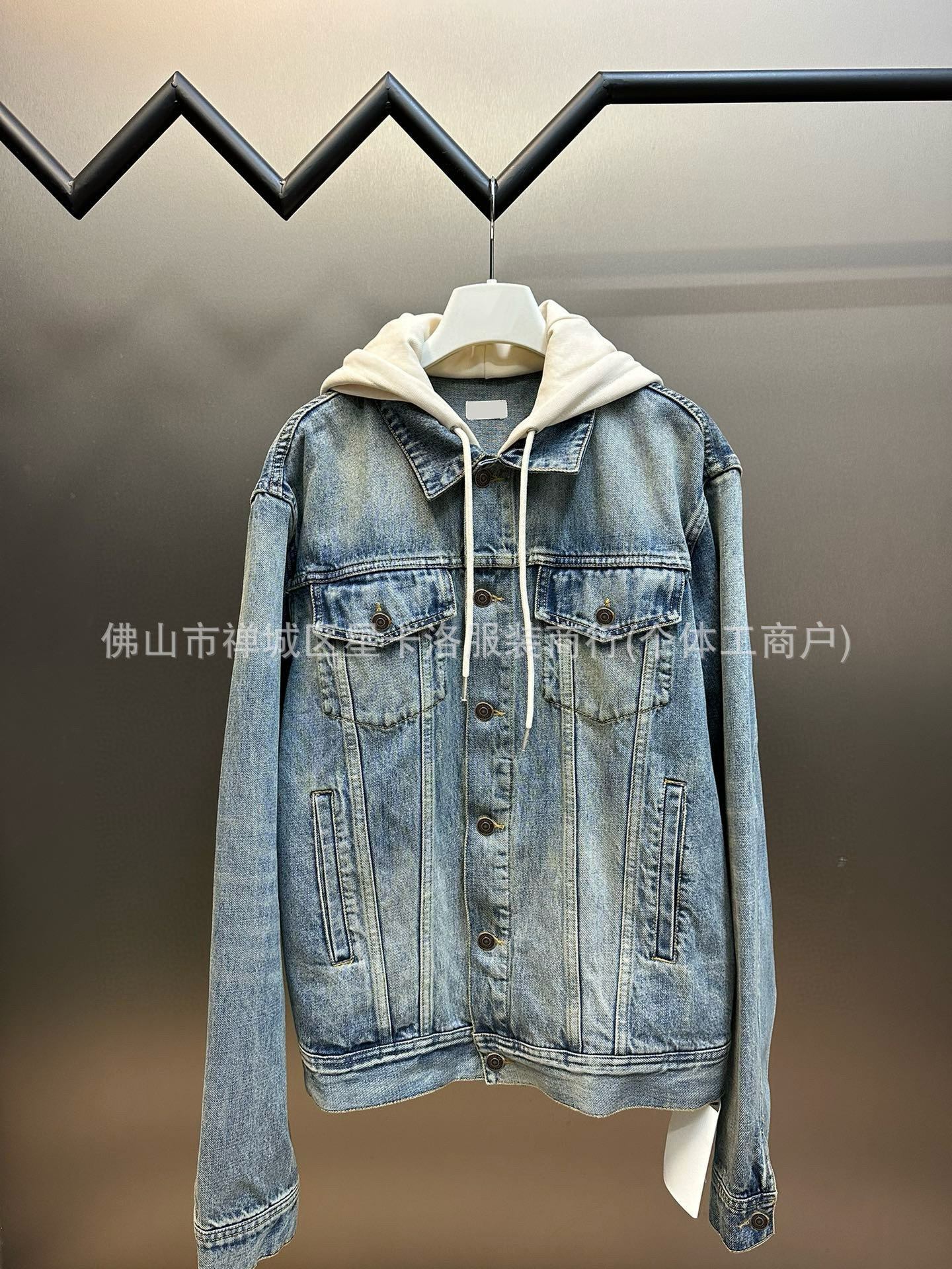 여성을위한 유럽과 미국 스타일의 가짜 투피스 데님 재킷의 올바른 버전 2025 초가을 새로운 스타일 올드 워시 재킷 후드 탑스토어 가기