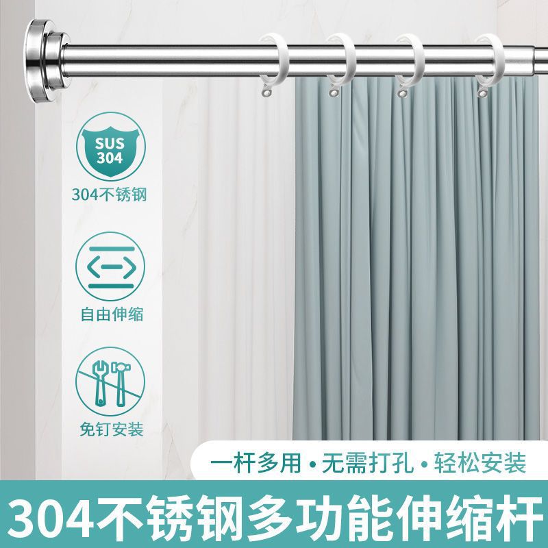 구멍이 없는 스테인레스 스틸 빨래 건조대, 다기능 텔레스코픽 레일, 커튼 레일, 옷 걸이 레일, 샤워 커튼 레일, 발코니 단일 레일, 인기 판매스토어 가기