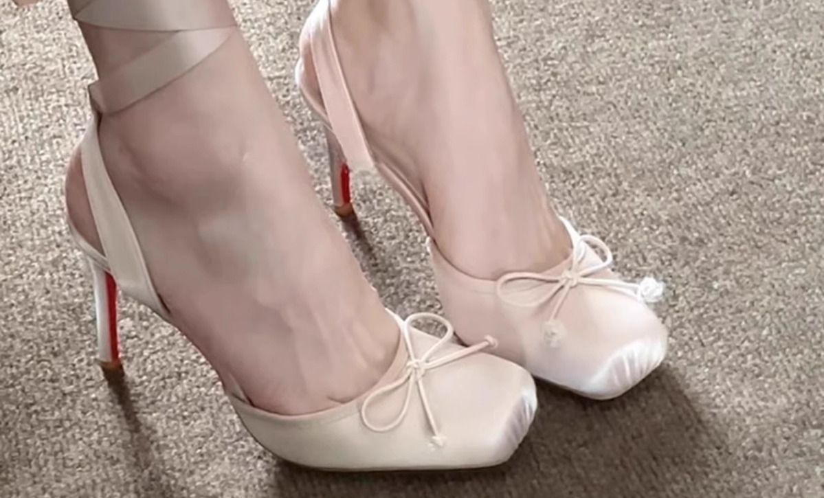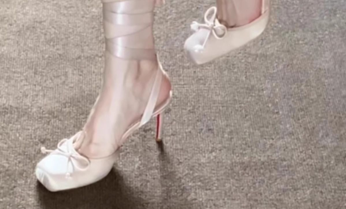 아름답습니다! 니치 스타일 스트랩 발레 슈즈 레드 바닥 리본 돼지코 하이힐 새틴 보우 샌들스토어 가기