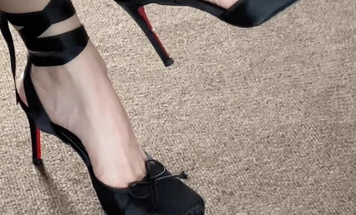 아름답습니다! 니치 스타일 스트랩 발레 슈즈 레드 바닥 리본 돼지코 하이힐 새틴 보우 샌들