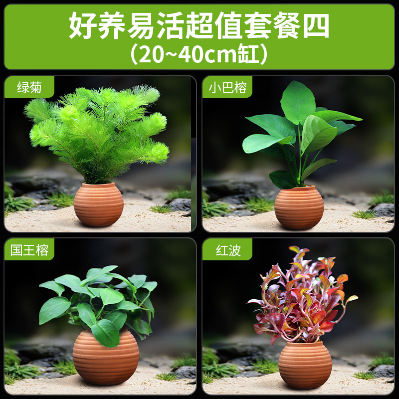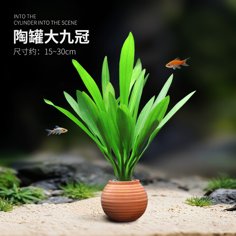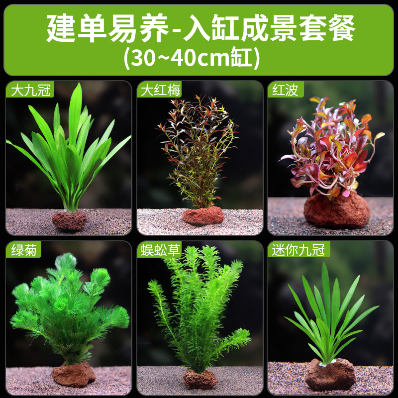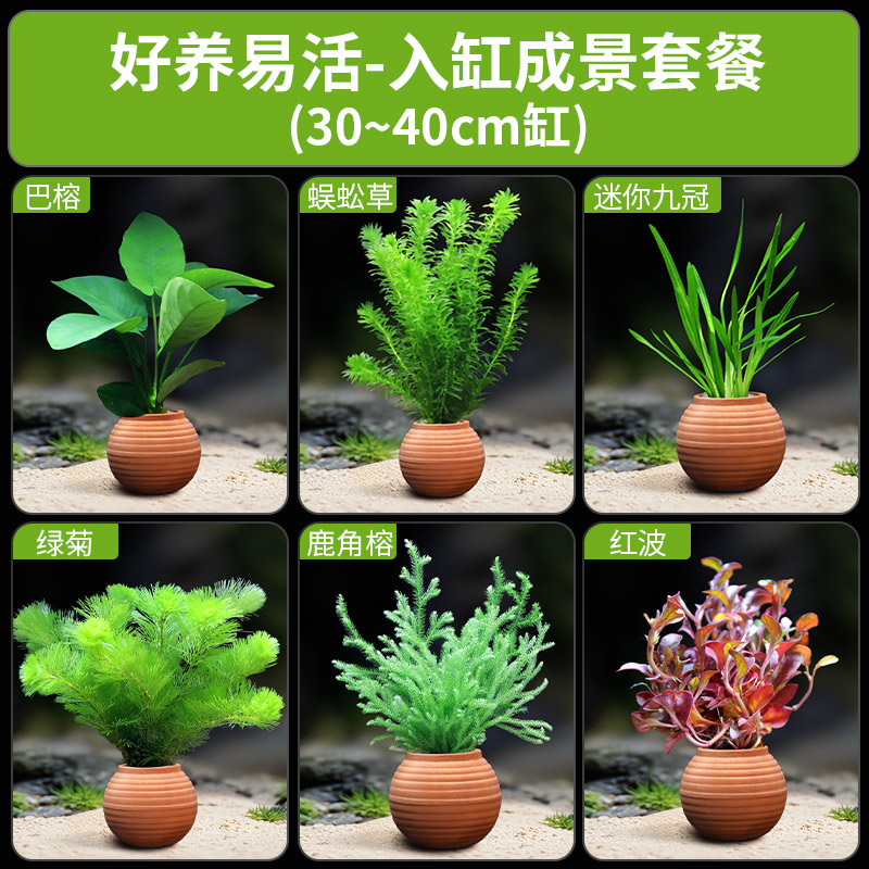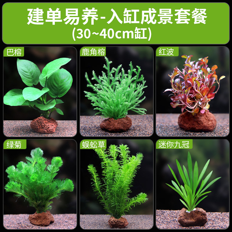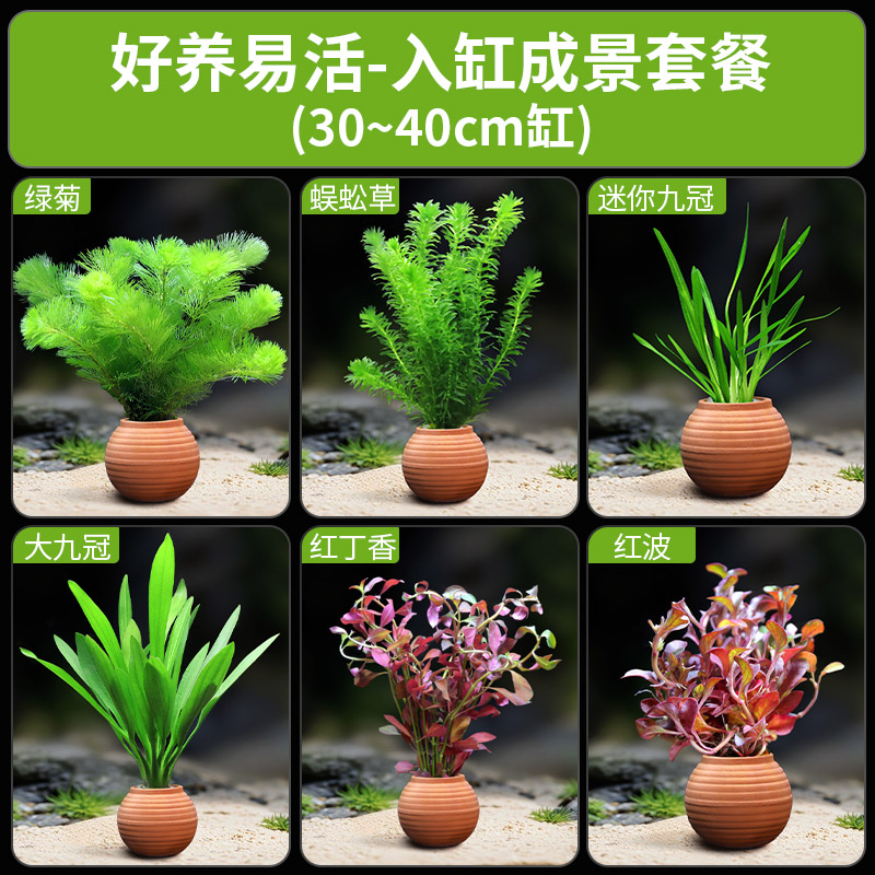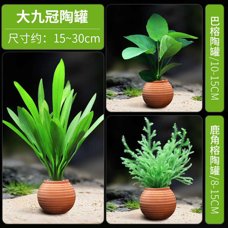 수조 수초 조경 장식품, 산소 부족 녹색 국화, 사마귀풀, 정수 식물화, 도자기 항아리, 수초 화산석 패키지