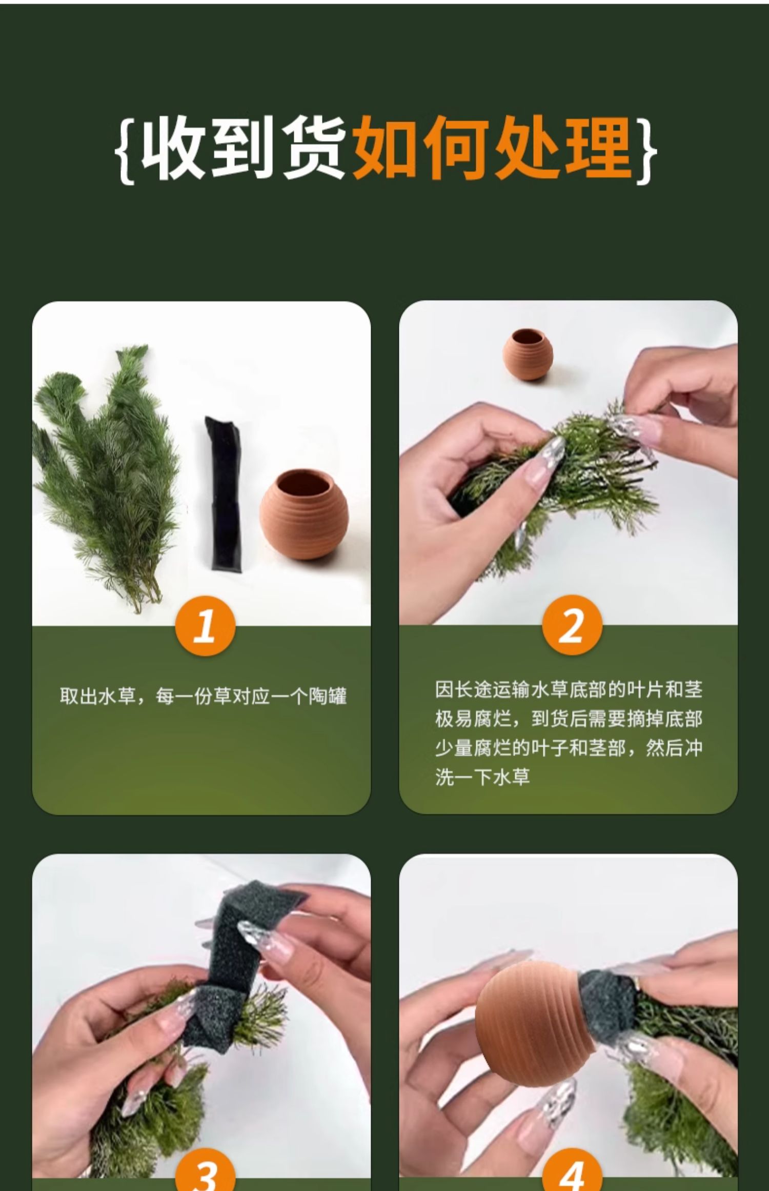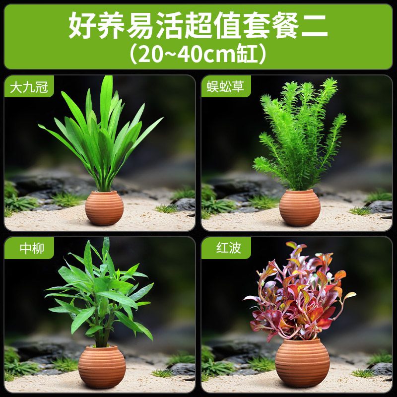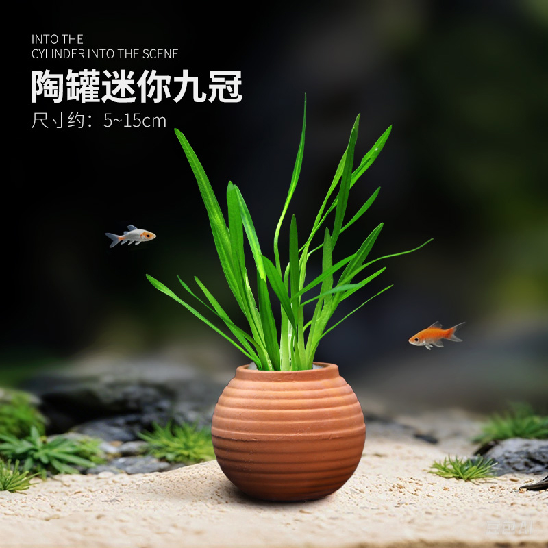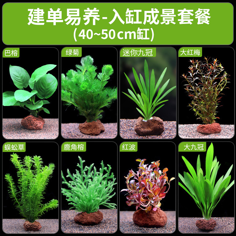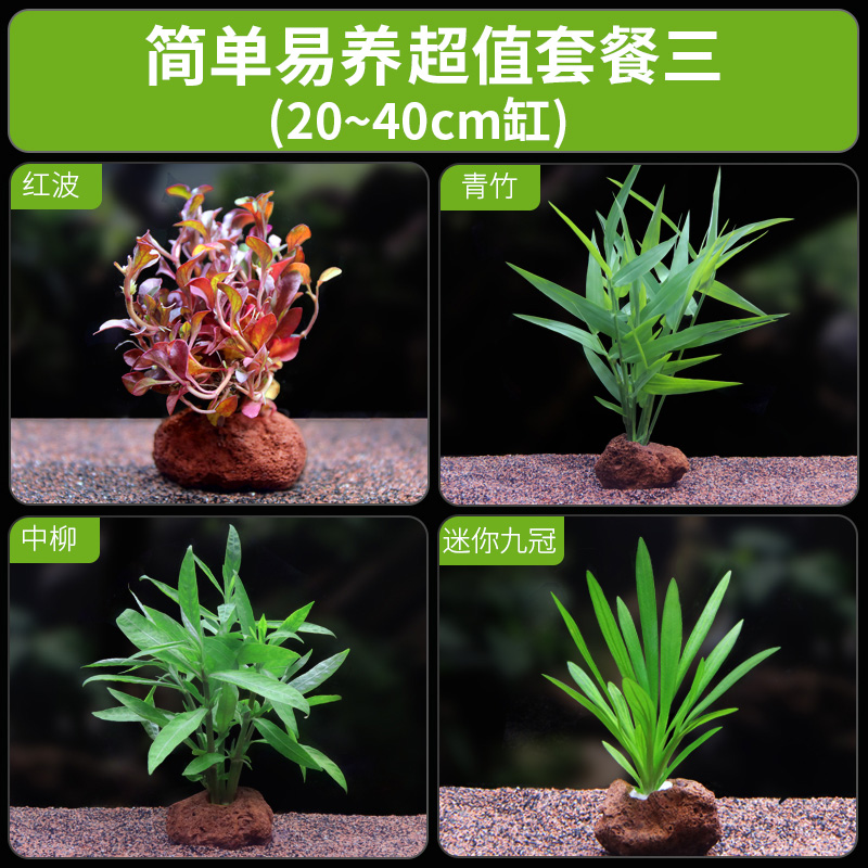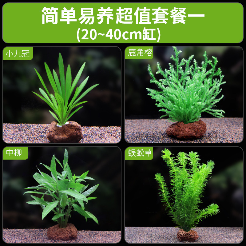 수조 수초 조경 장식품, 산소 부족 녹색 국화, 사마귀풀, 정수 식물화, 도자기 항아리, 수초 화산석 패키지