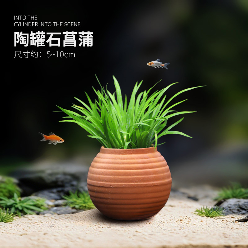 수조 수초 조경 장식품, 산소 부족 녹색 국화, 사마귀풀, 정수 식물화, 도자기 항아리, 수초 화산석 패키지스토어 가기