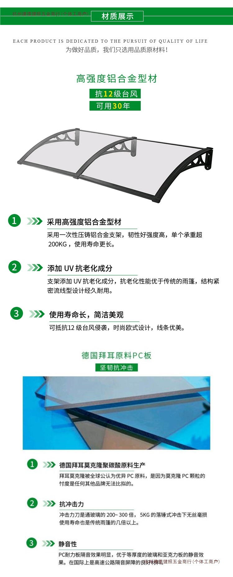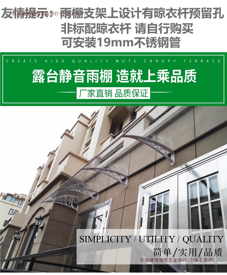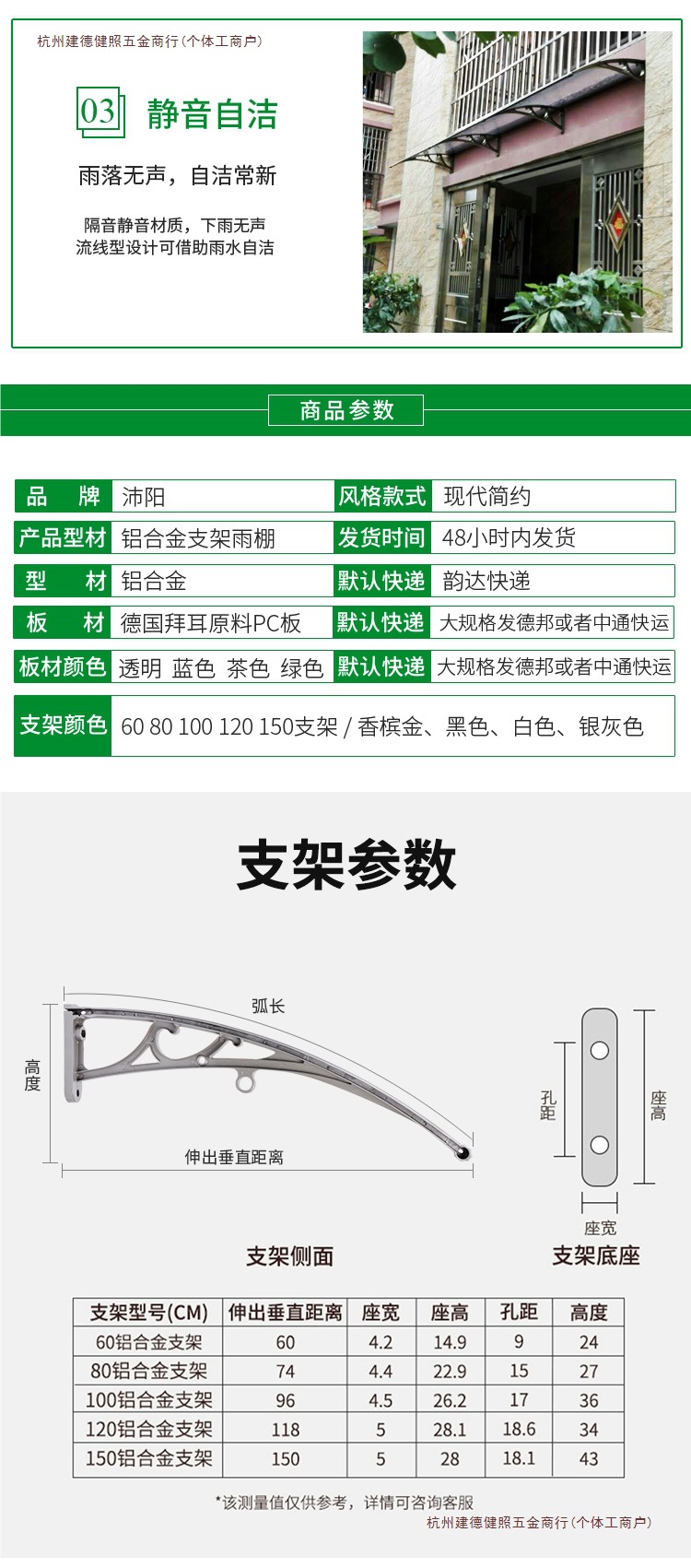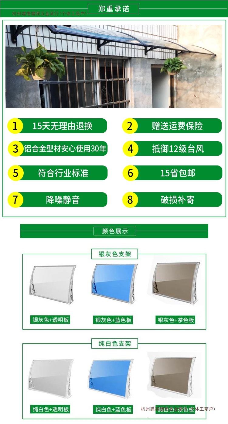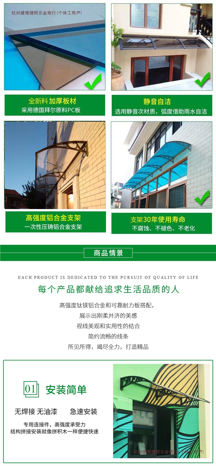 무료 배송 알루미늄 합금 창 캐노피 야외 내구성 보드 가정용 차양 및 비 방지 발코니 처마 캐노피 도어 헤드 레인 커버스토어 가기