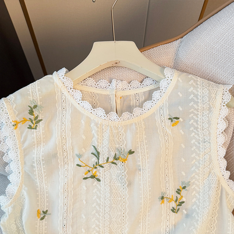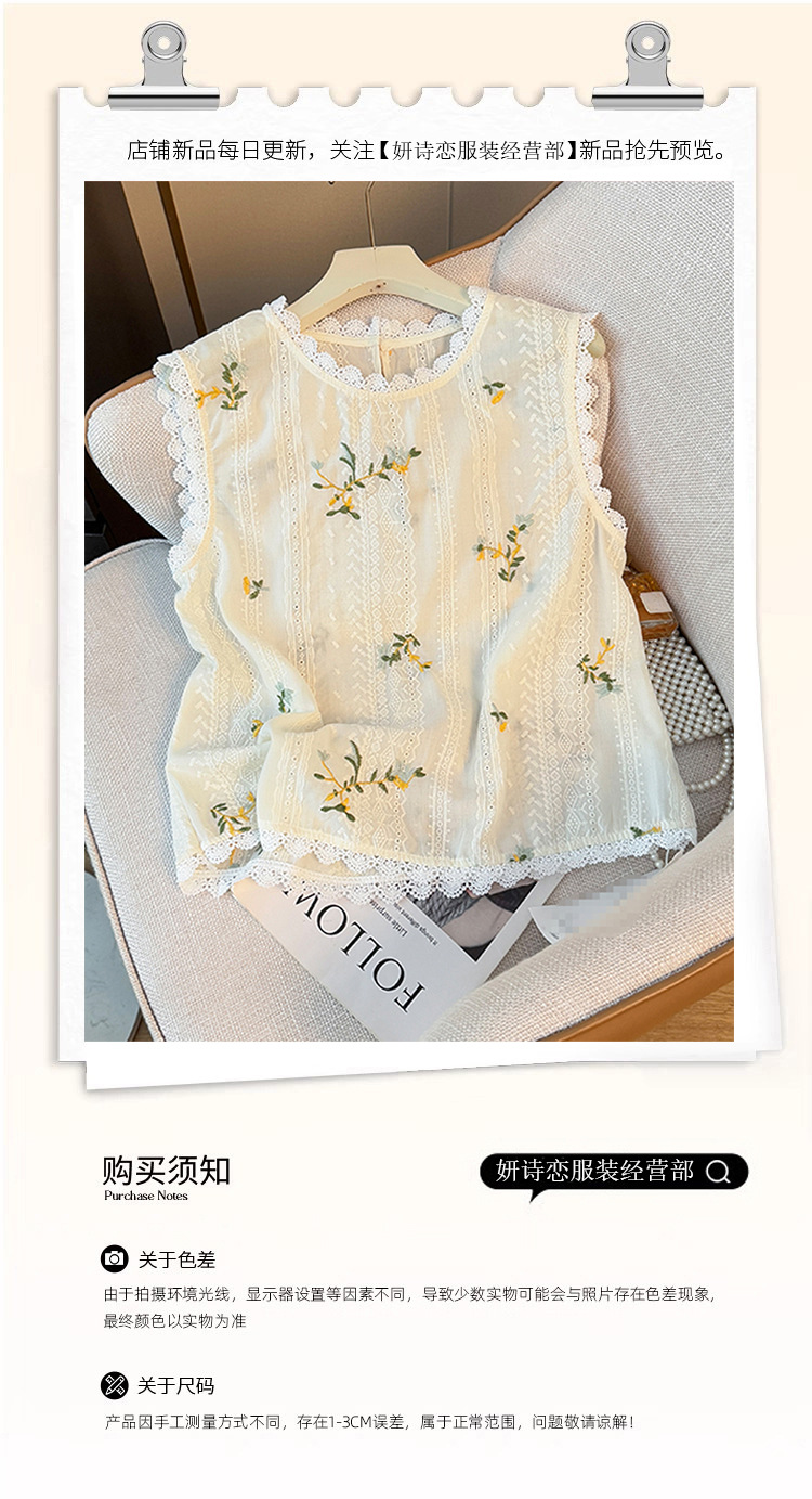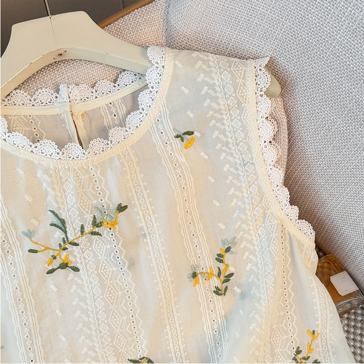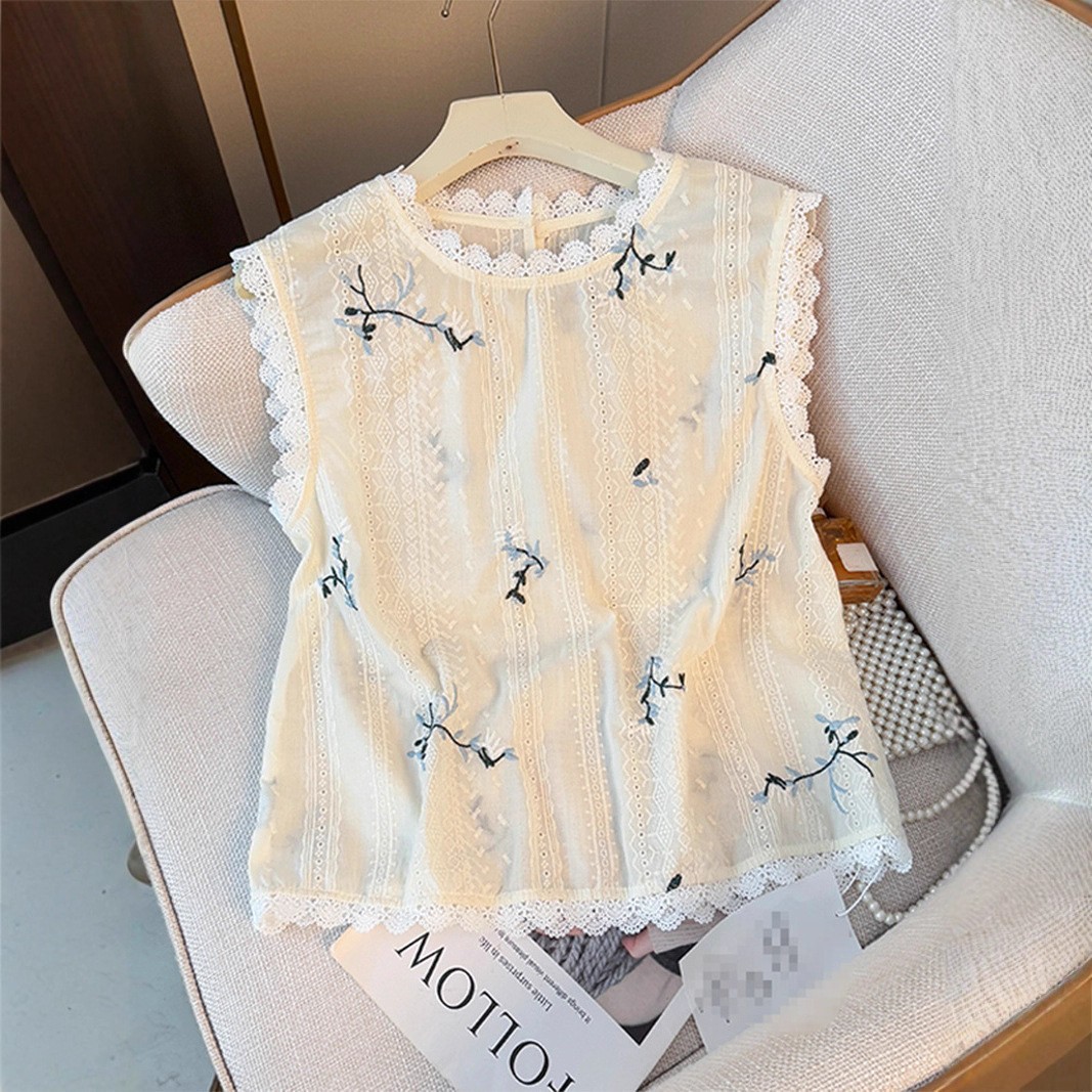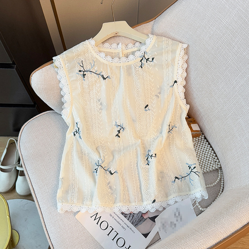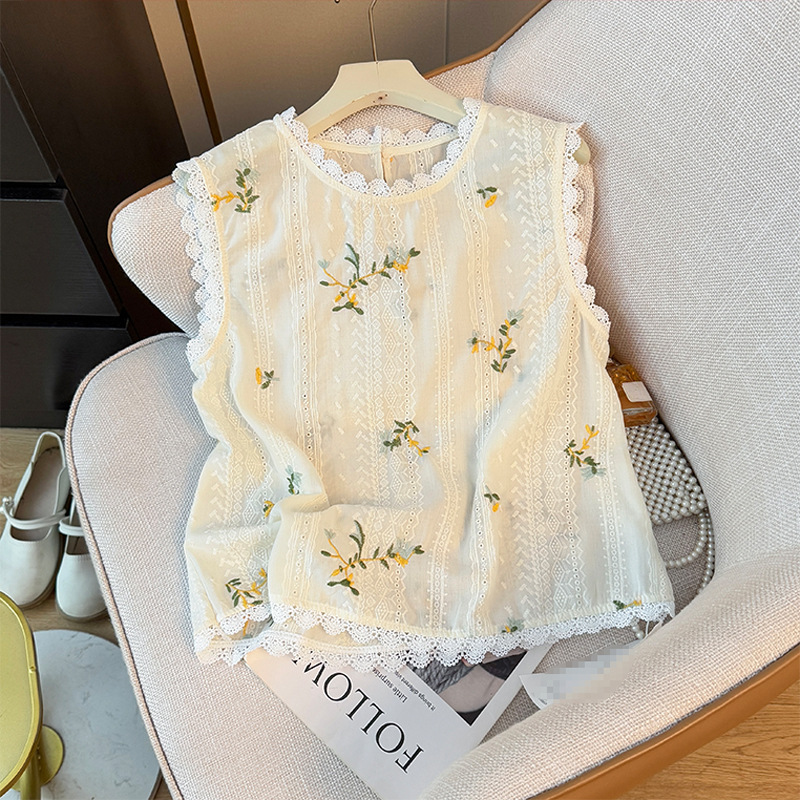 프랑스 중공업 자수 꽃 레이스 스플 라이스 민소매 조끼 여성 여름 느슨한 연령 감소 중공 다용도 탑스토어 가기