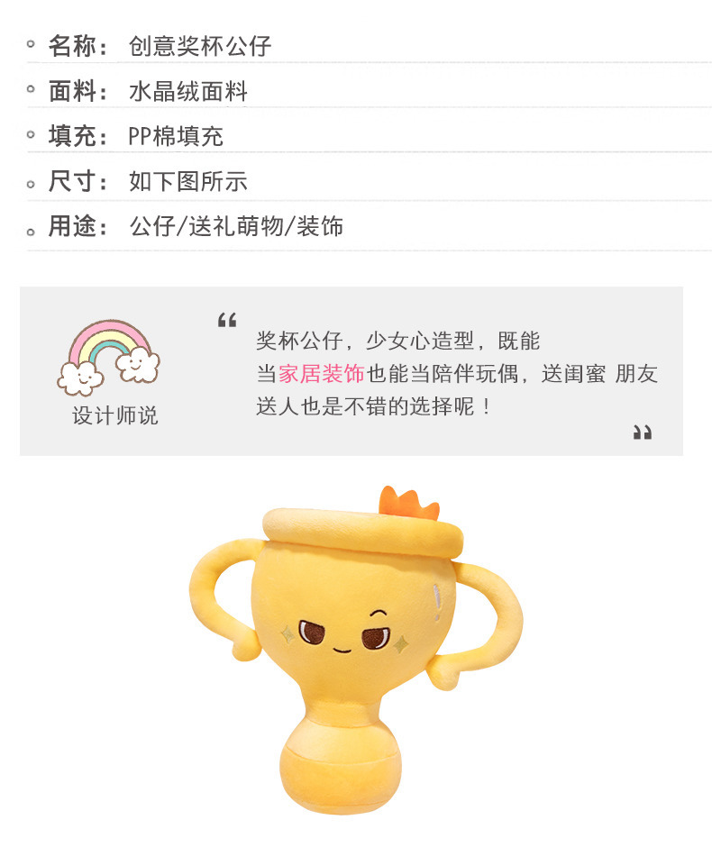 크리 에이 티브 트로피 인형 챔피언 유럽 컵 어린이 상 인형 승리 트로피 플러시 장난감 여성을위한 생일 선물