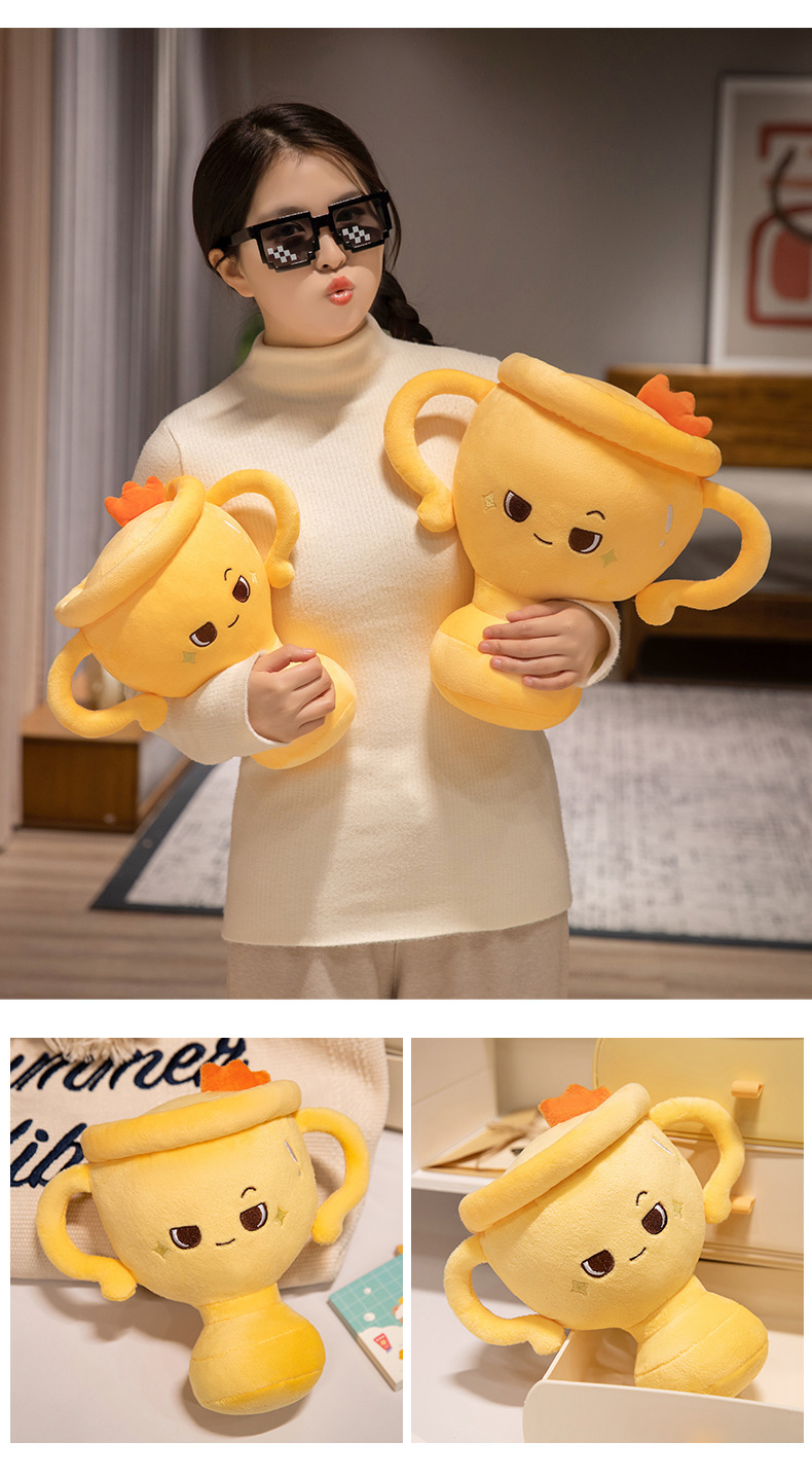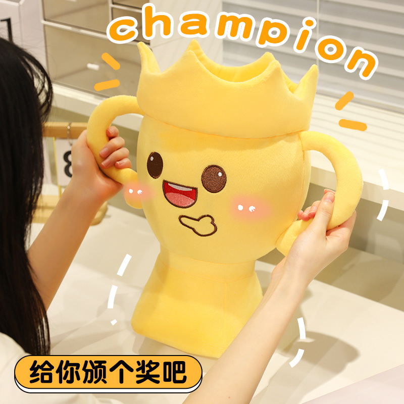 크리 에이 티브 트로피 인형 챔피언 유럽 컵 어린이 상 인형 승리 트로피 플러시 장난감 여성을위한 생일 선물스토어 가기