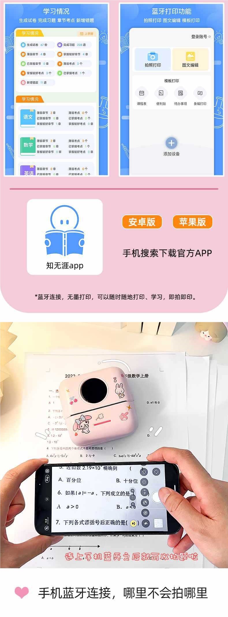 • 핑크 업그레이드 학생 추천 모델 [프린터 + 접착지 10롤(붙여넣기 가능) +☆