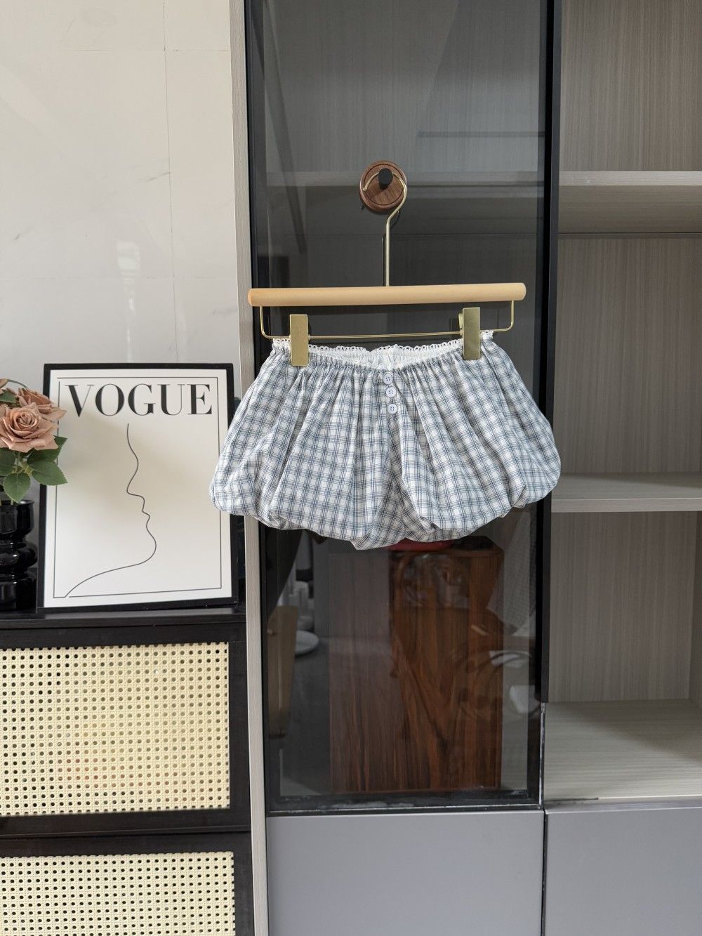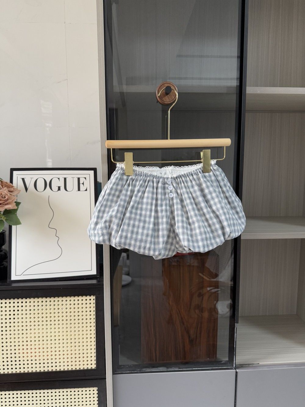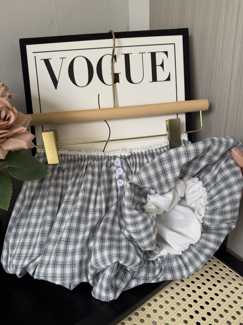 여름 2025 여성을 위한 핫걸 로우 웨이스트 체크 무늬 버드 반바지 새로운 스타일 작은 싱글 브레스트 디자인 랜턴 캐주얼 바지