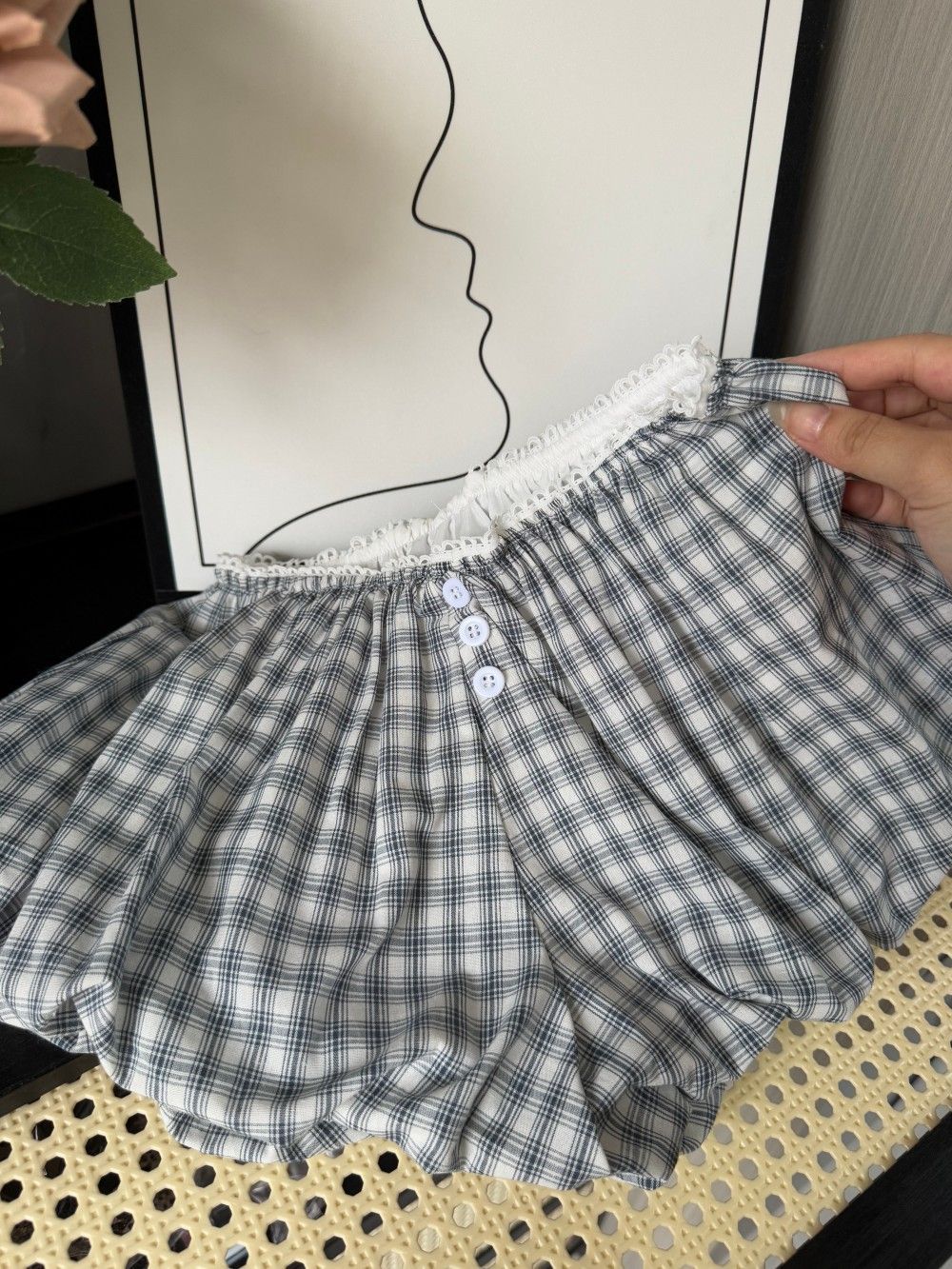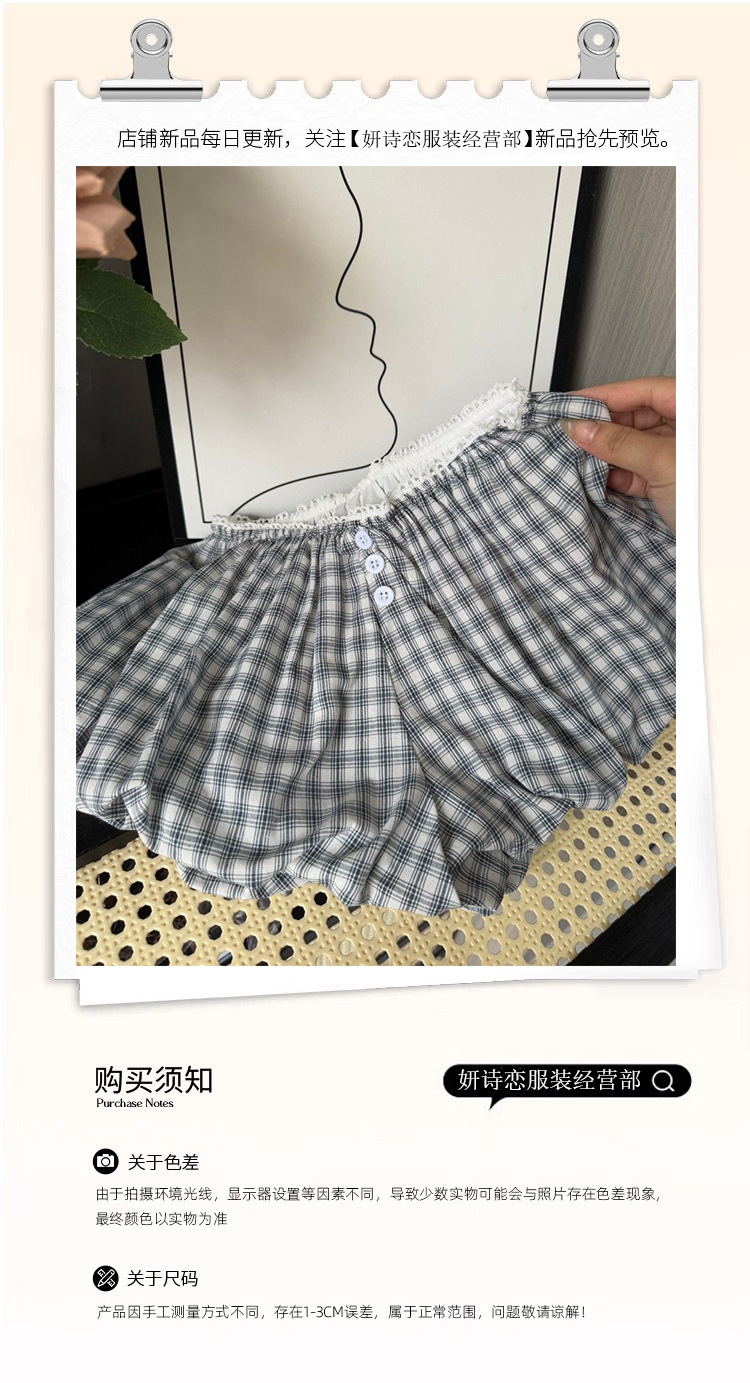 여름 2025 여성을 위한 핫걸 로우 웨이스트 체크 무늬 버드 반바지 새로운 스타일 작은 싱글 브레스트 디자인 랜턴 캐주얼 바지스토어 가기