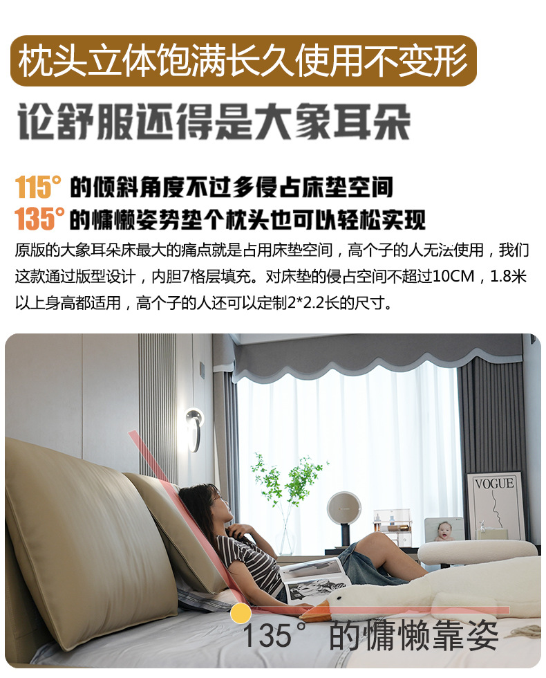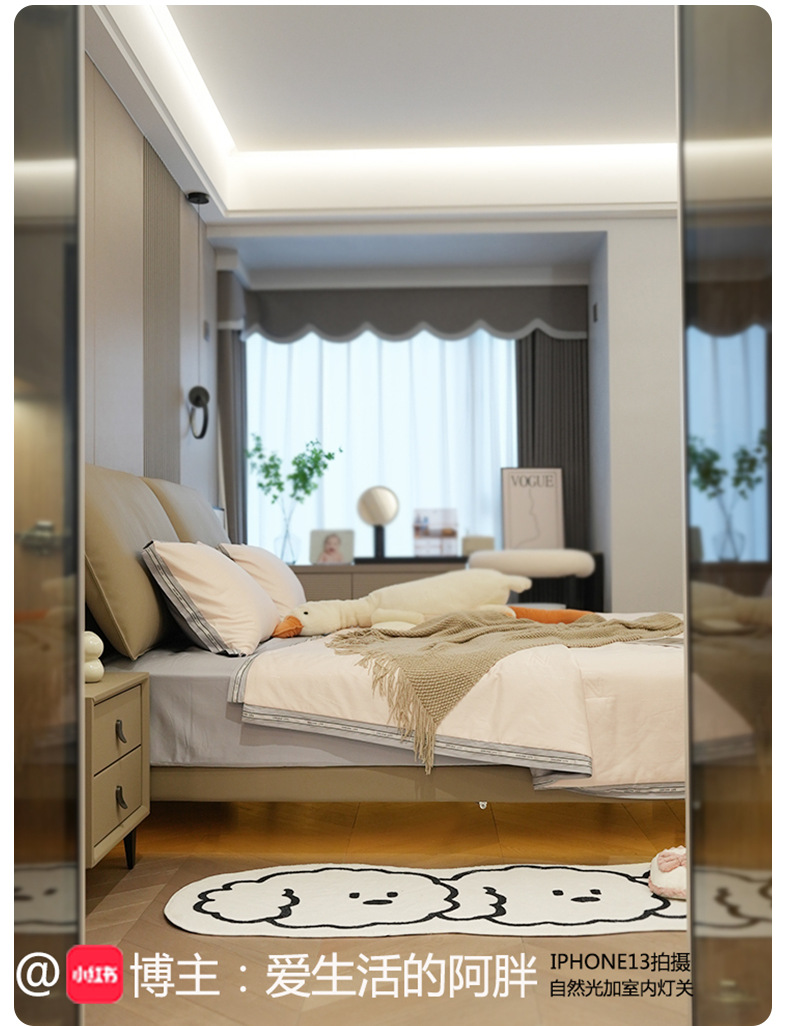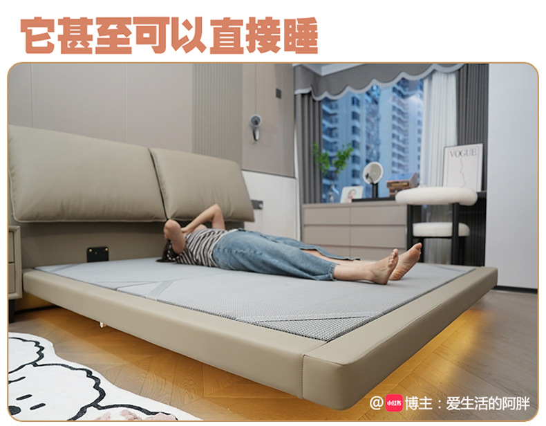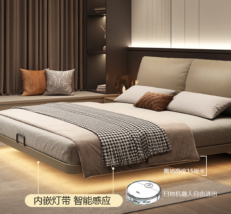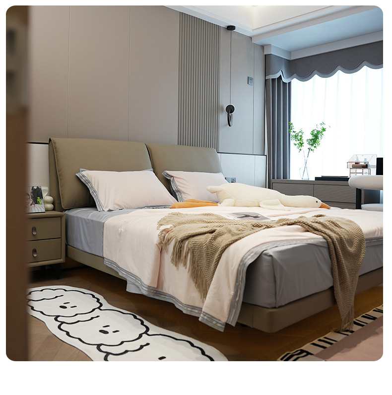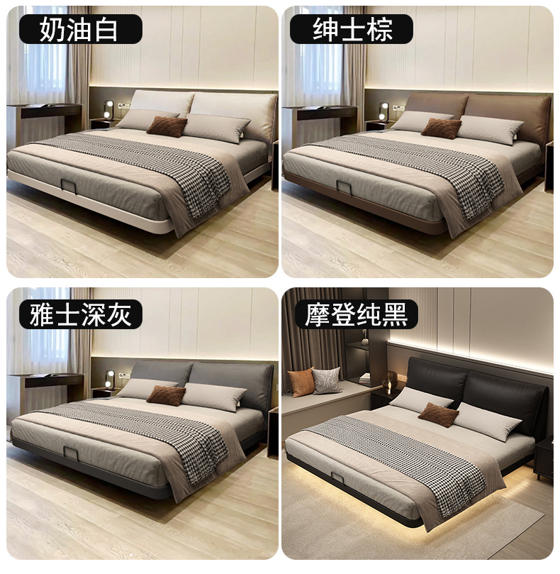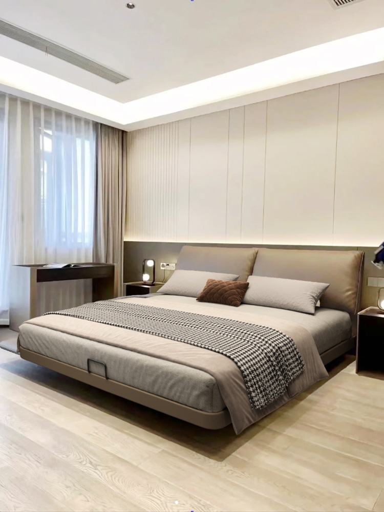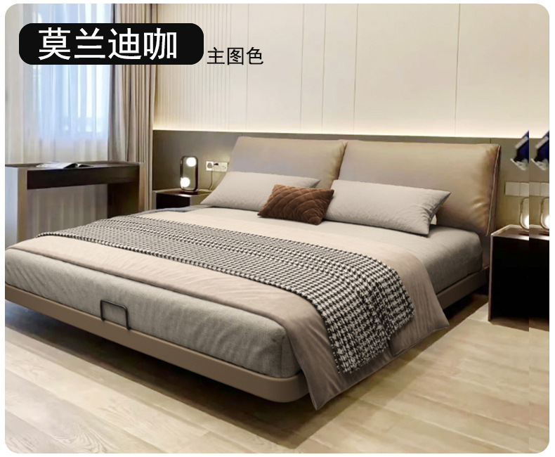 서스펜션 침대 모던 심플 코끼리 귀 가죽 2m x 2.2m 마스터 침실 대형 침대 이탈리안 미니멀리스트 이퀄 레벨 더블 침대스토어 가기