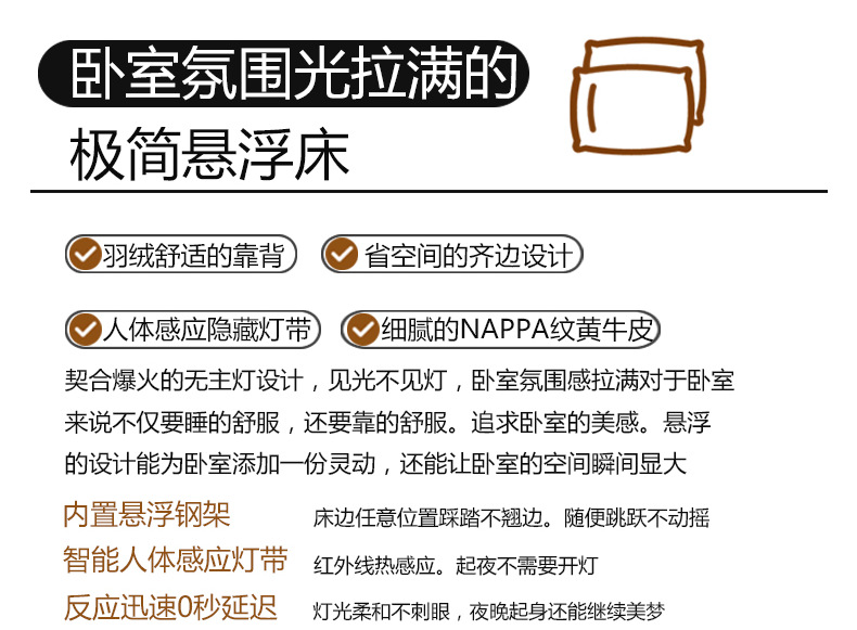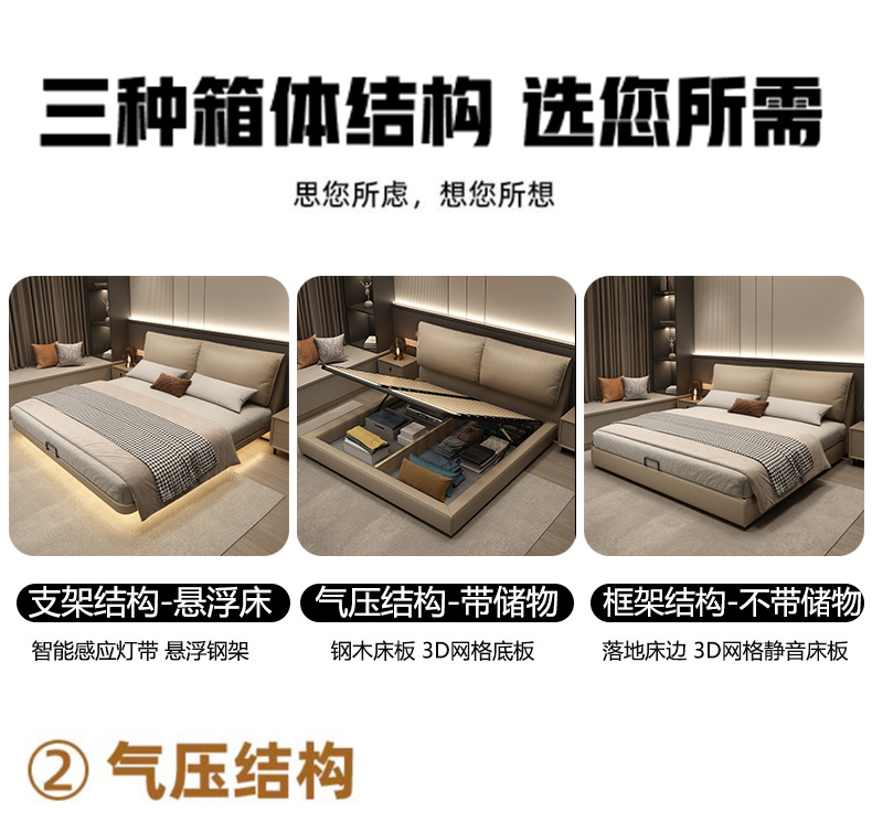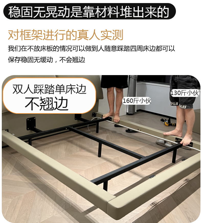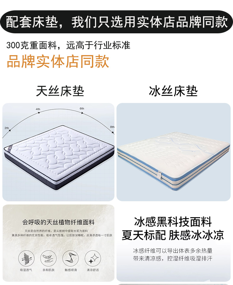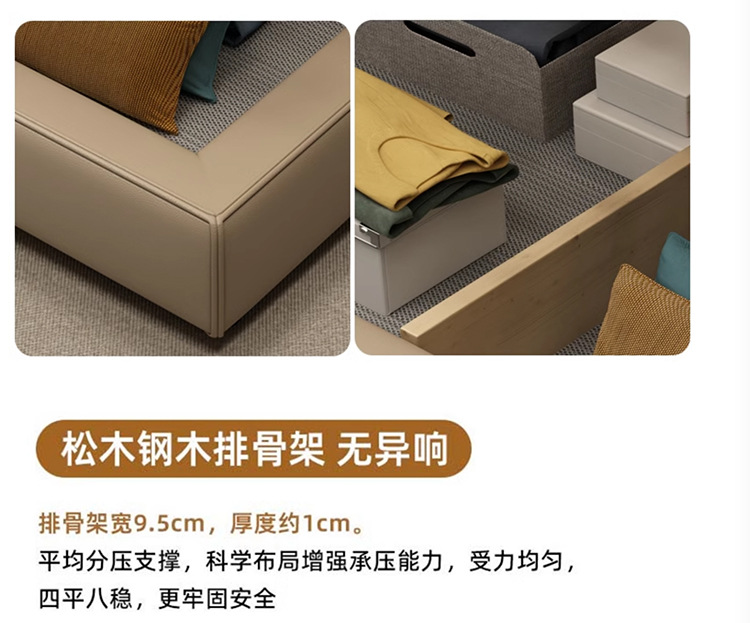 • 가죽 침대 [모든 단단한 나무 3D 조용한 조밀한 솔기 침대 보드] 나파 노란색 소가죽 + 폴리머 브랜드 아이스 실크 패브릭 매트리스