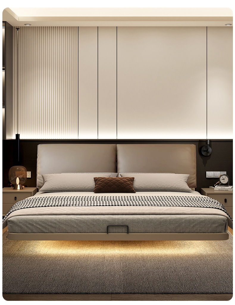 서스펜션 침대 모던 심플 코끼리 귀 가죽 2m x 2.2m 마스터 침실 대형 침대 이탈리안 미니멀리스트 이퀄 레벨 더블 침대