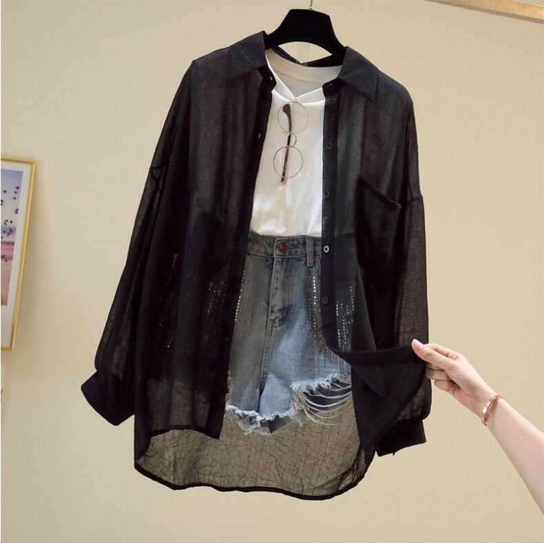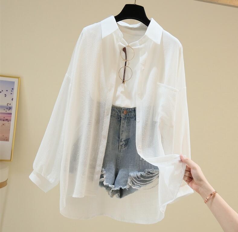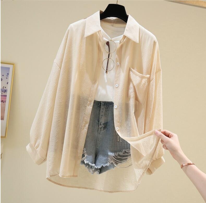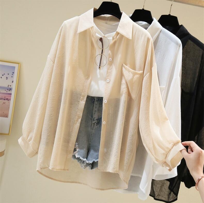 外搭衣服女夏季薄款外套2025年新款韩版宽松百搭长袖雪纺开衫衬衣스토어 가기