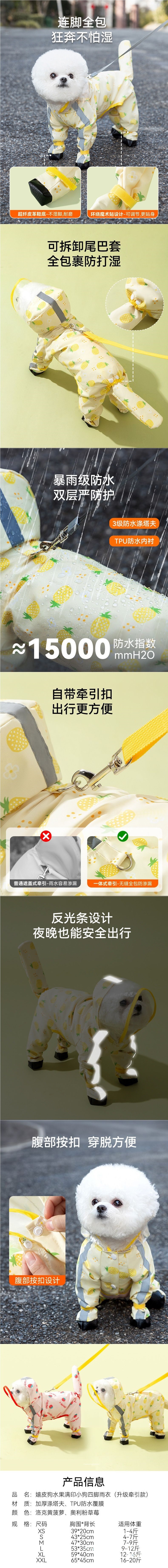 강아지 한국식 과일 4발 비옷 업그레이드된 견인형 일체형 중소형견 방수 애완동물 비옷스토어 가기