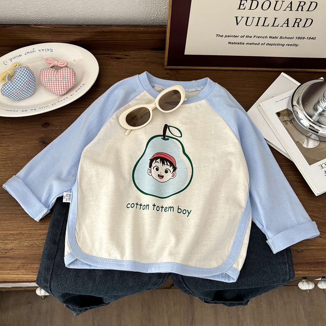 아동용 긴팔 티셔츠 가을 바닥 셔츠 순면 한국식 베이비 새 소년상의 소녀 의류 아동복스토어 가기
