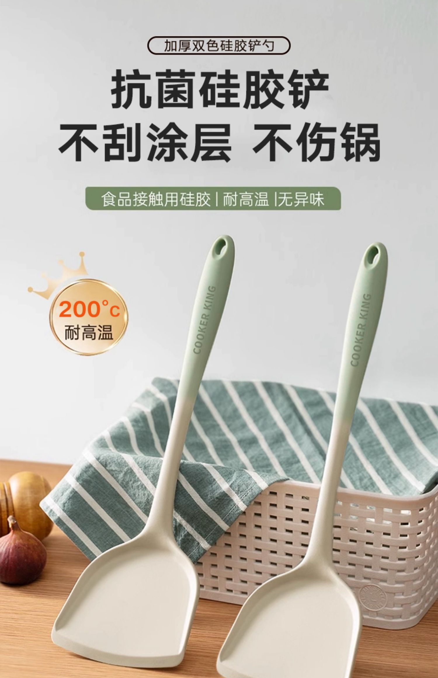 실리콘 주걱, 붙지 않는 식품 등급 고온 방지 실리콘 요리 주걱, 수프 스푼, 소쿠리 세트 없음스토어 가기