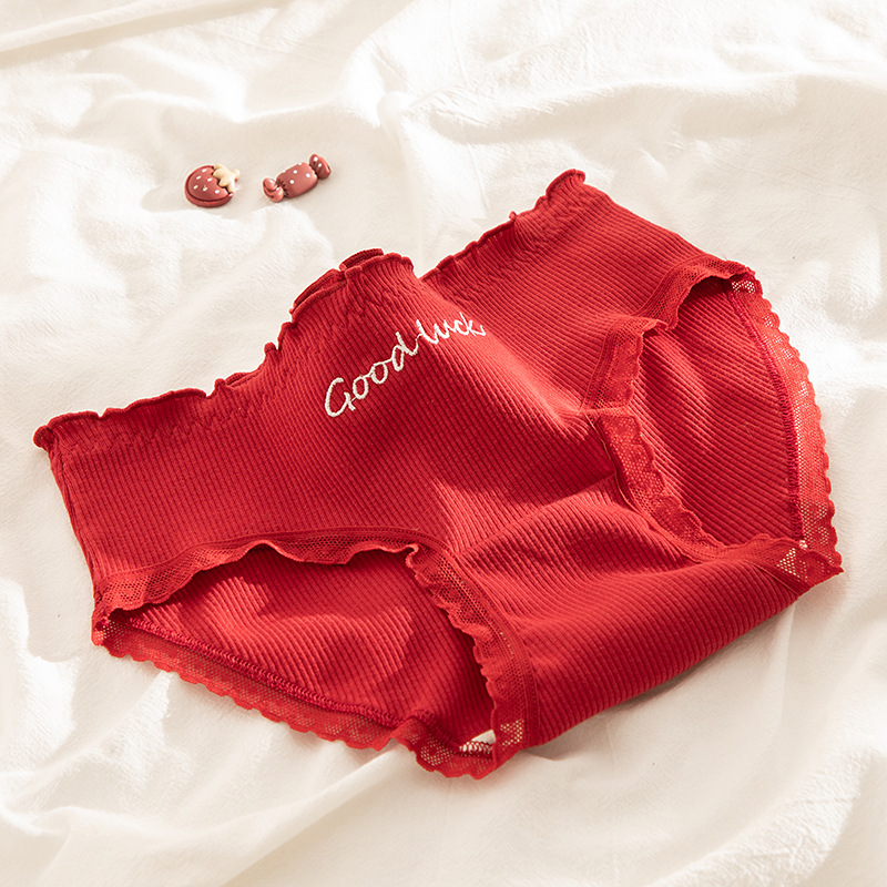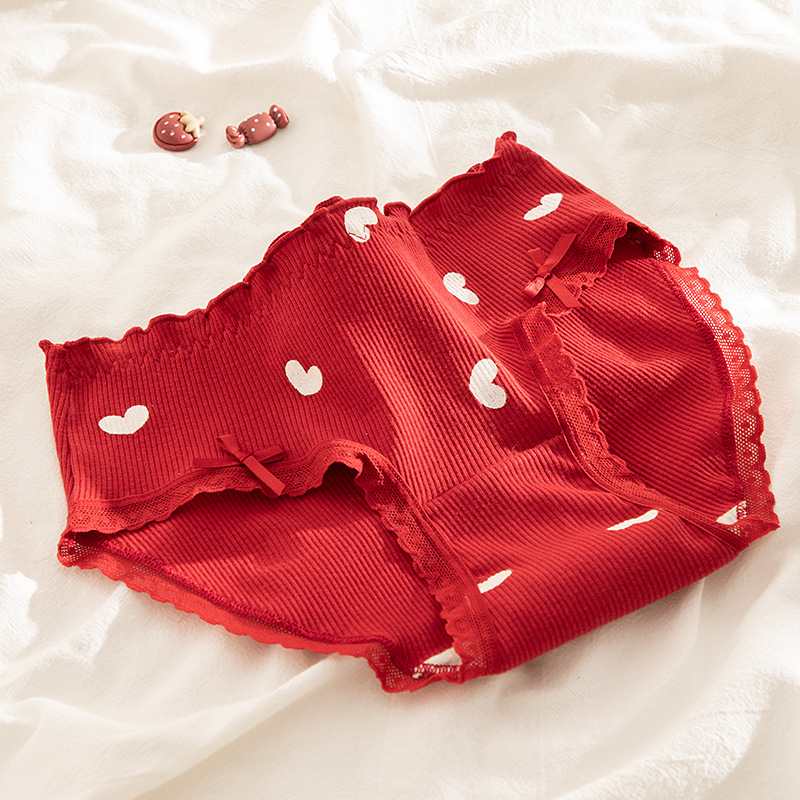 새 버전 5A 풀 팬츠 소녀 속옷 여성 순면 가랑이 사랑 행운의 동물 년 중간 허리 여성 빨간 반바지