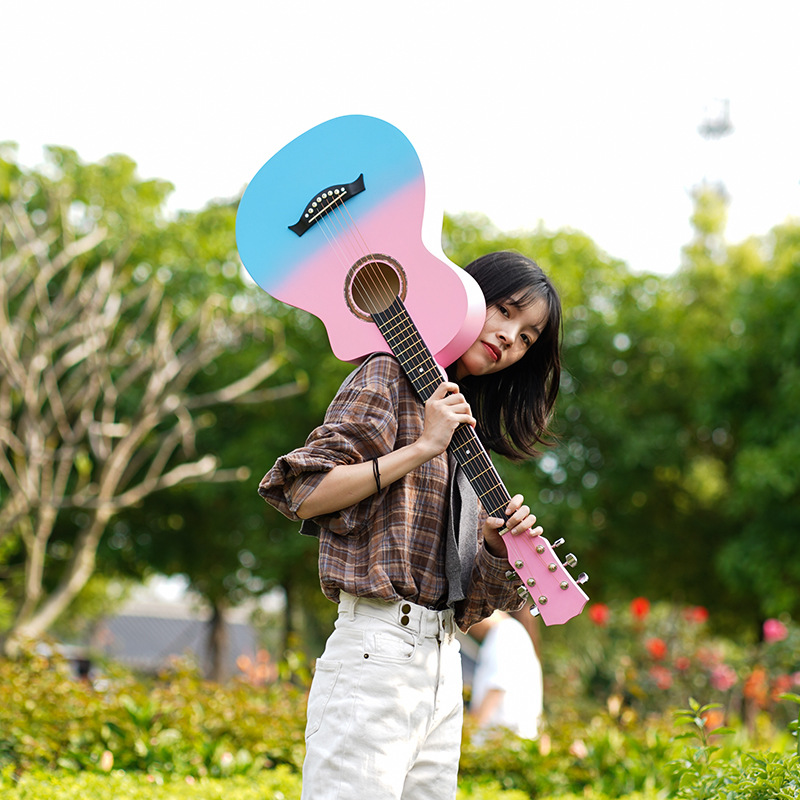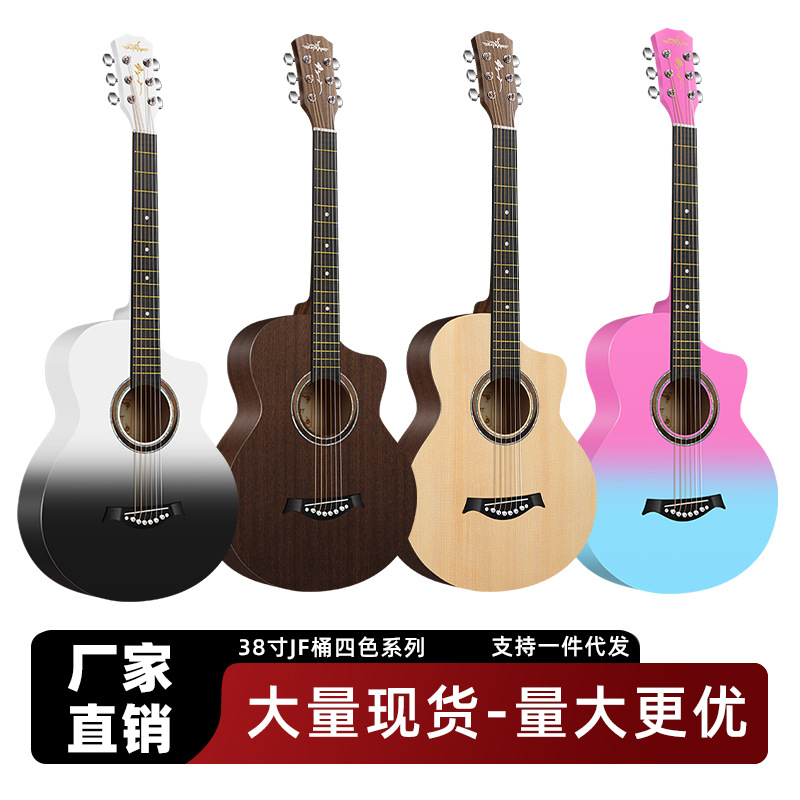 포크 기타 도매 Dropshipping 38inch 대량 재고 그라디언트 컬러 어쿠스틱 기타 초보자 연습 피아노 남성과 여성 초급스토어 가기