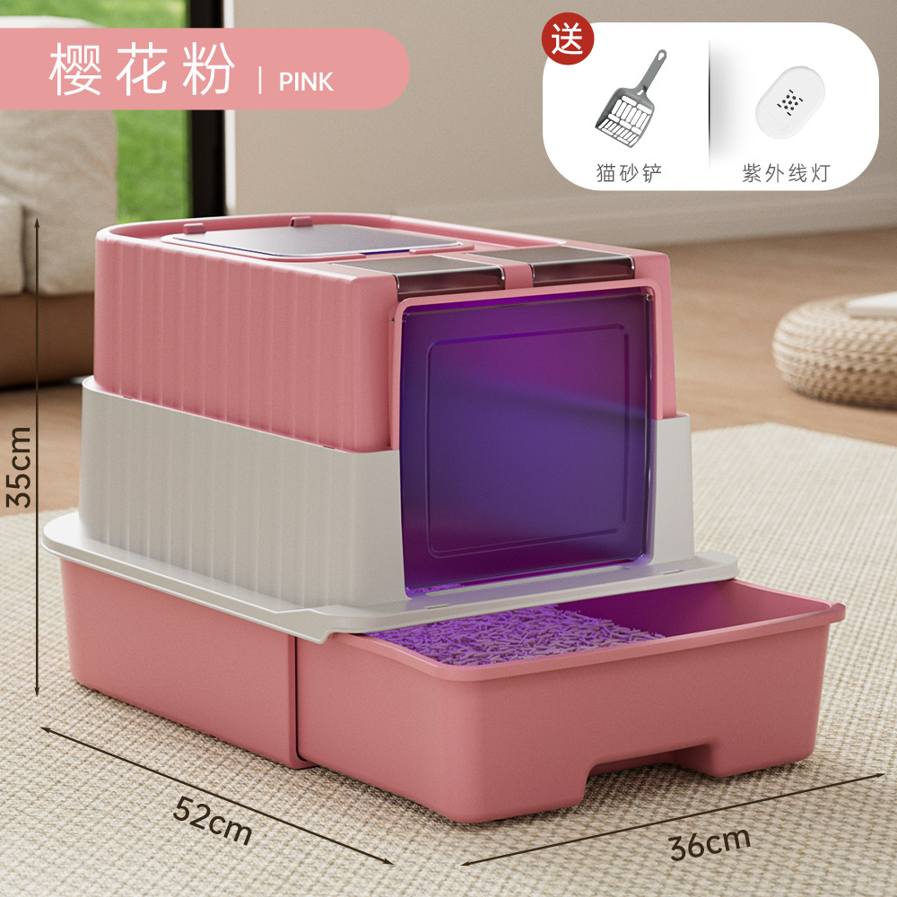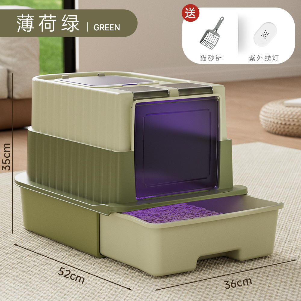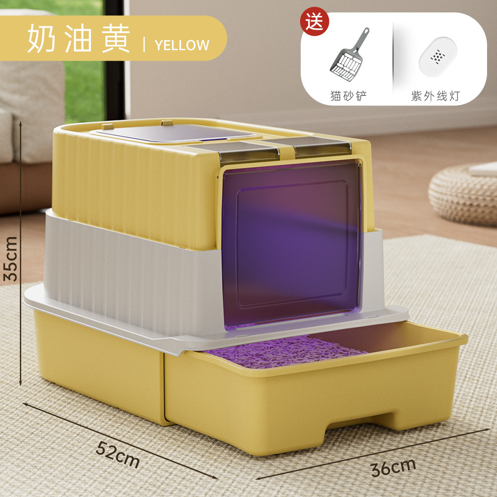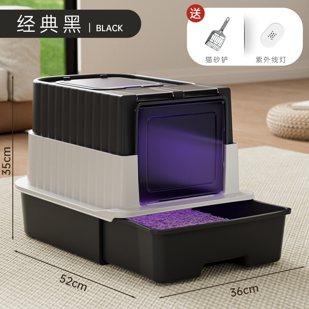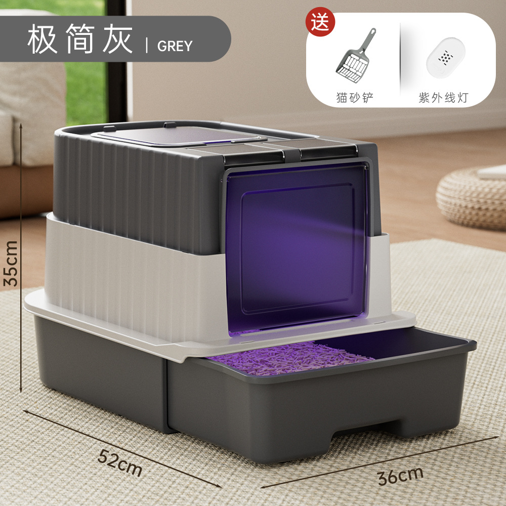 초대형 고양이 쓰레기 상자, 밀폐형, 물 튀김 방지 고양이 화장실, 탈취 및 살균 고양이 쓰레기 상자, 애완 동물 용품 도매