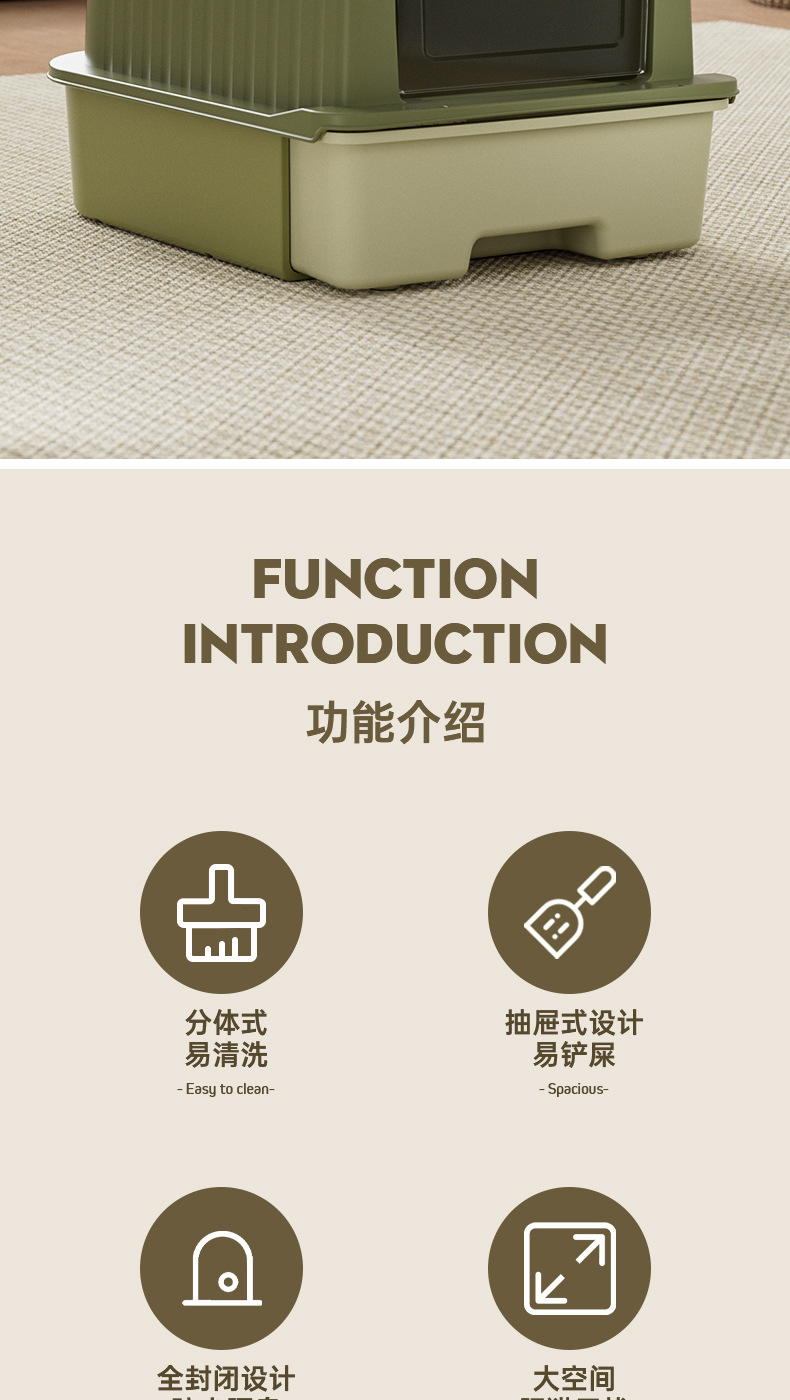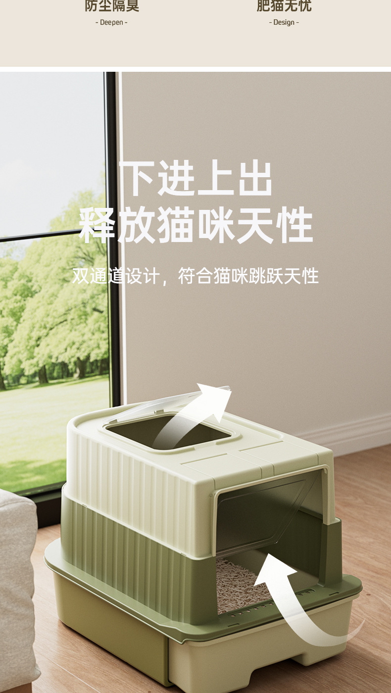 초대형 고양이 쓰레기 상자, 밀폐형, 물 튀김 방지 고양이 화장실, 탈취 및 살균 고양이 쓰레기 상자, 애완 동물 용품 도매스토어 가기