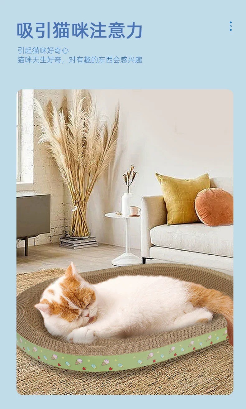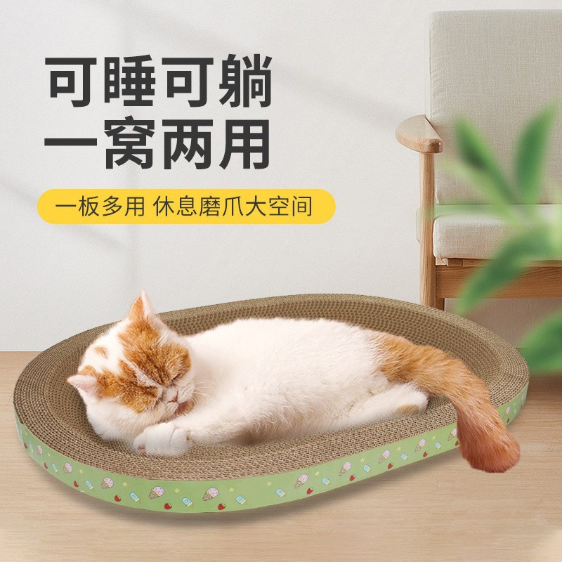 대형 타원형 고양이 스크래치 보드 겸 고양이 집, 내구성 강하고 부스러기 없는 골판지 고양이 발톱 갈이 도구, 애완용품스토어 가기