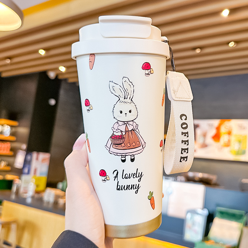 316 더블 드링크 스테인레스 스틸 보온병 컵, 고급스러운 휴대용 커피 컵, 자이언트 팬더 더블 드링크 보온 및 보냉 밀짚 컵