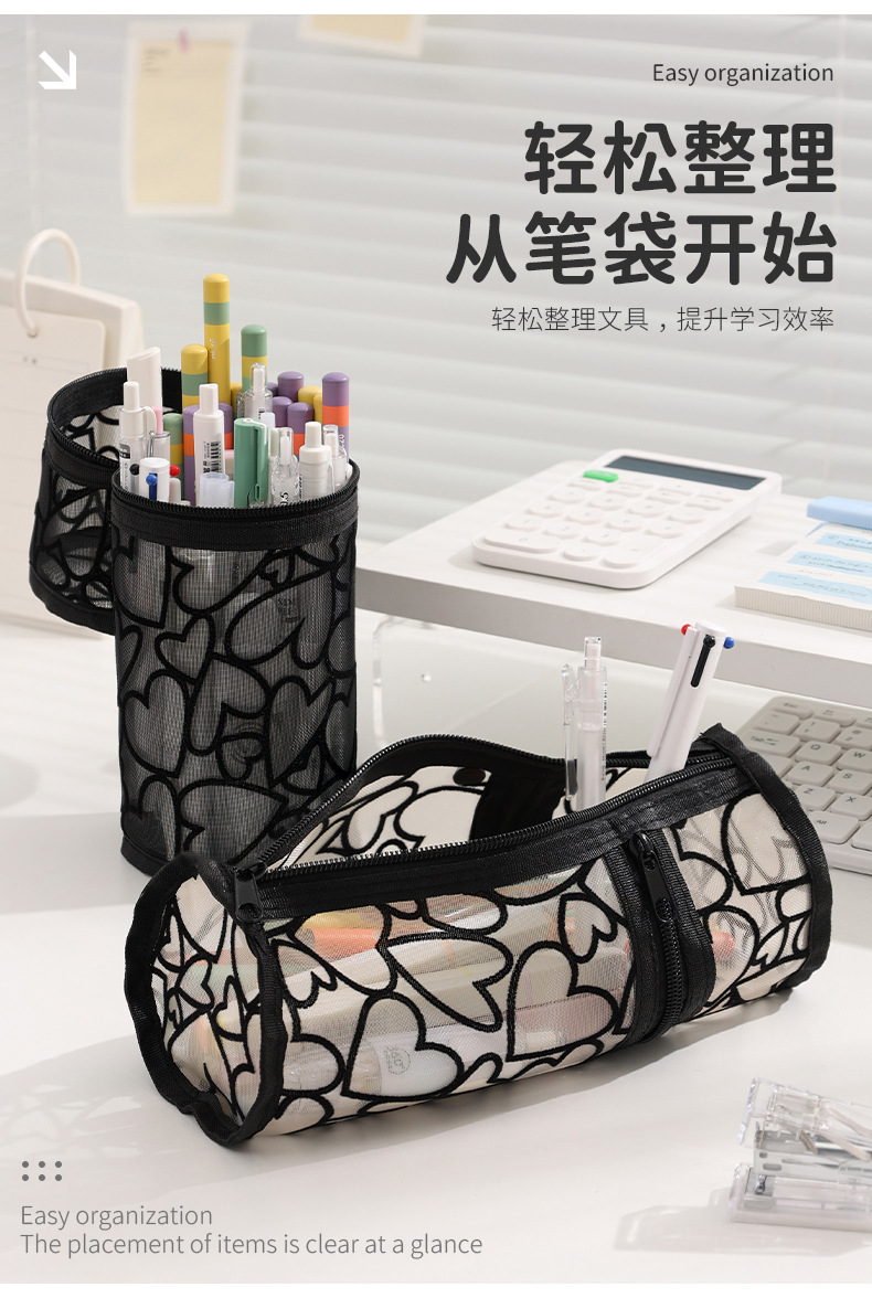 Beilian 메쉬 연필 가방 수직 투명 고가치 문구 상자 원통형 학생 학교 시즌 펜 홀더 가방 도매스토어 가기