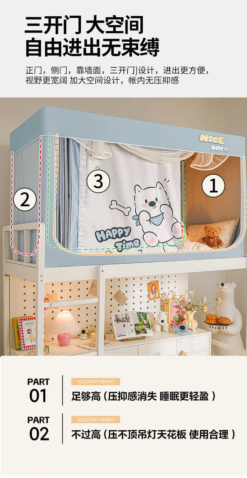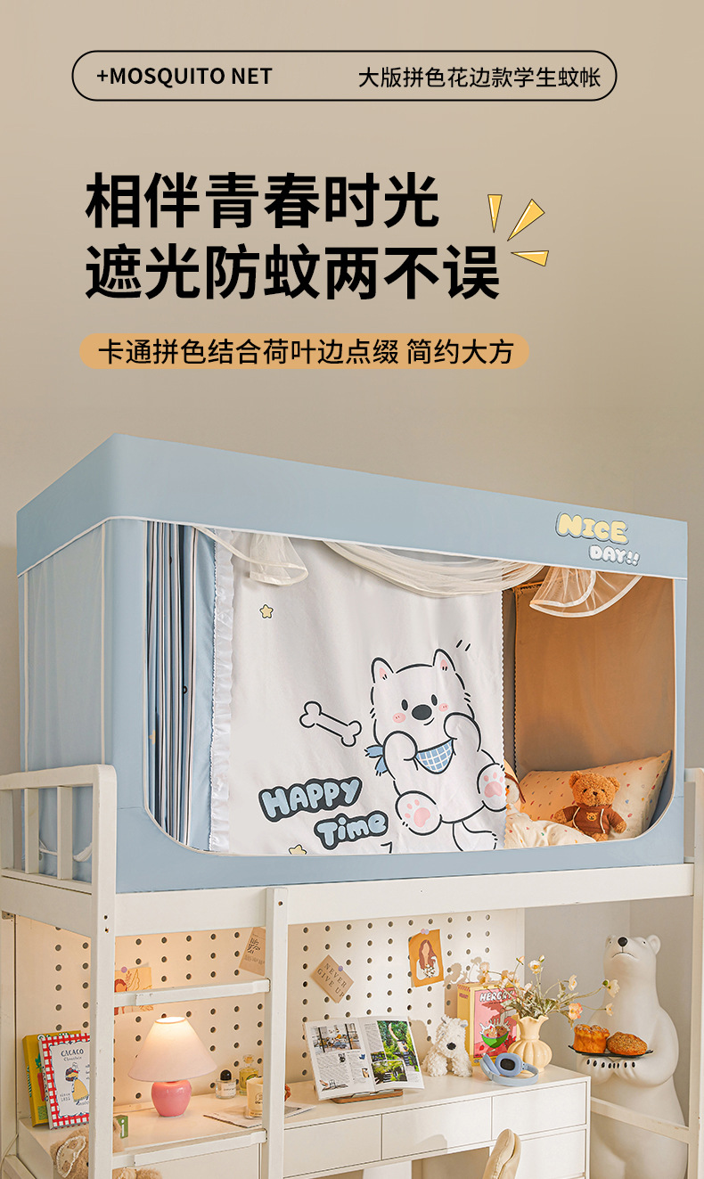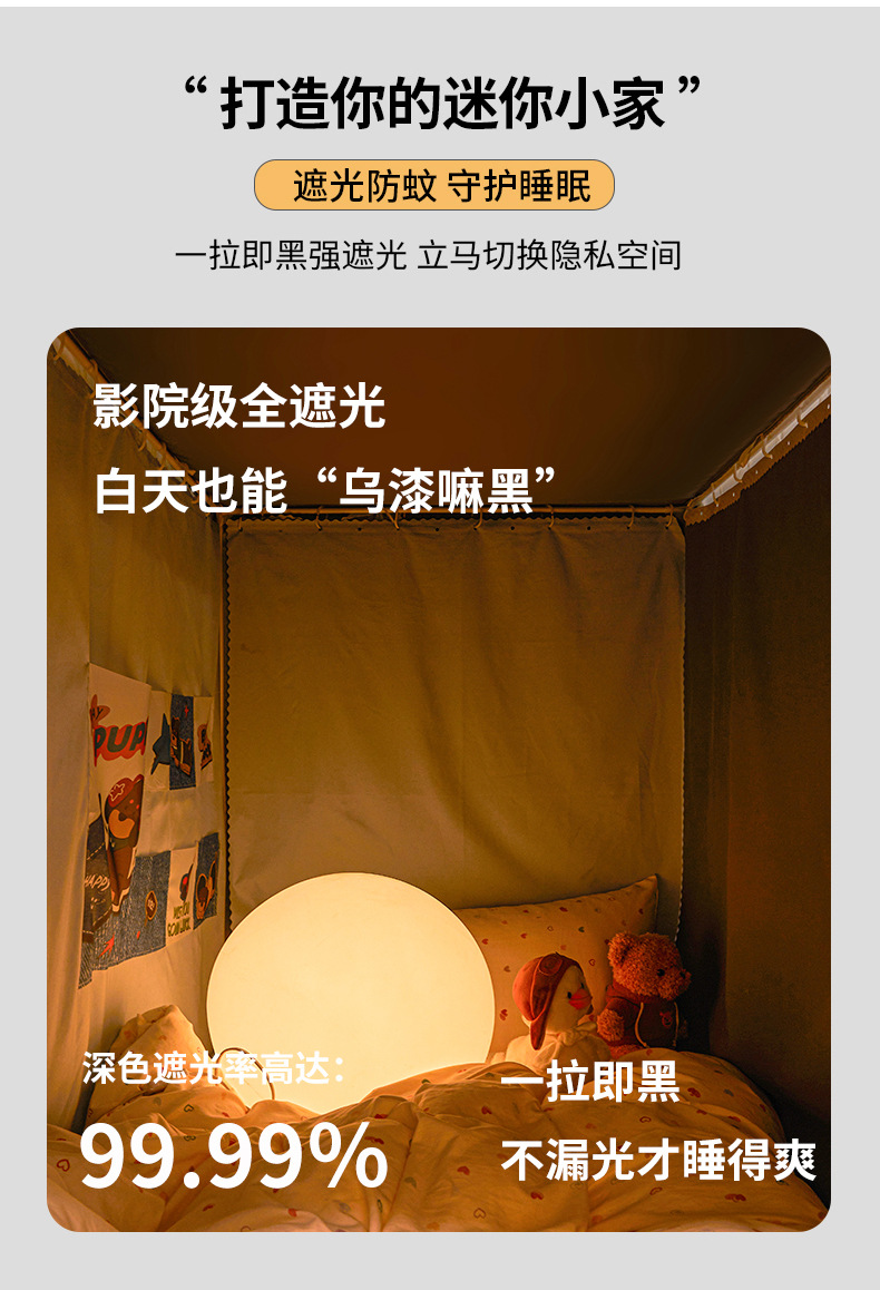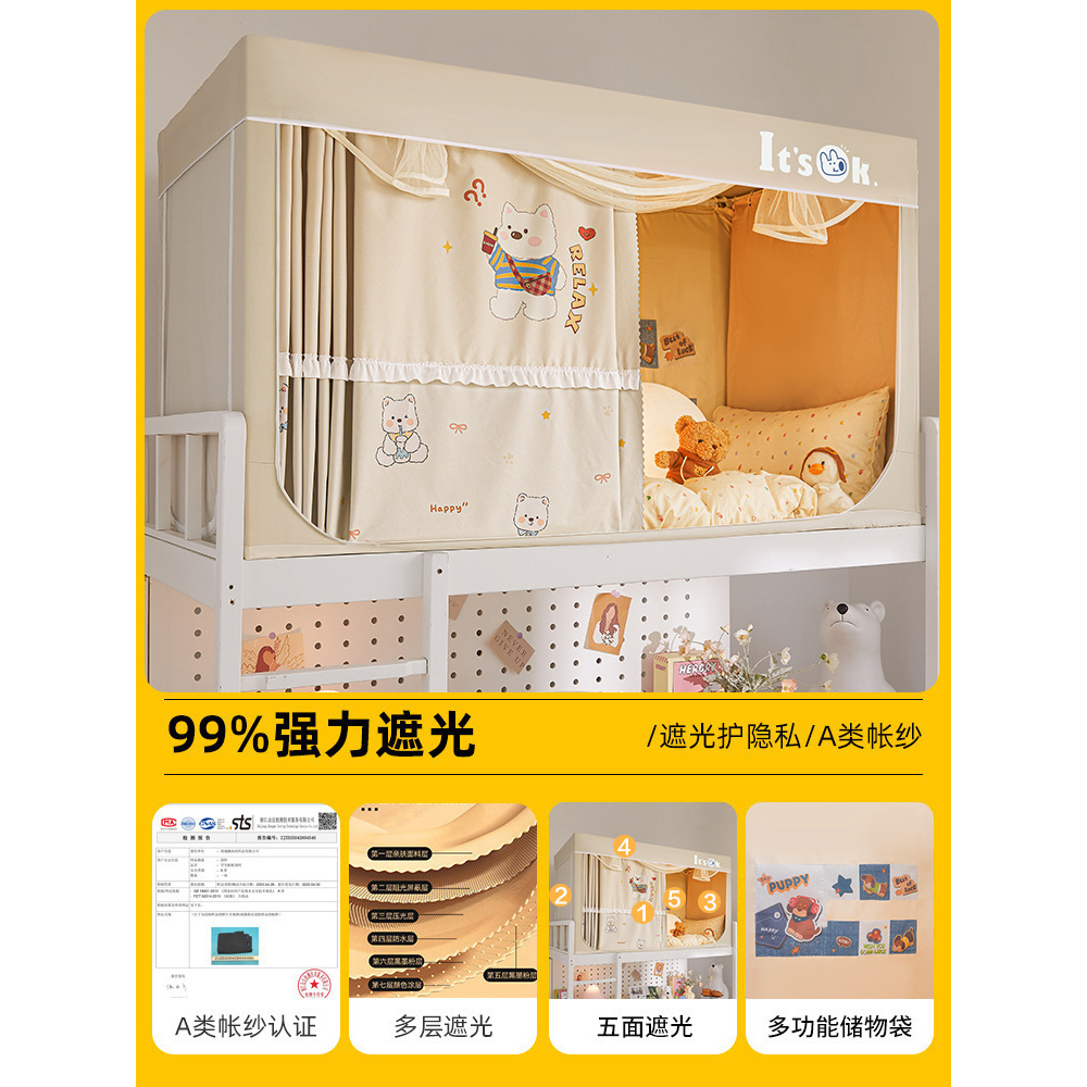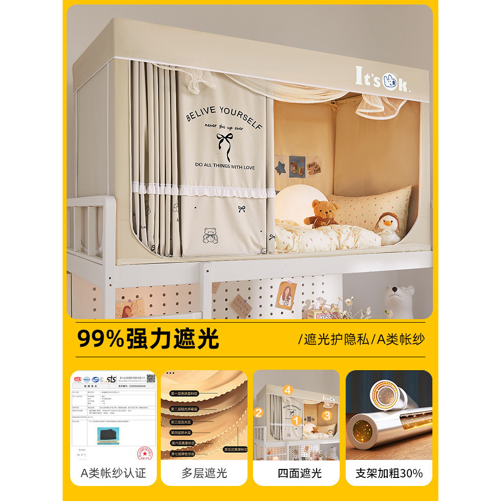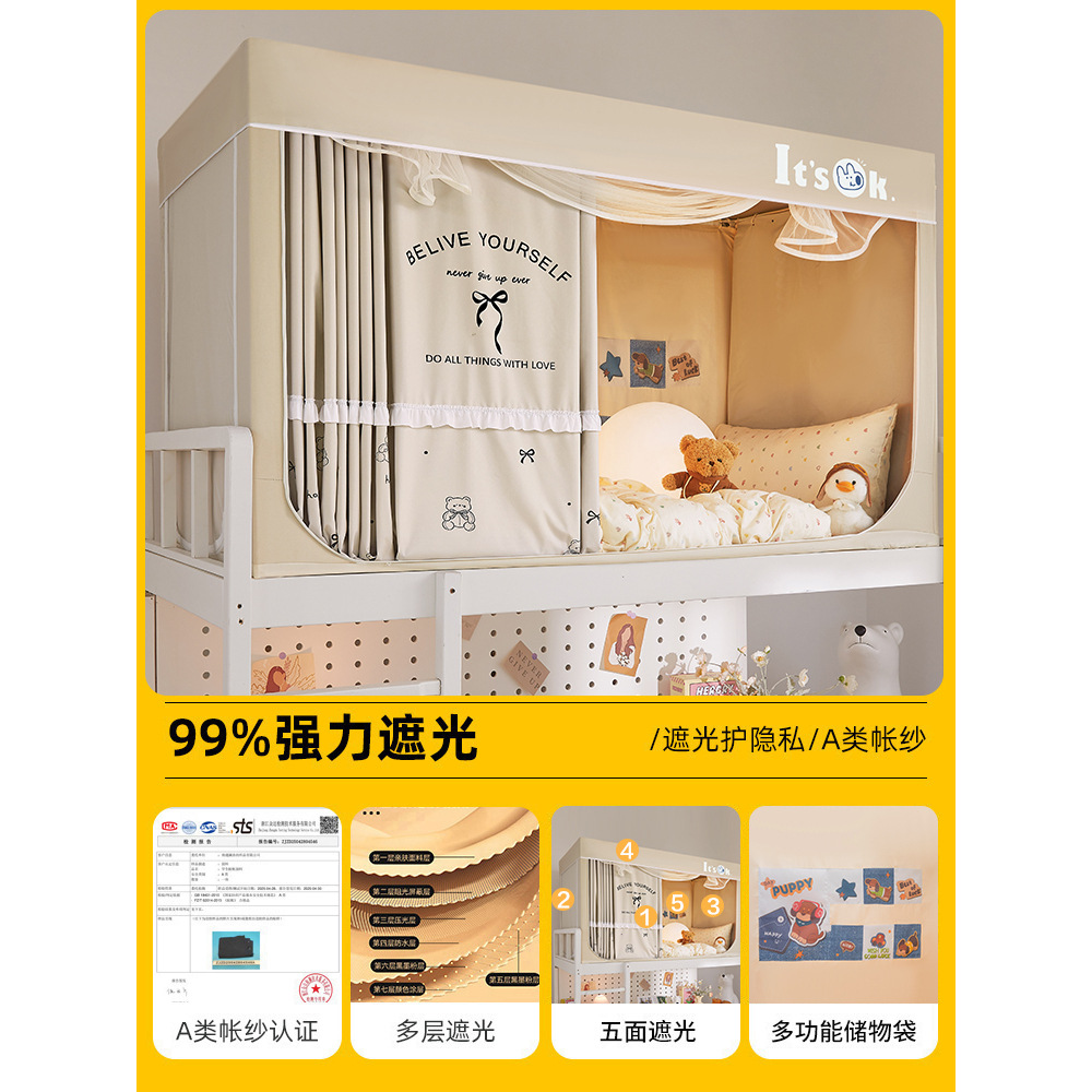 학생 기숙사용 강력 차광 모기장, 올인원 침대 커튼, 싱글 침대 및 이층 침대 전용스토어 가기