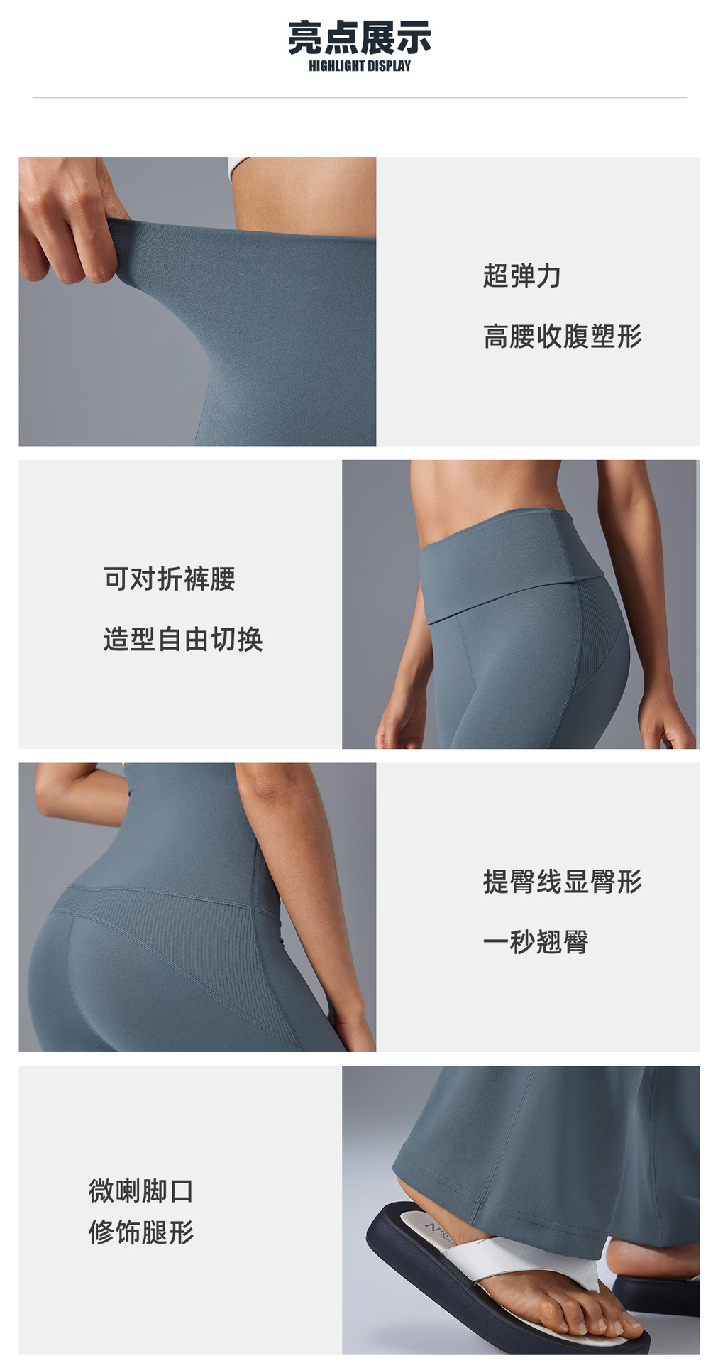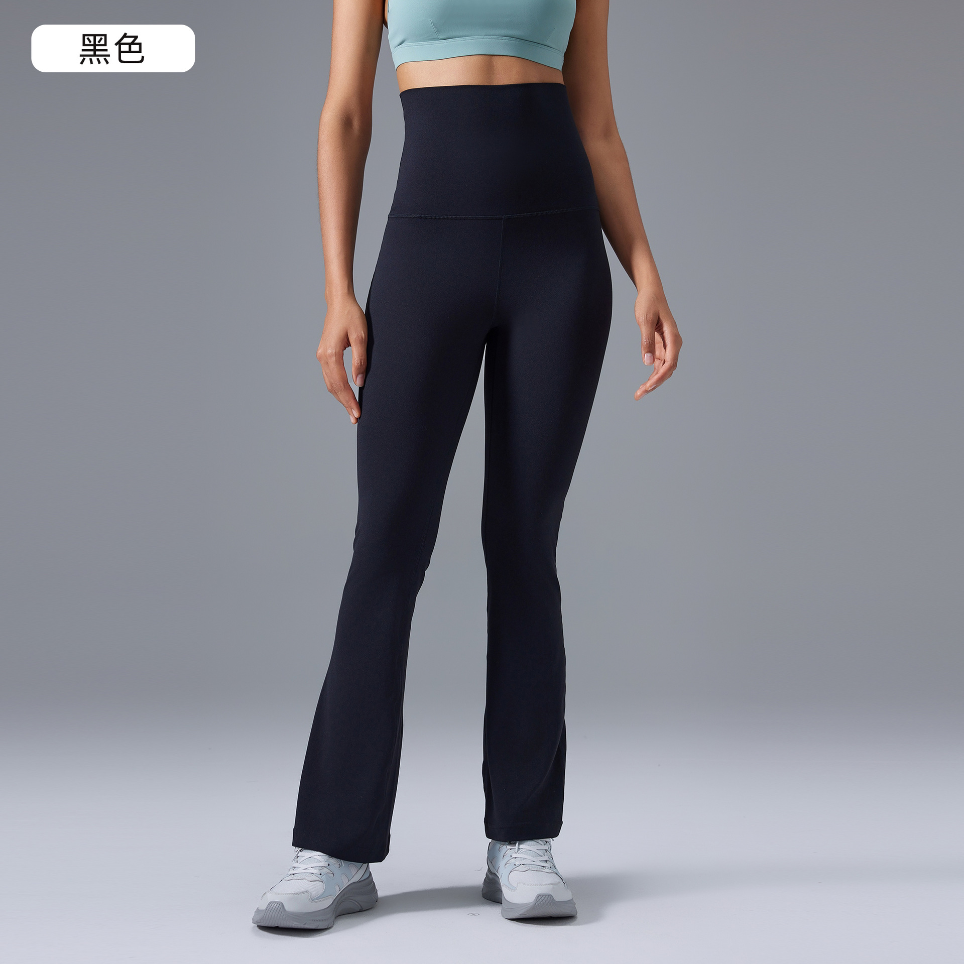 하이웨이스트 힙업 마이크로 플레어 요가팬츠, 접이식 허리 플레어팬츠, 누드슬리밍 스포츠 피트니스 팬츠 D25102