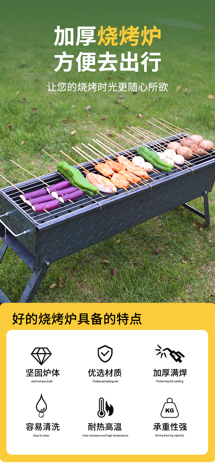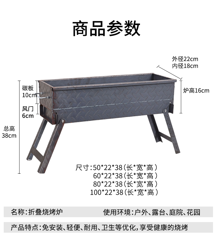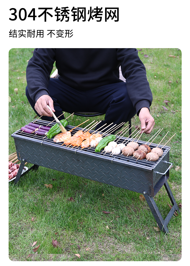가정용 야외 캠핑용 바베큐 스토브 접이식 휴대용 완전 용접 상업용 두꺼운 스톨 바베큐 꼬치 랙 숯