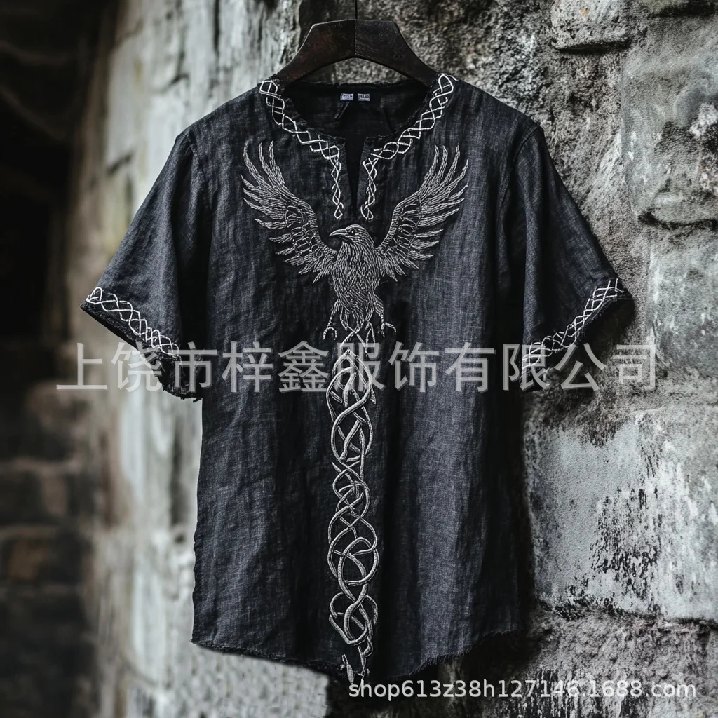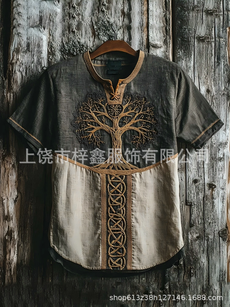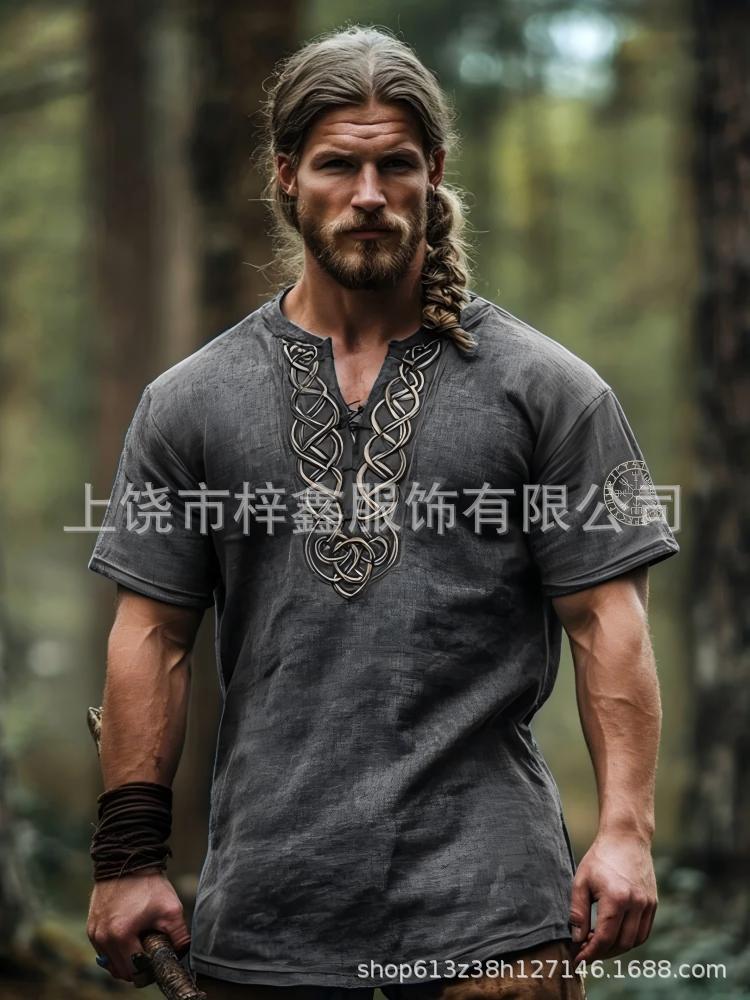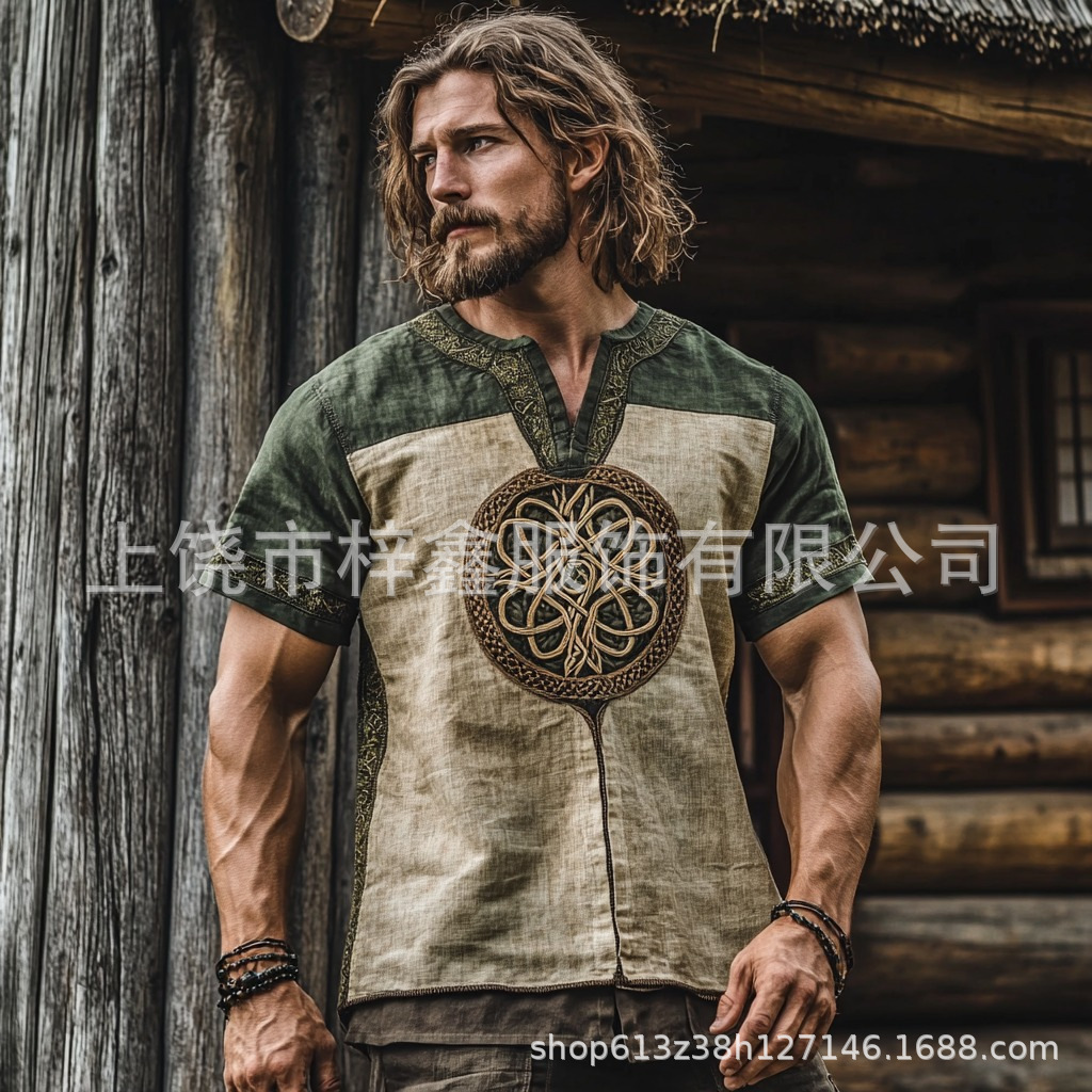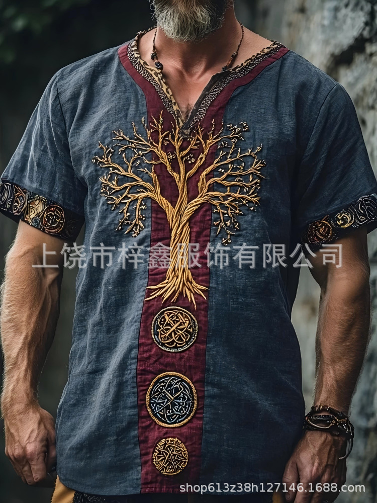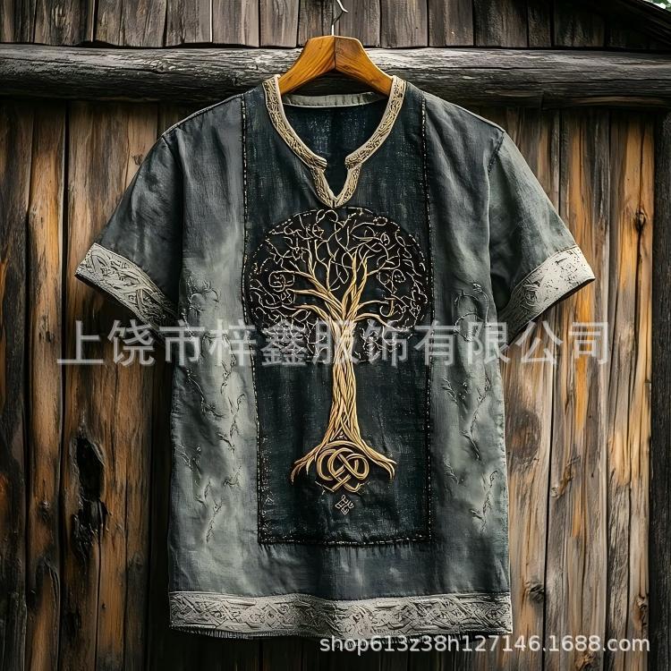 跨境夏季男士麻料短袖休闲圆领T恤3D民族风数码印花短袖量大价优스토어 가기