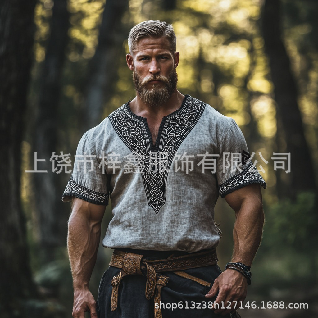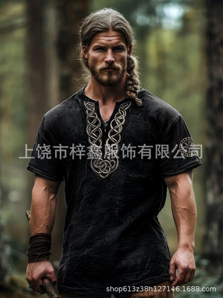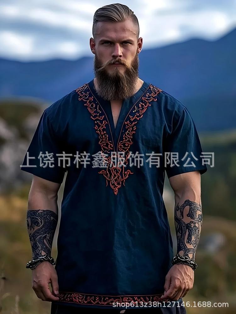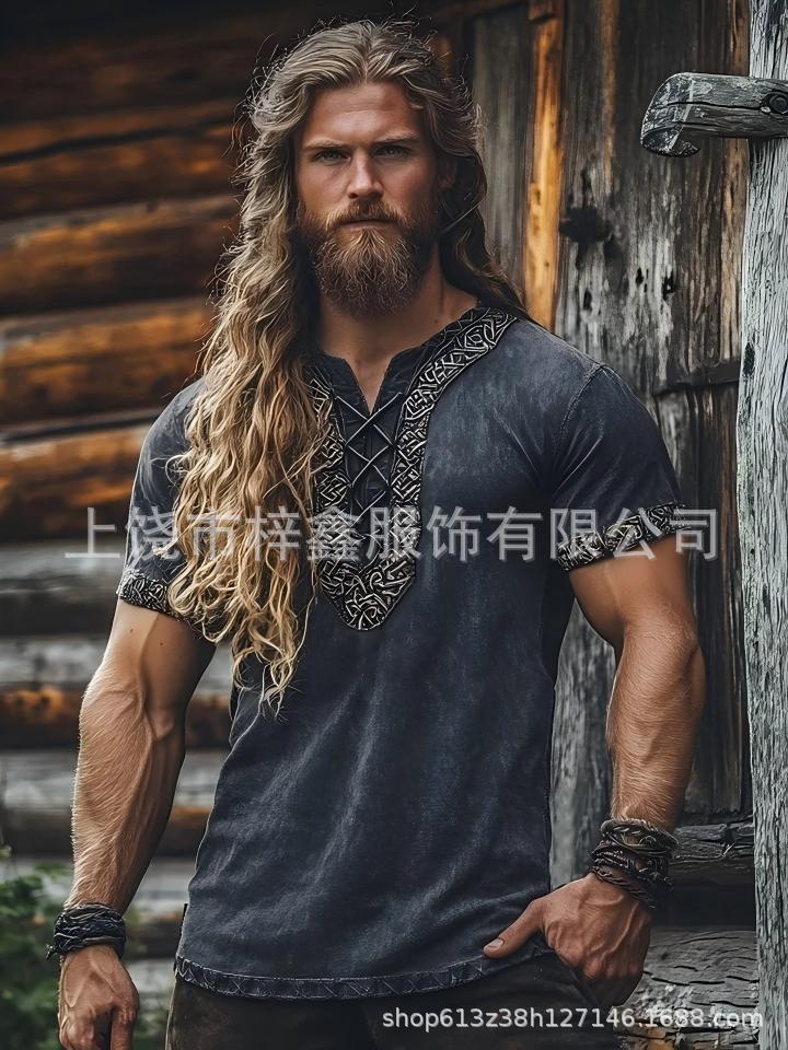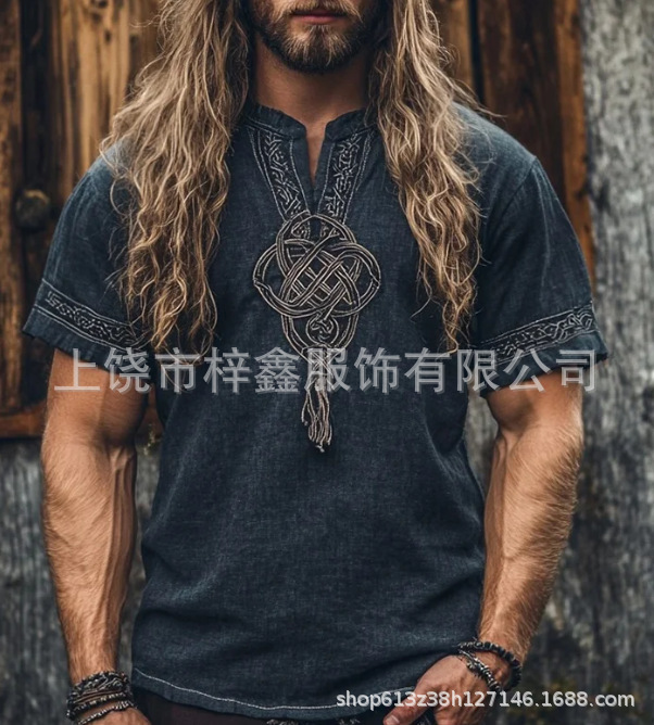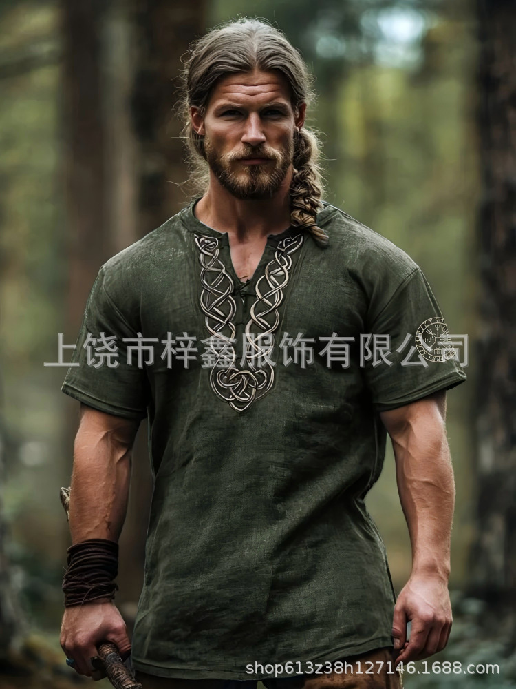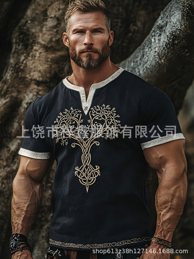 跨境夏季男士麻料短袖休闲圆领T恤3D民族风数码印花短袖量大价优스토어 가기