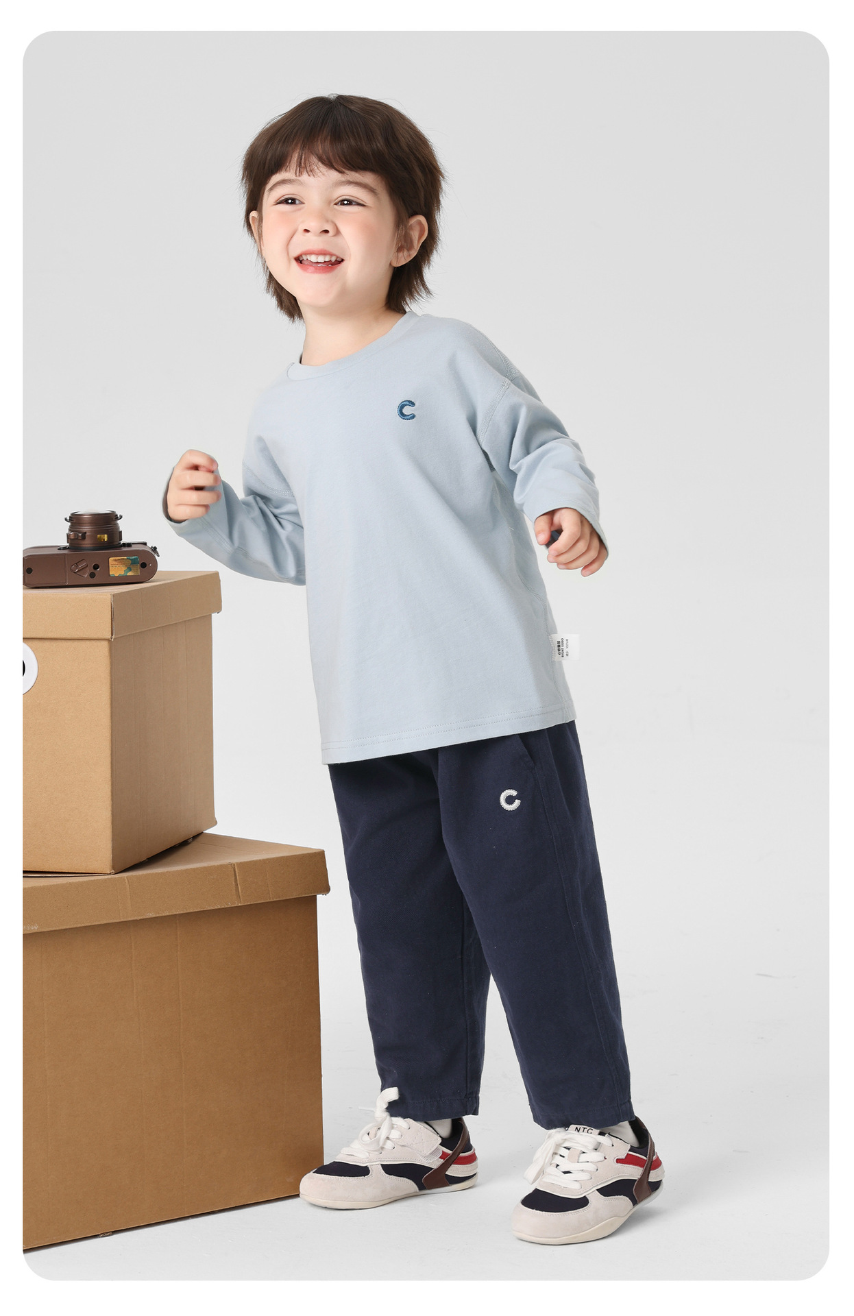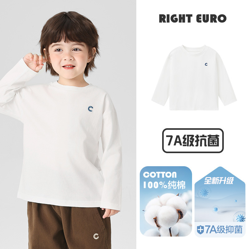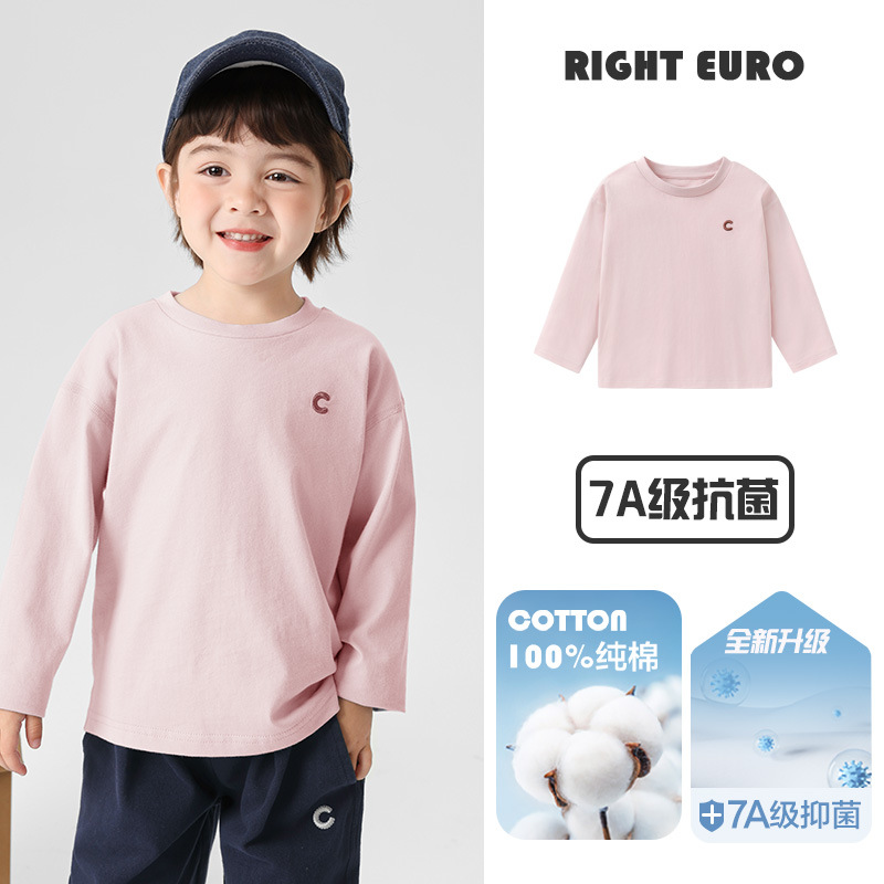 오른쪽 유럽 소년 순면 긴팔 티셔츠 가을 아동복 아동복 2025 새로운 아동용 바닥 셔츠 봄, 가을 스타일스토어 가기