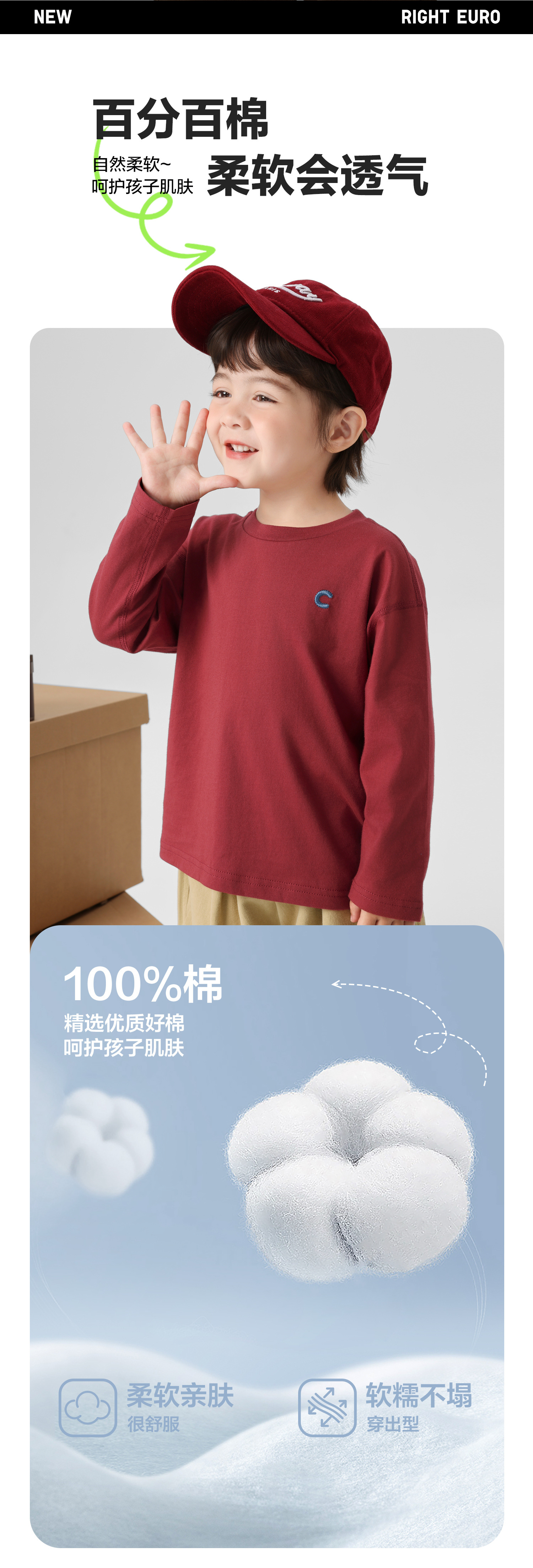 오른쪽 유럽 소년 순면 긴팔 티셔츠 가을 아동복 아동복 2025 새로운 아동용 바닥 셔츠 봄, 가을 스타일