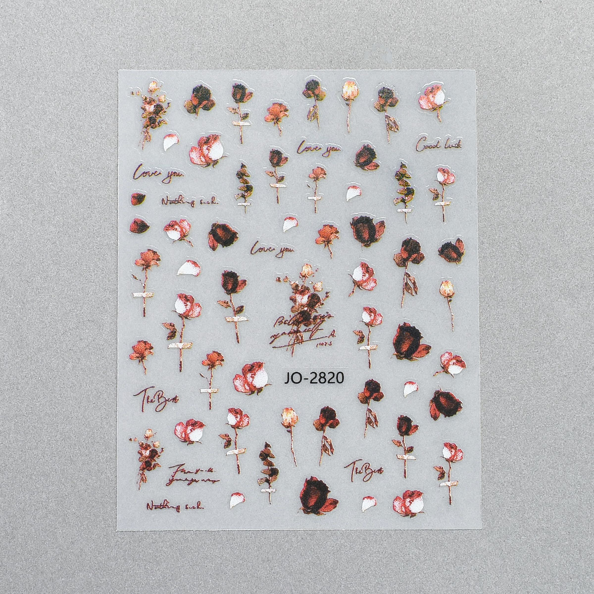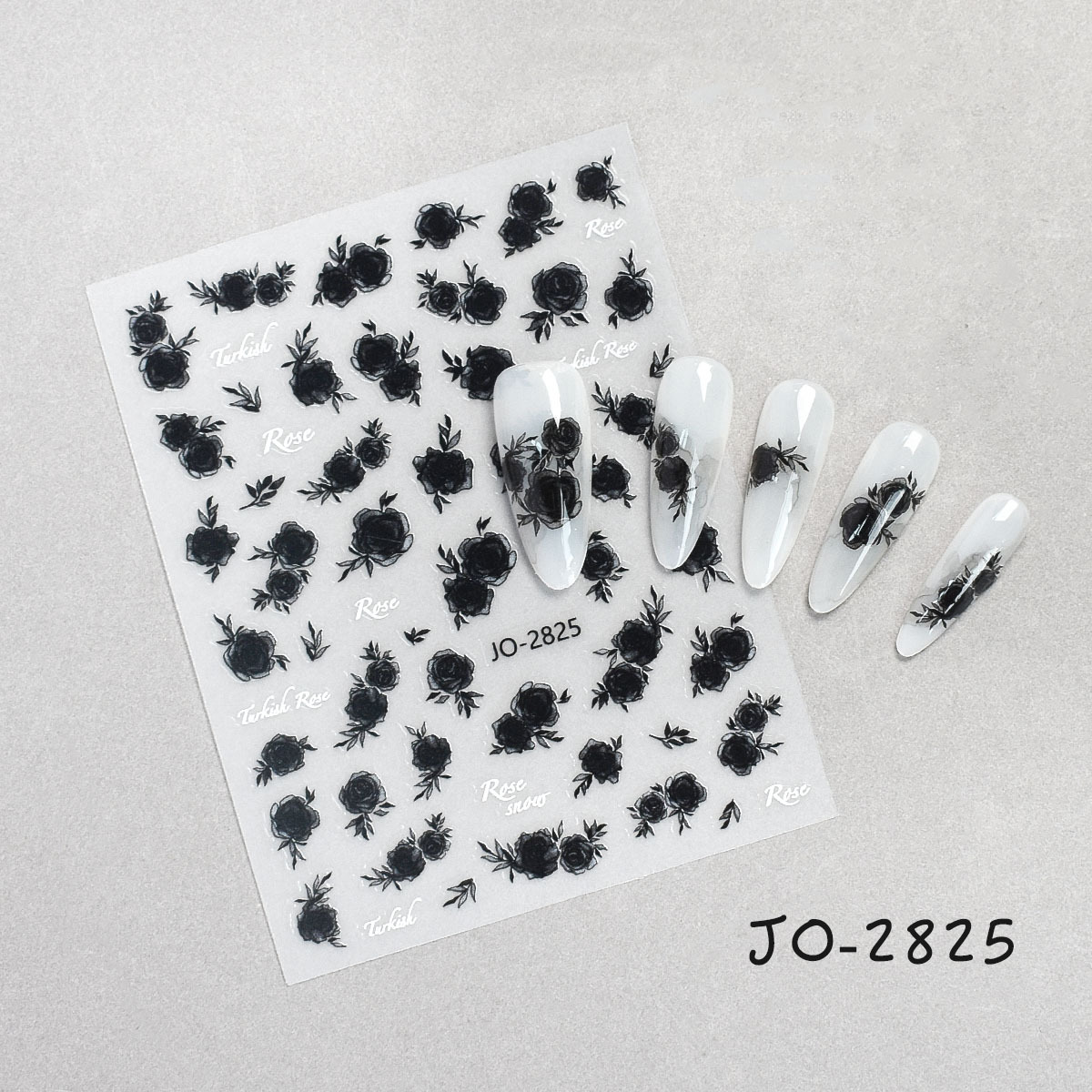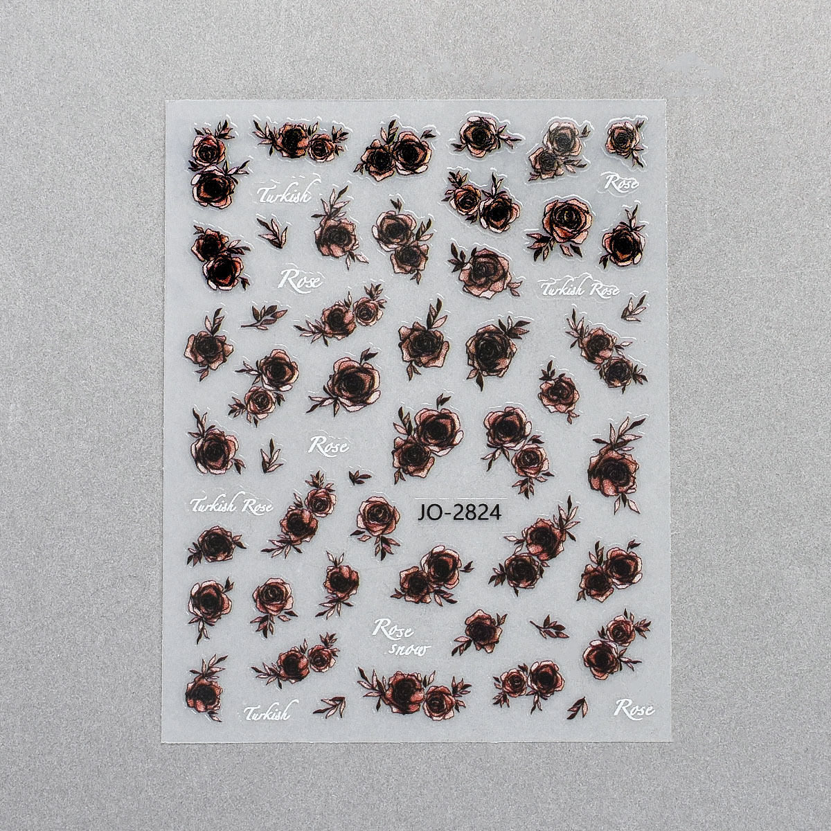 인터넷 연예인 스타일 드라이 플라워 로즈 네일 아트 스티커 핑크 로즈 퍼플 로즈 블랙 로즈 라이트 럭셔리 퓨어 러브 스타일 네일 아트 스티커