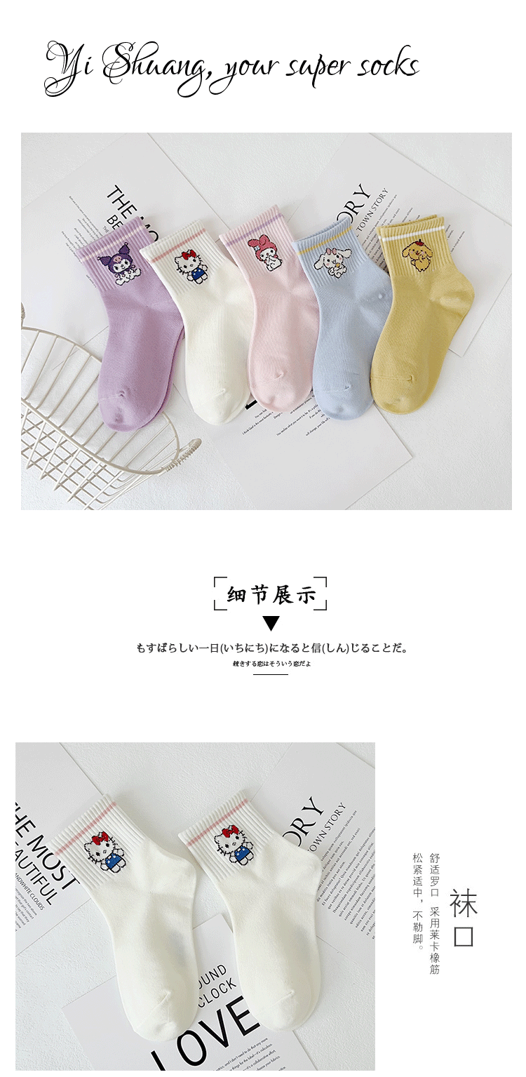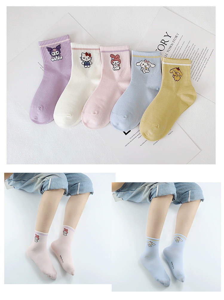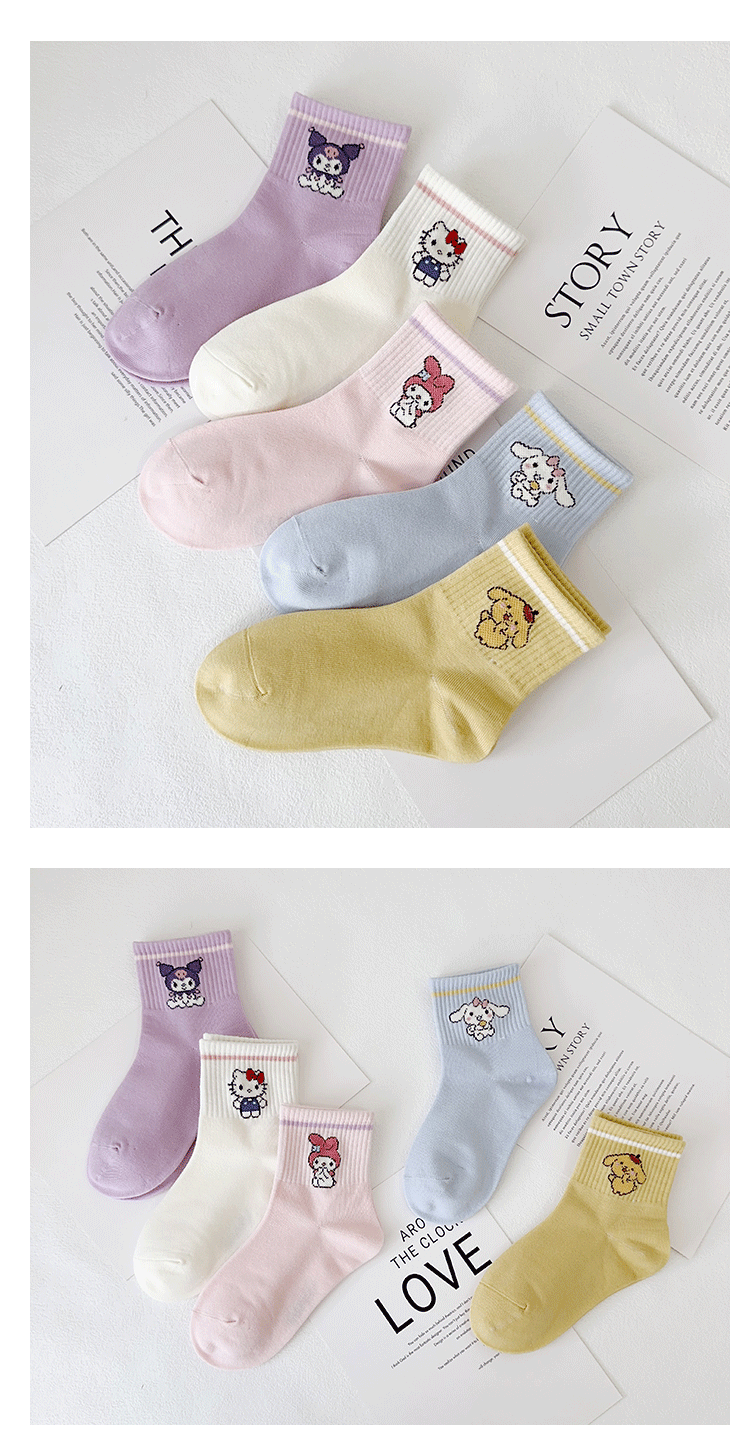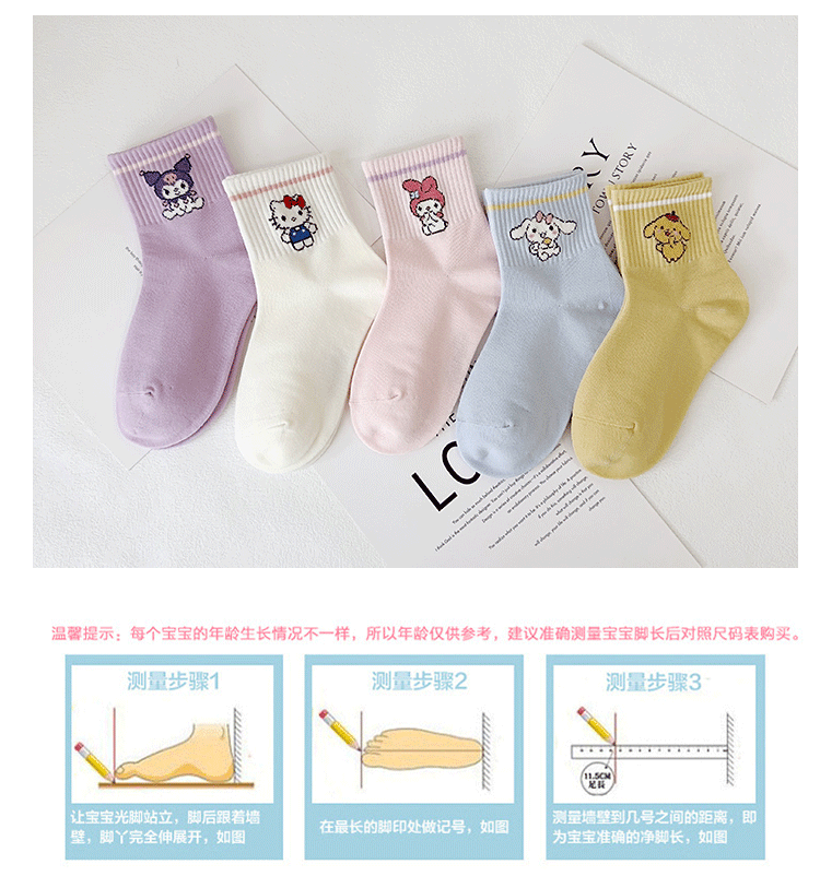 Yishuangshuang 어린이 양말 가을, 겨울 새로운 만화 Sanrio 중간 튜브 양말 빗질면 한국어 버전 소녀 유행 양말 학생