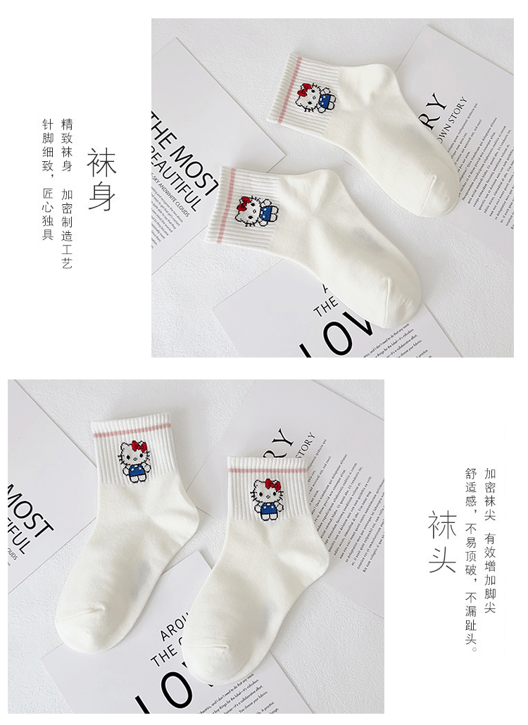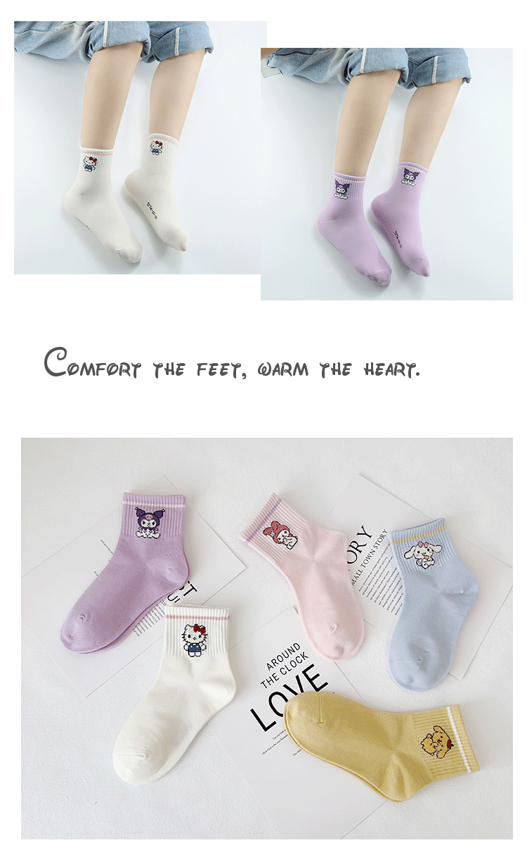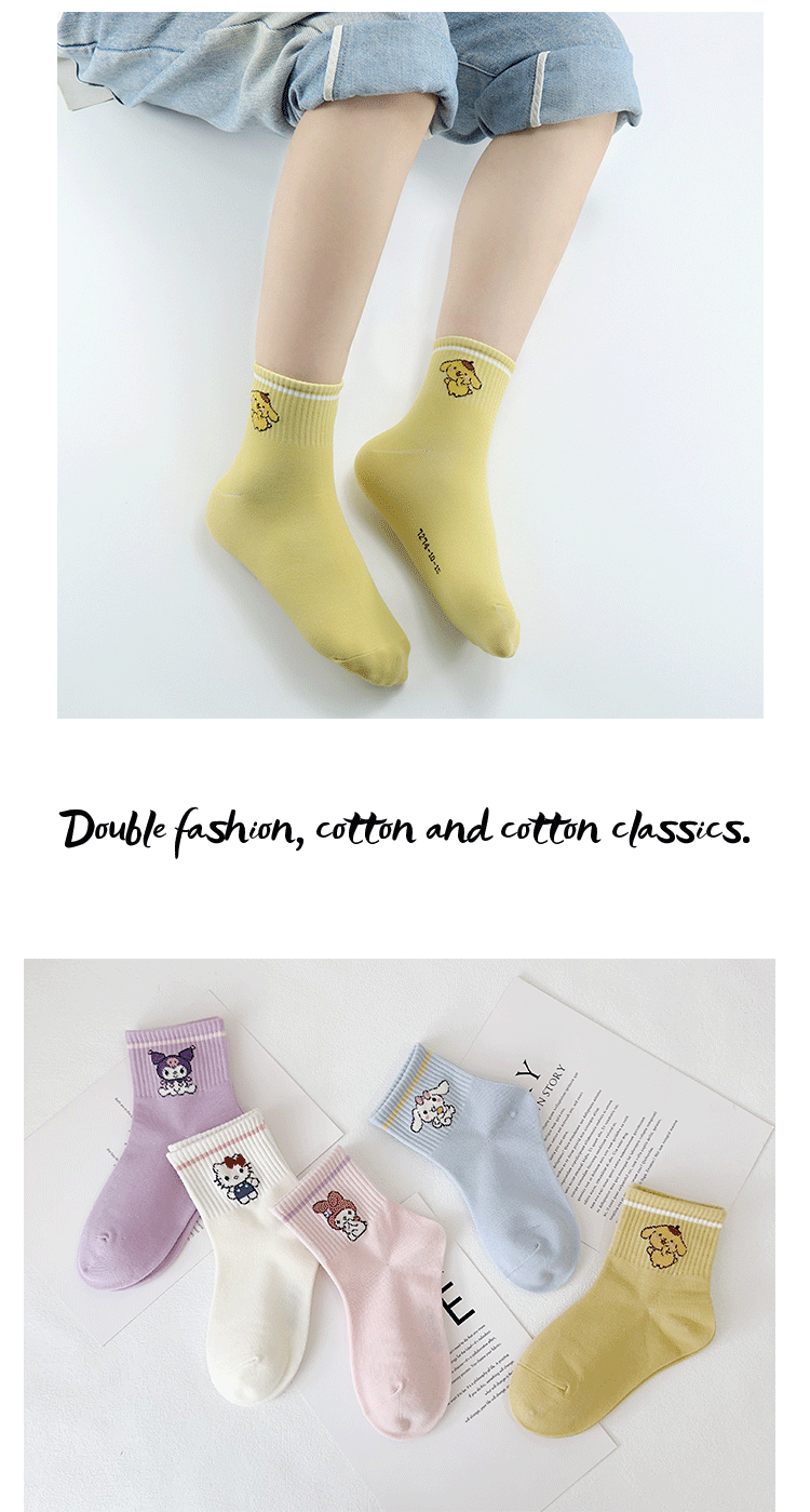 Yishuangshuang 어린이 양말 가을, 겨울 새로운 만화 Sanrio 중간 튜브 양말 빗질면 한국어 버전 소녀 유행 양말 학생