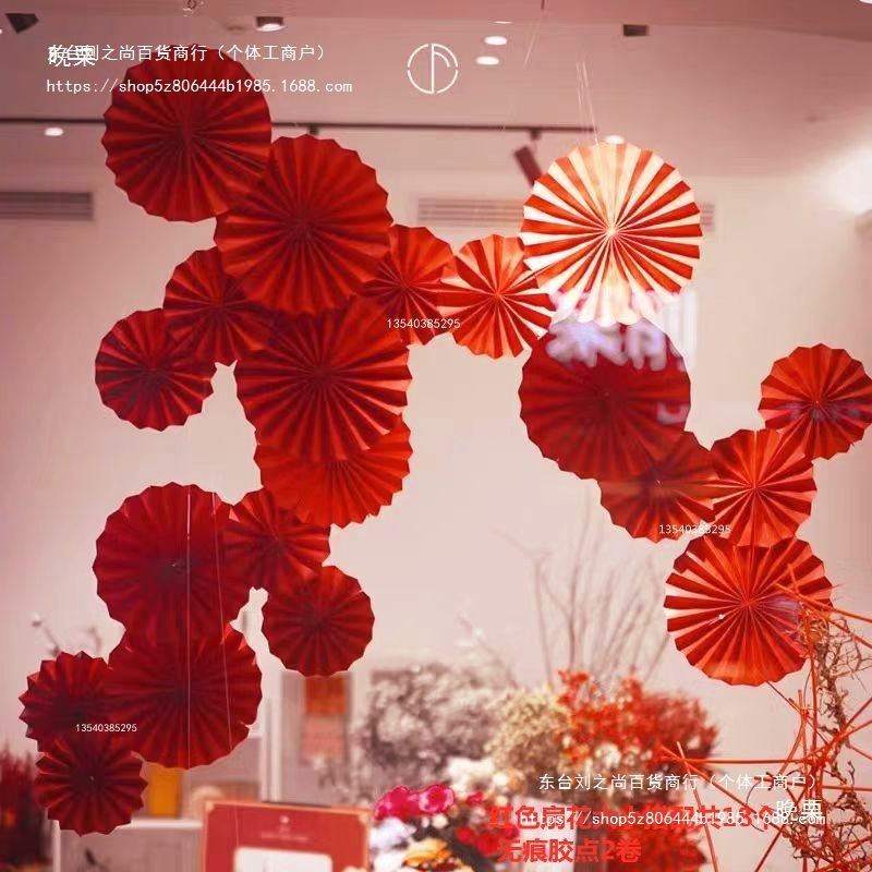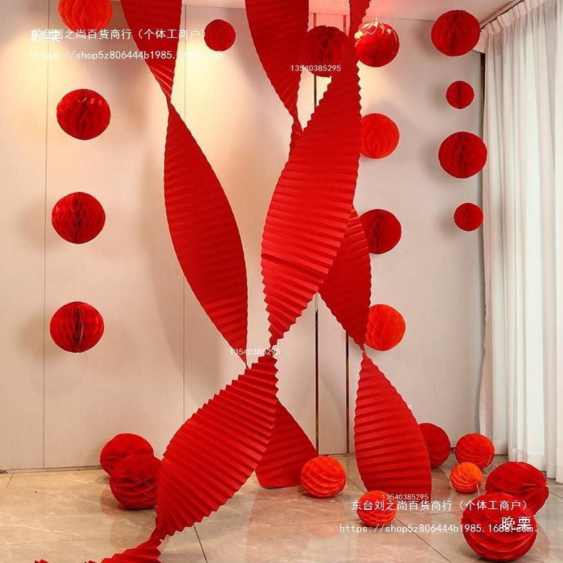 큰 빨간색 골판지 4m 긴 설날 및 봄 축제 여성 의류 매장 창 유치원 랜턴 펜던트 웨이브 베이스스토어 가기