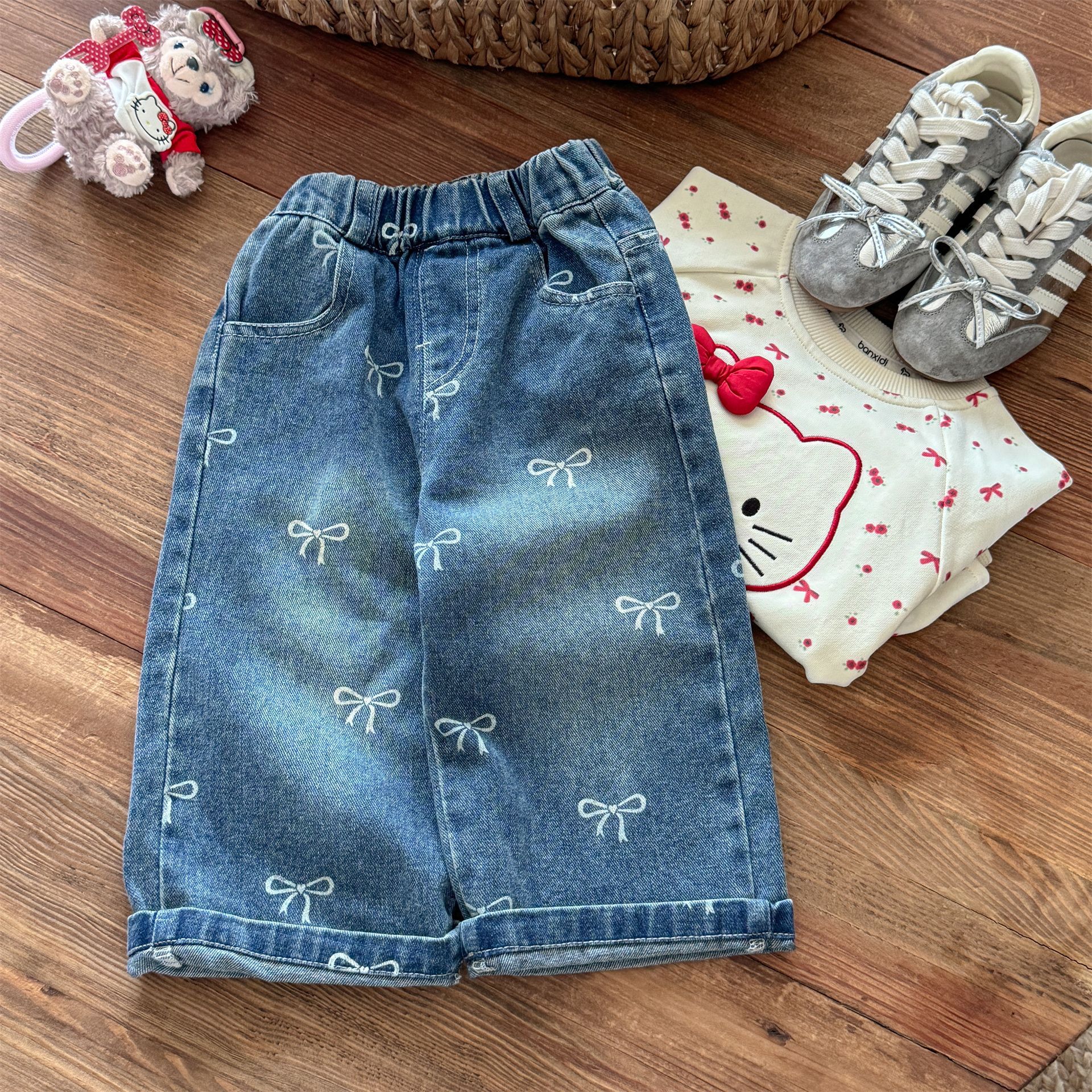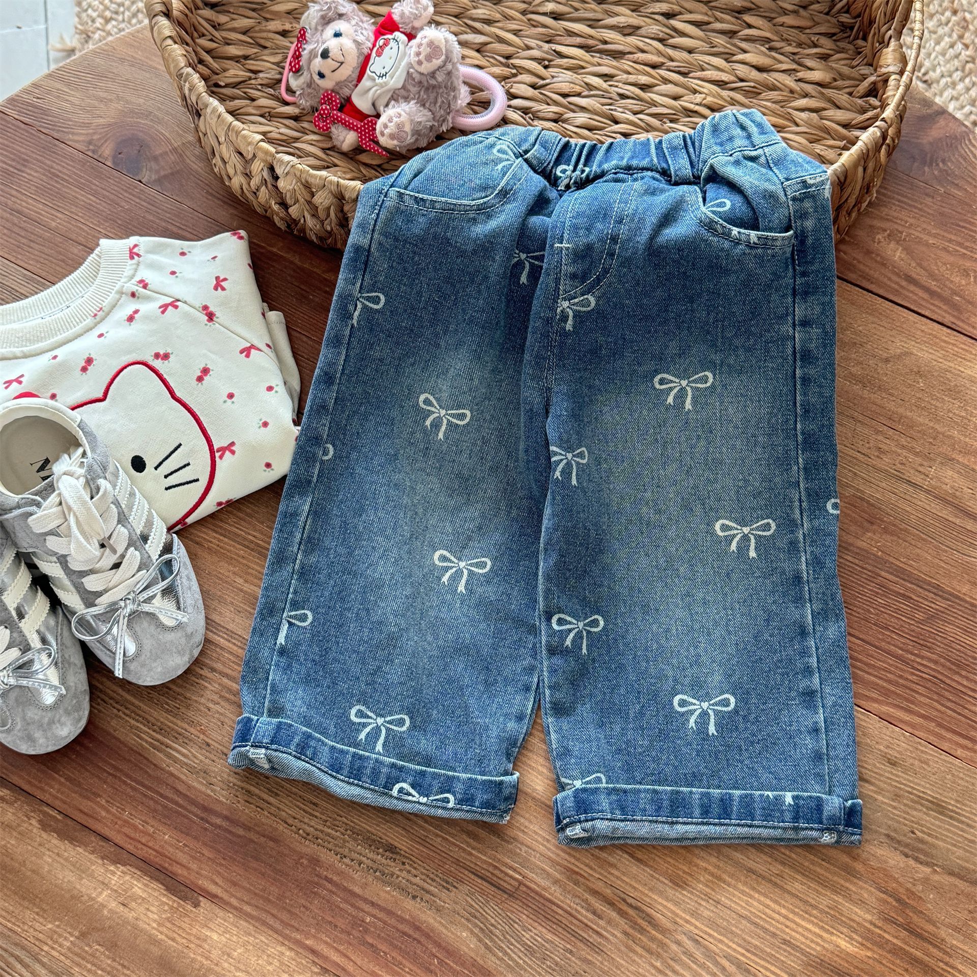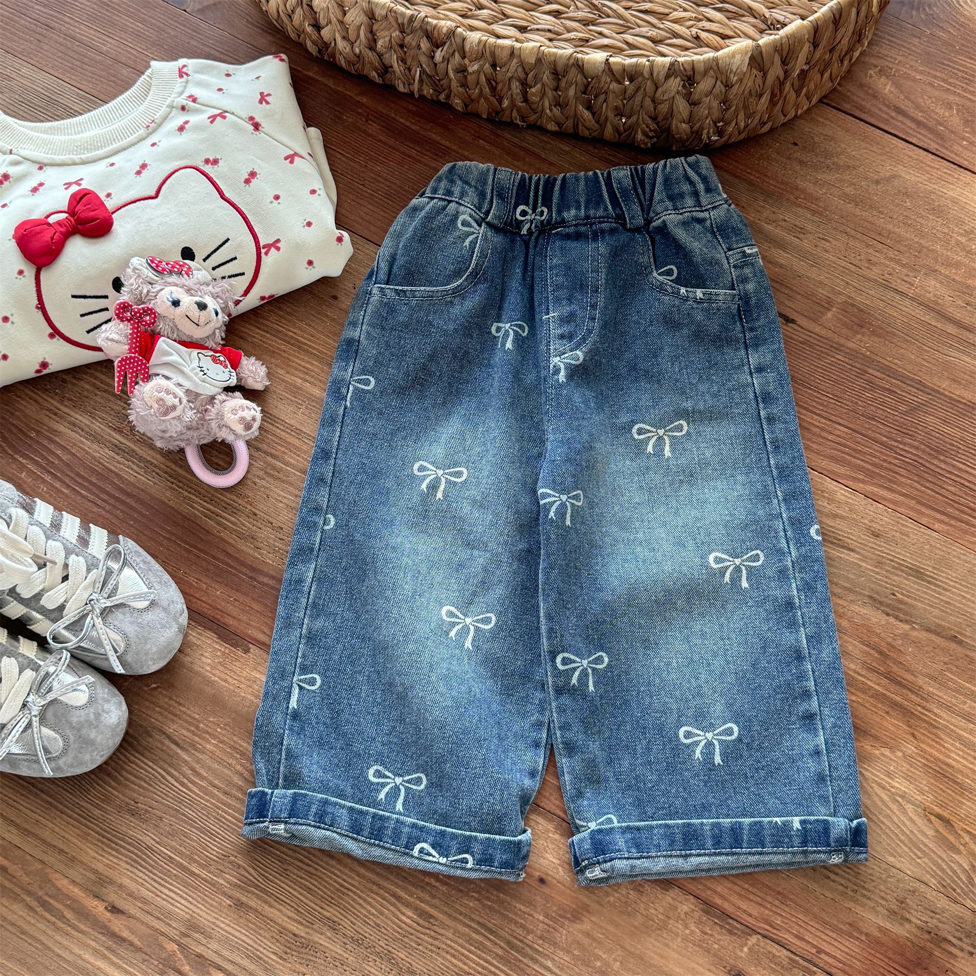 달콤한 스타일 여아 바지 가을 의류 여아용 청바지 가을 신상 아동 와이드 팬츠 봄 가을 아동복 세련된 디자인스토어 가기