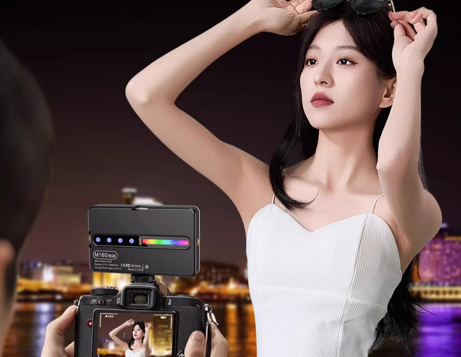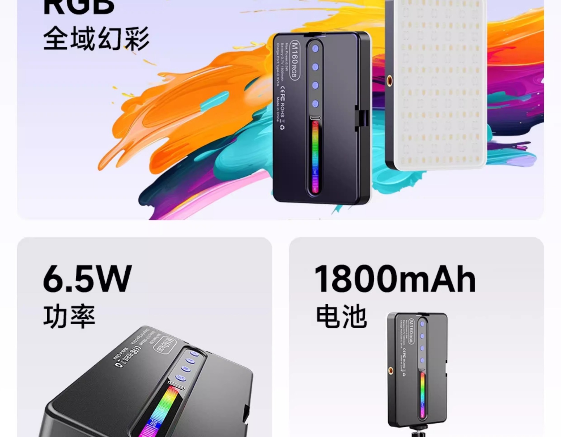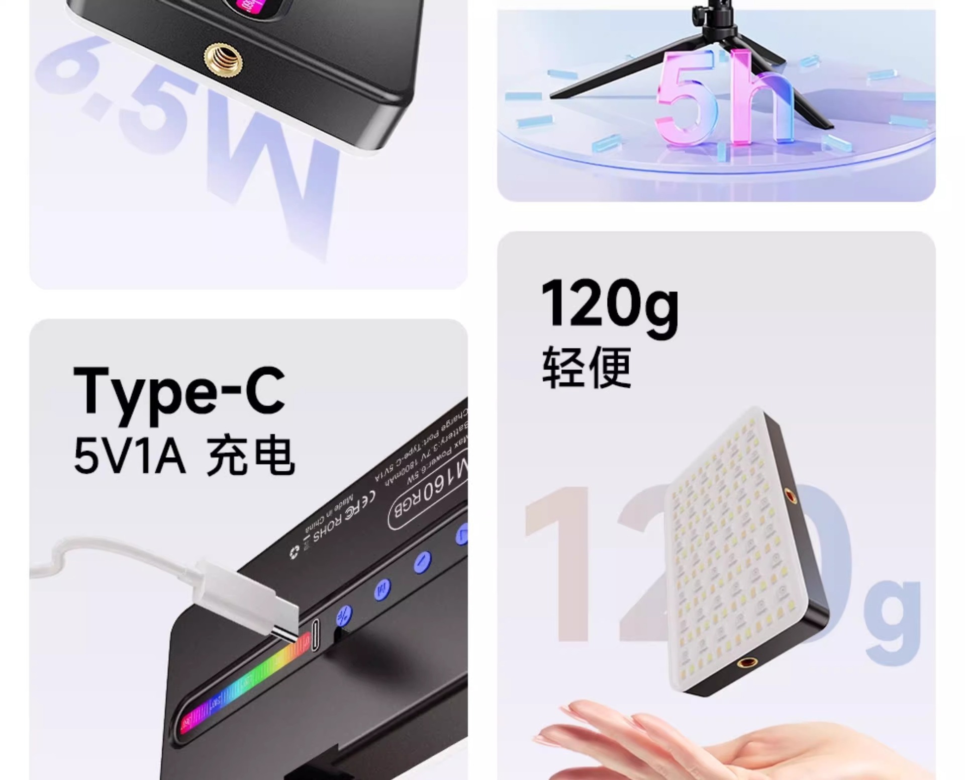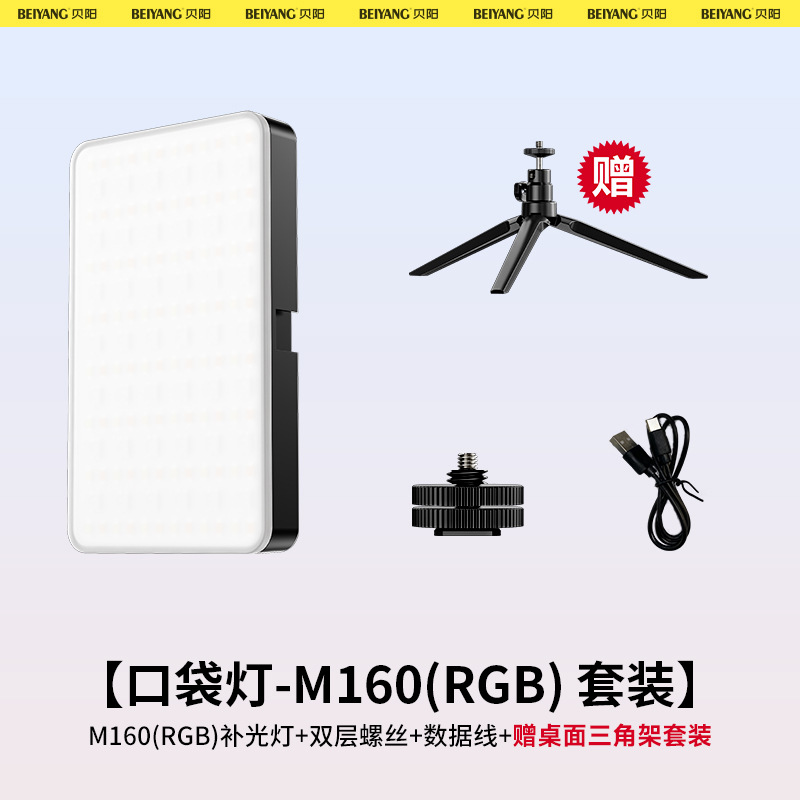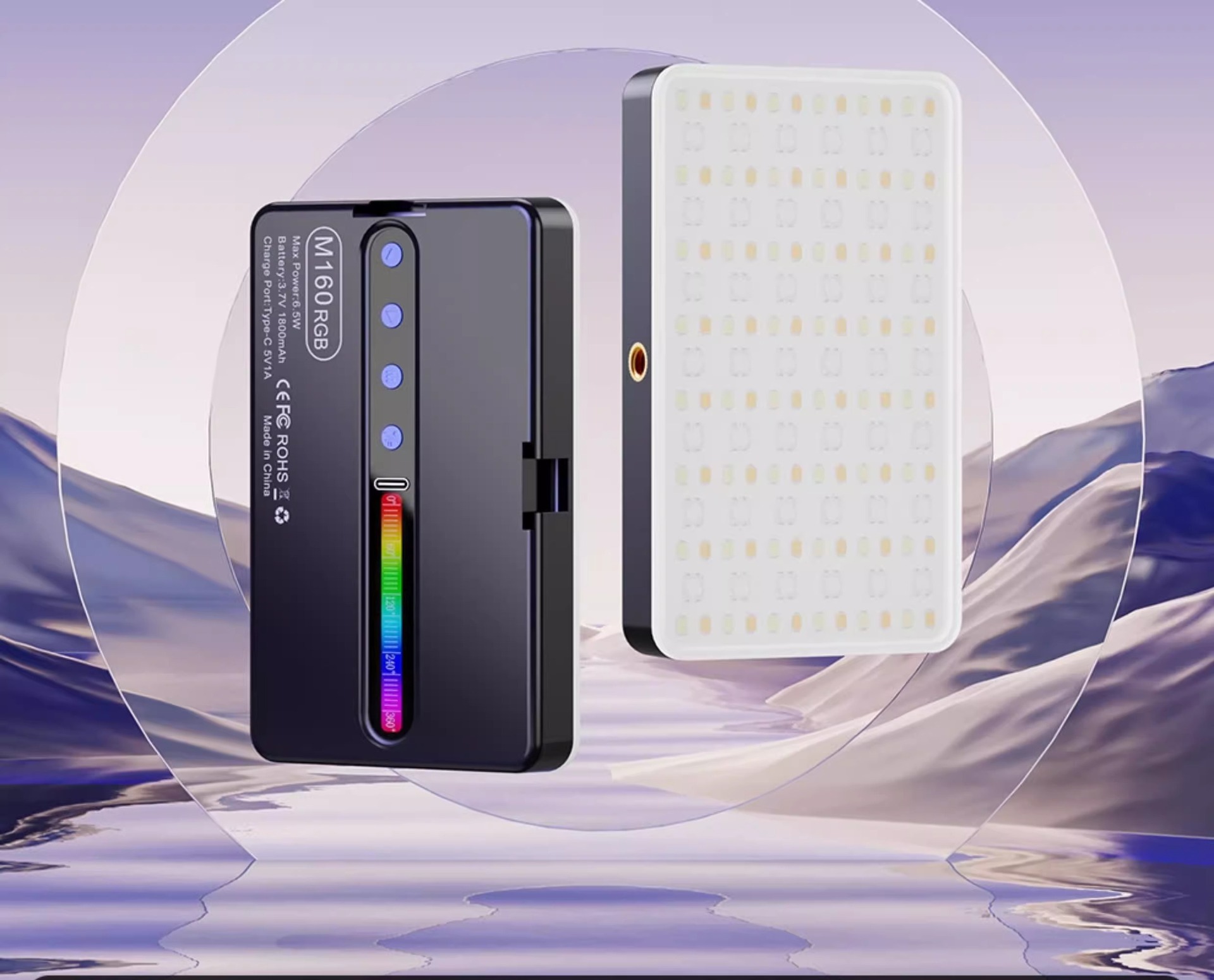 • M160RGB 3색 조명 + 소형 팬/틸트 + 19CM 삼각대 스탠드