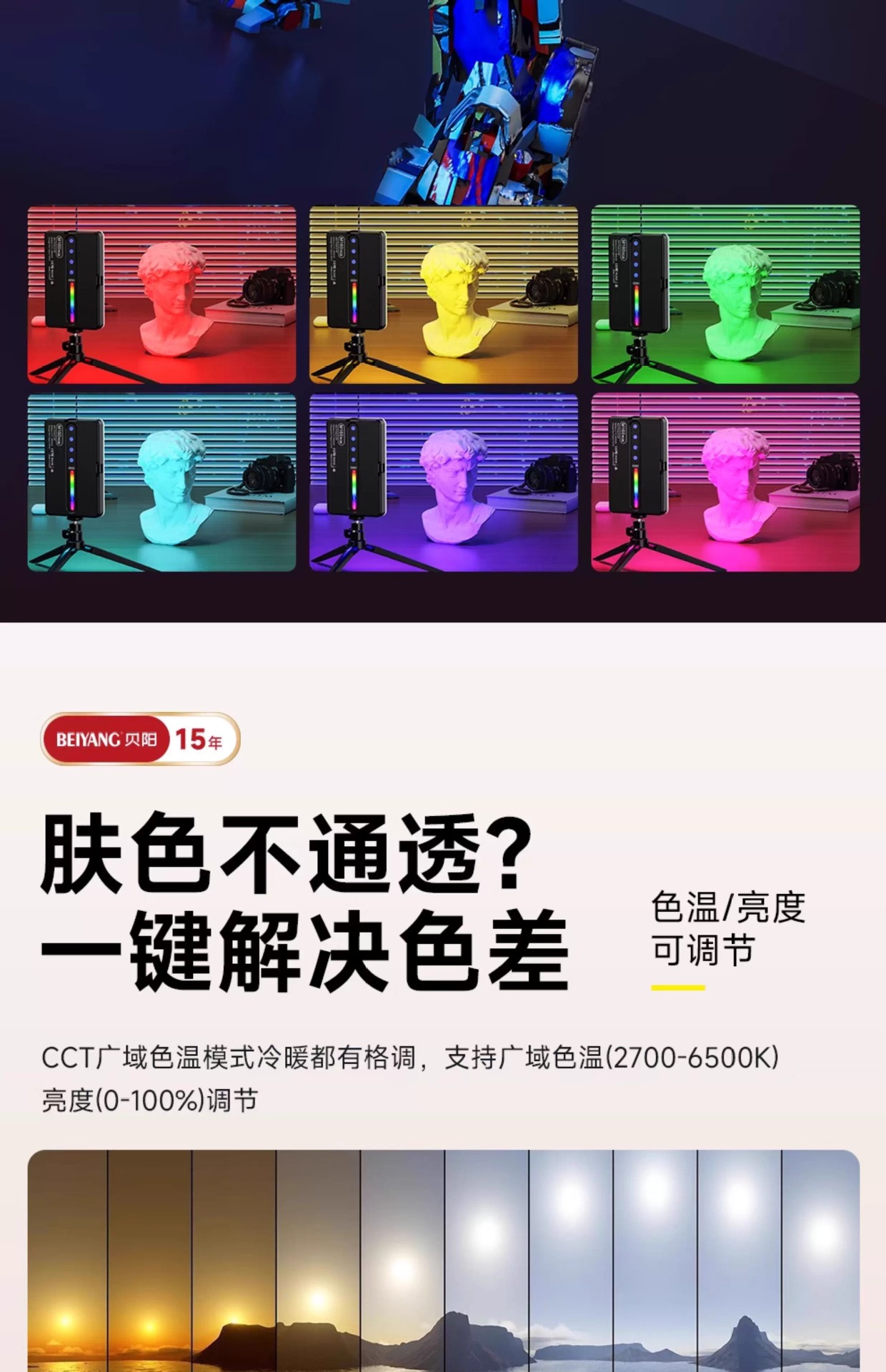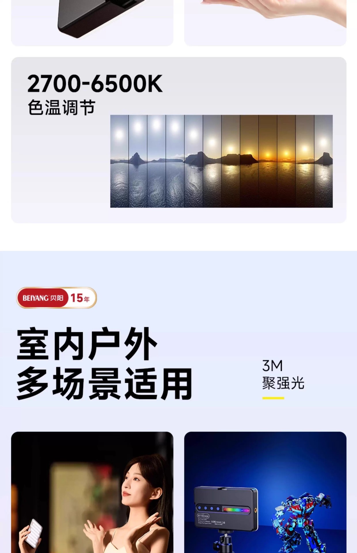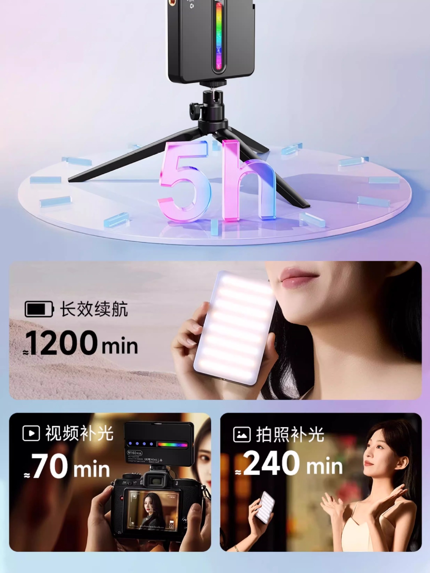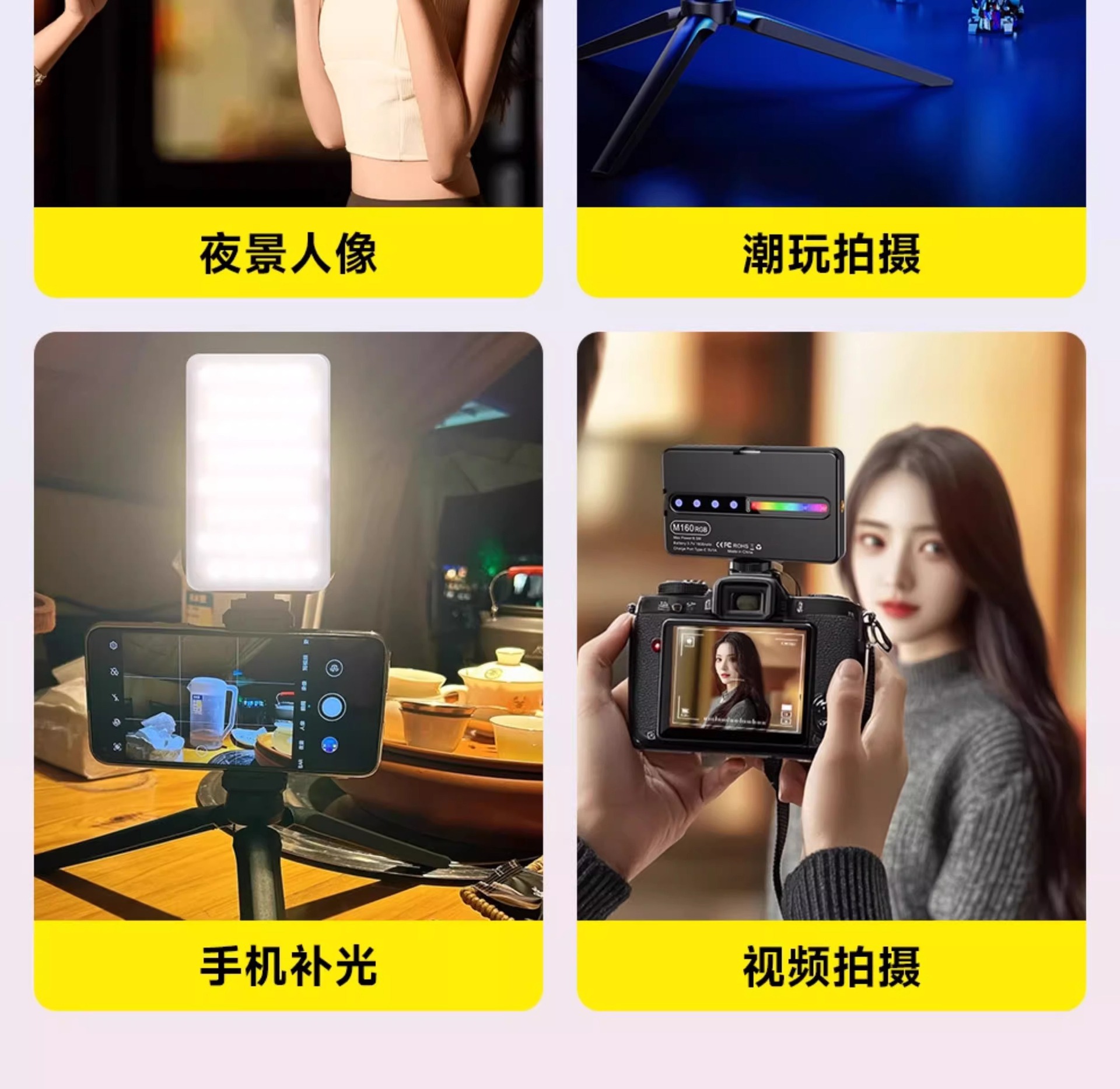 • M160RGB 3색 조명 + 소형 팬/틸트 + 19CM 삼각대 스탠드