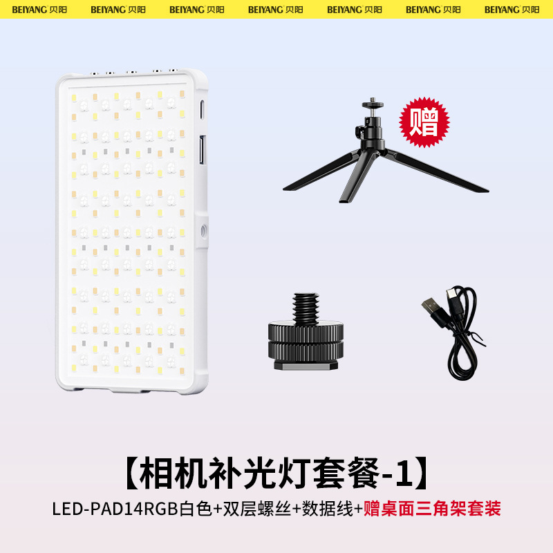 • LED-PAD14RGB 흰색 + 소형 팬/틸트 + 19CM 삼각대 스탠드