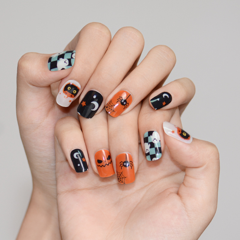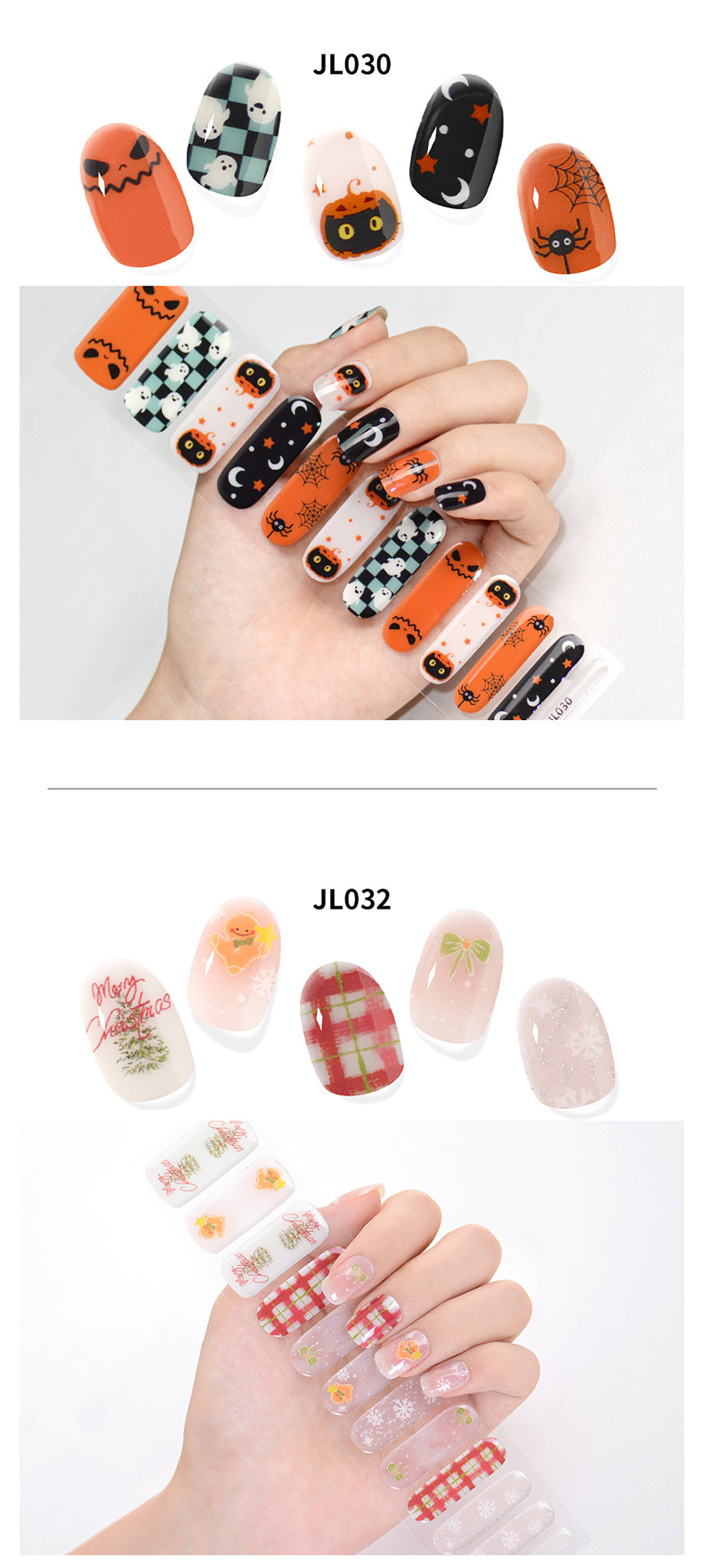 국경 간 뜨거운 판매 재미 있은 할로윈 UV 젤 네일 스티커 만화 손으로 그린 시리즈 조명 반 경화 네일 스티커스토어 가기